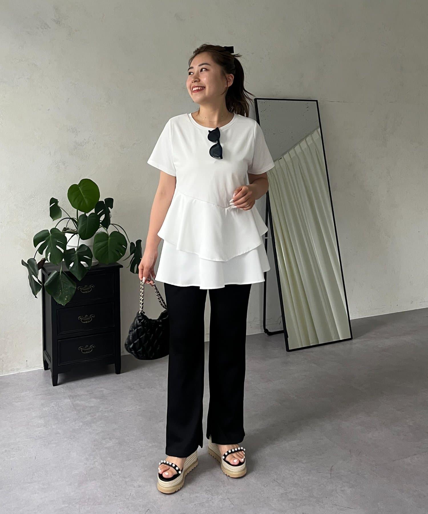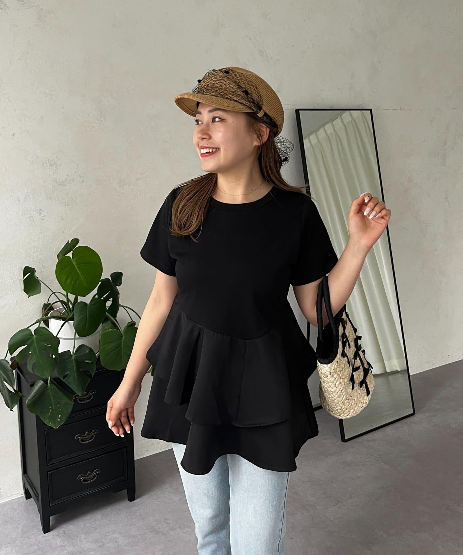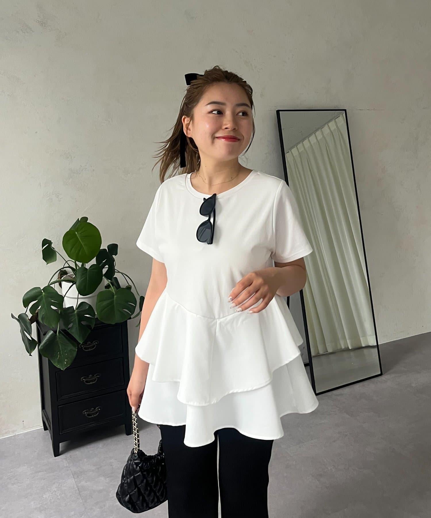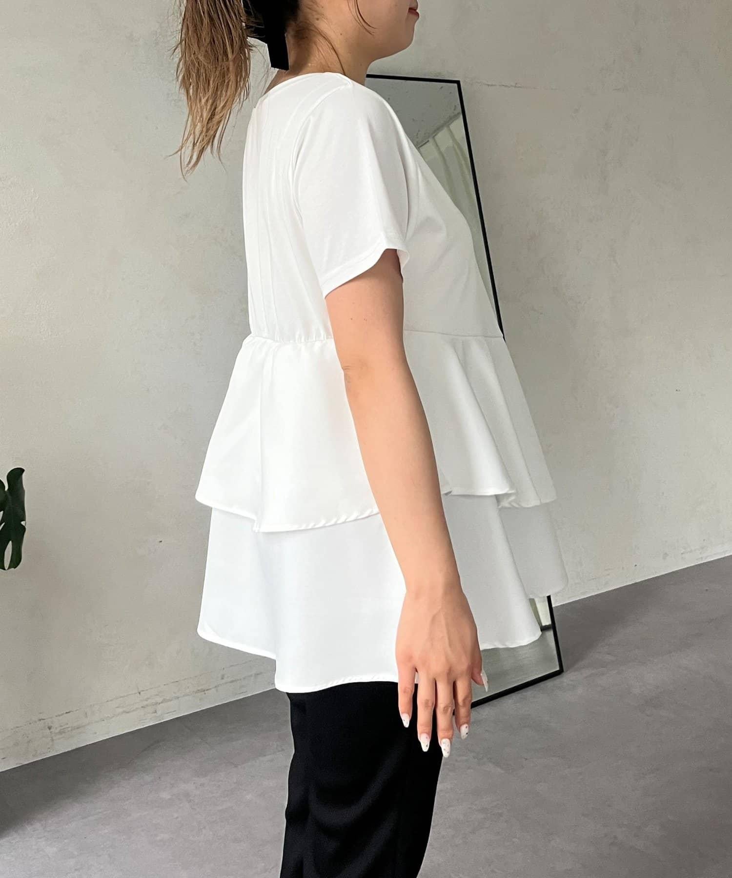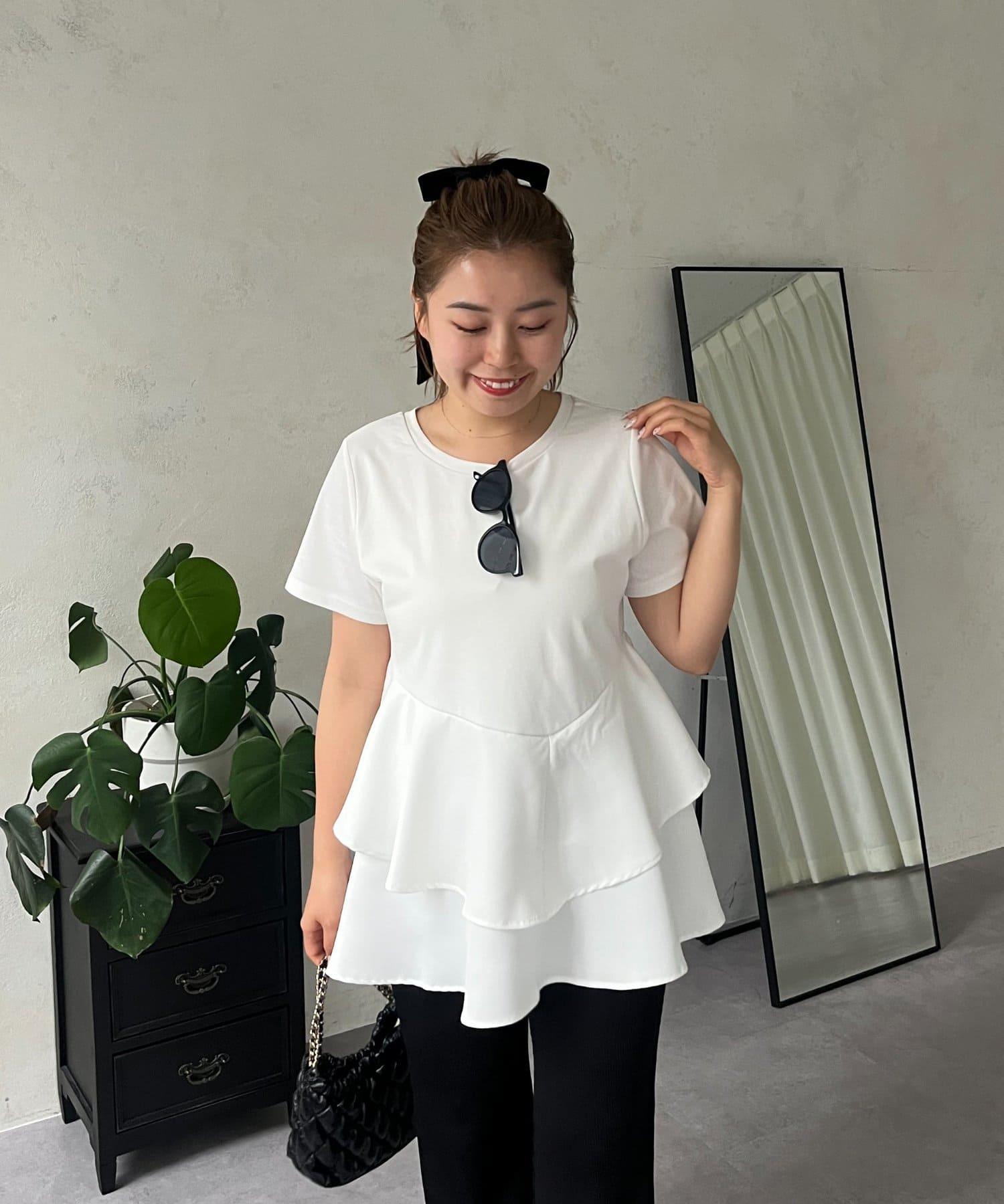 【MOMO】不對稱荷葉邊拼接荷葉邊T恤