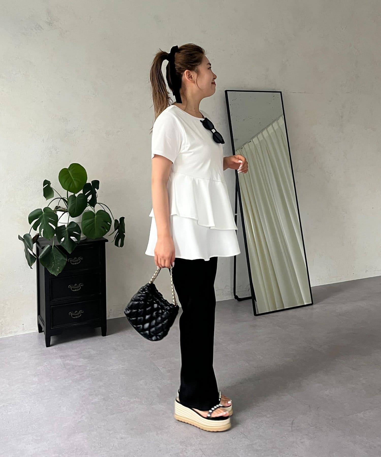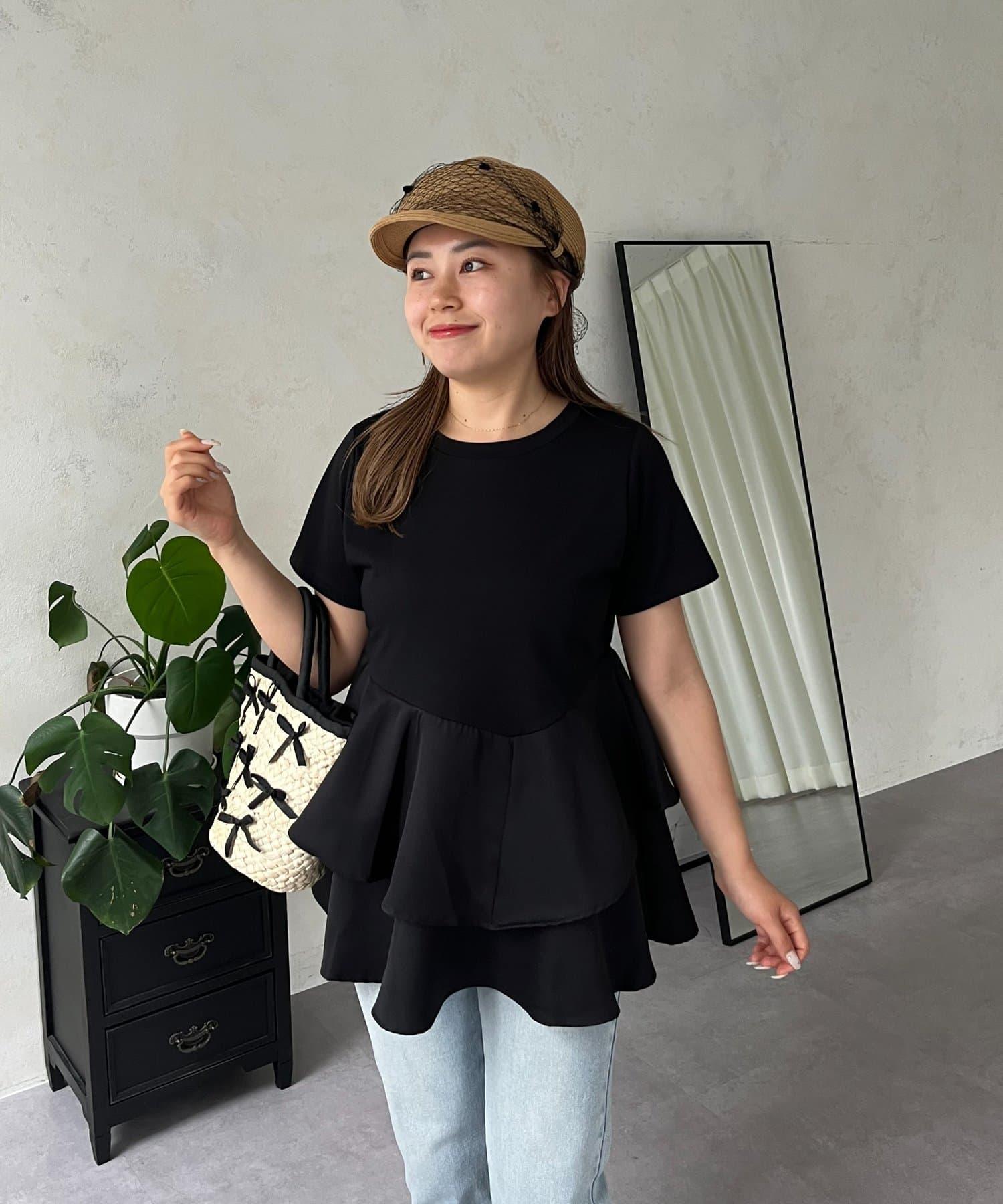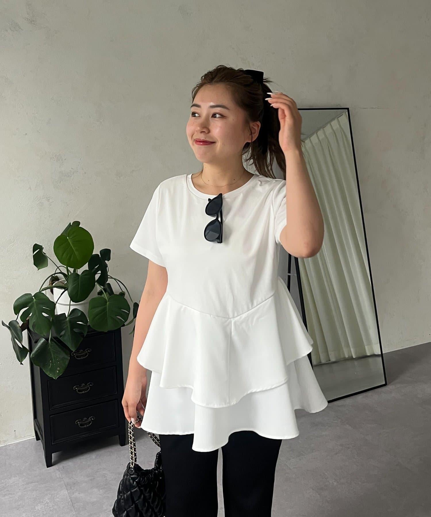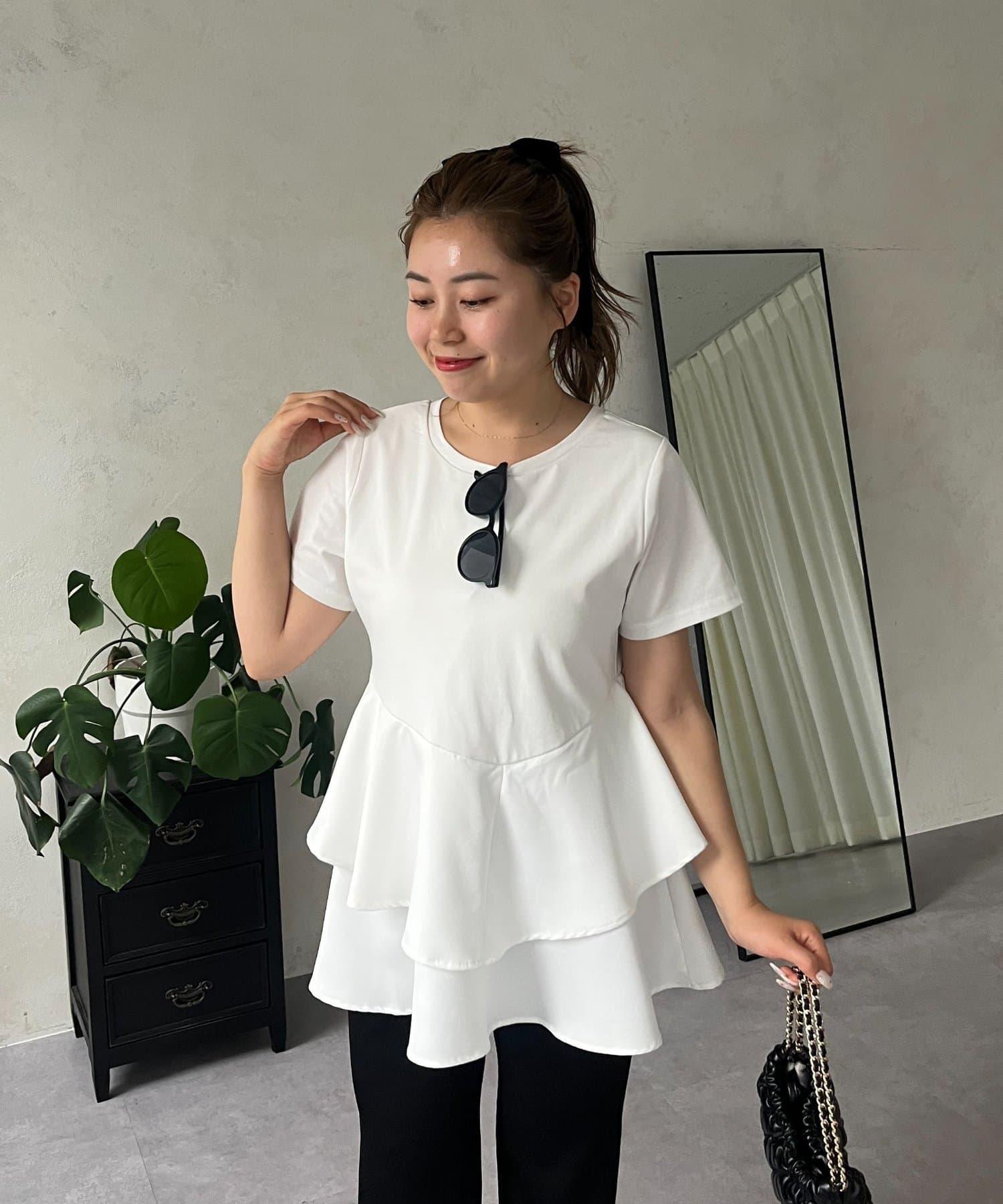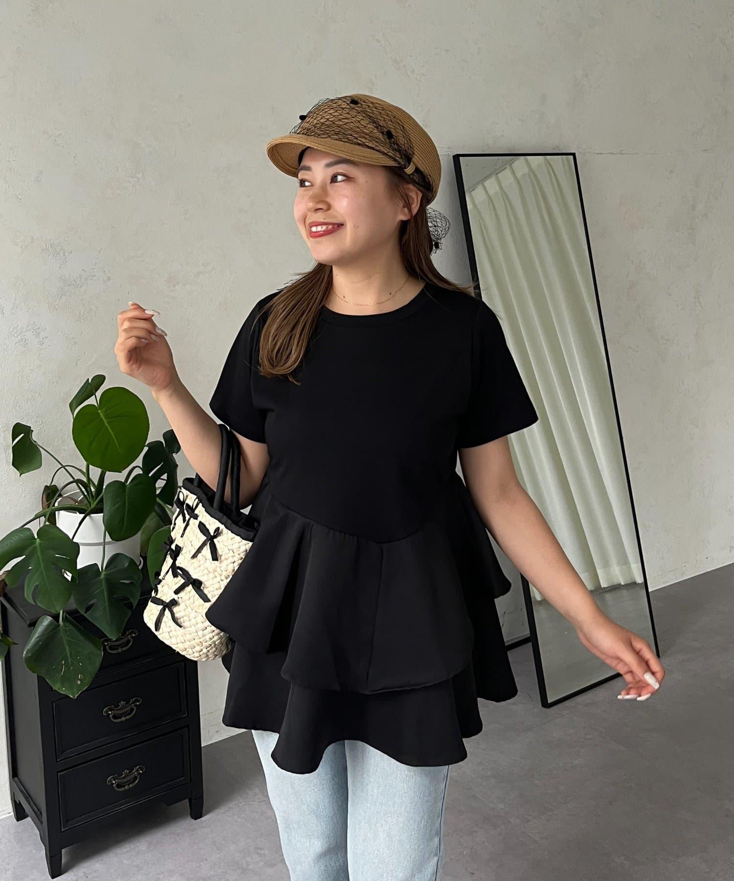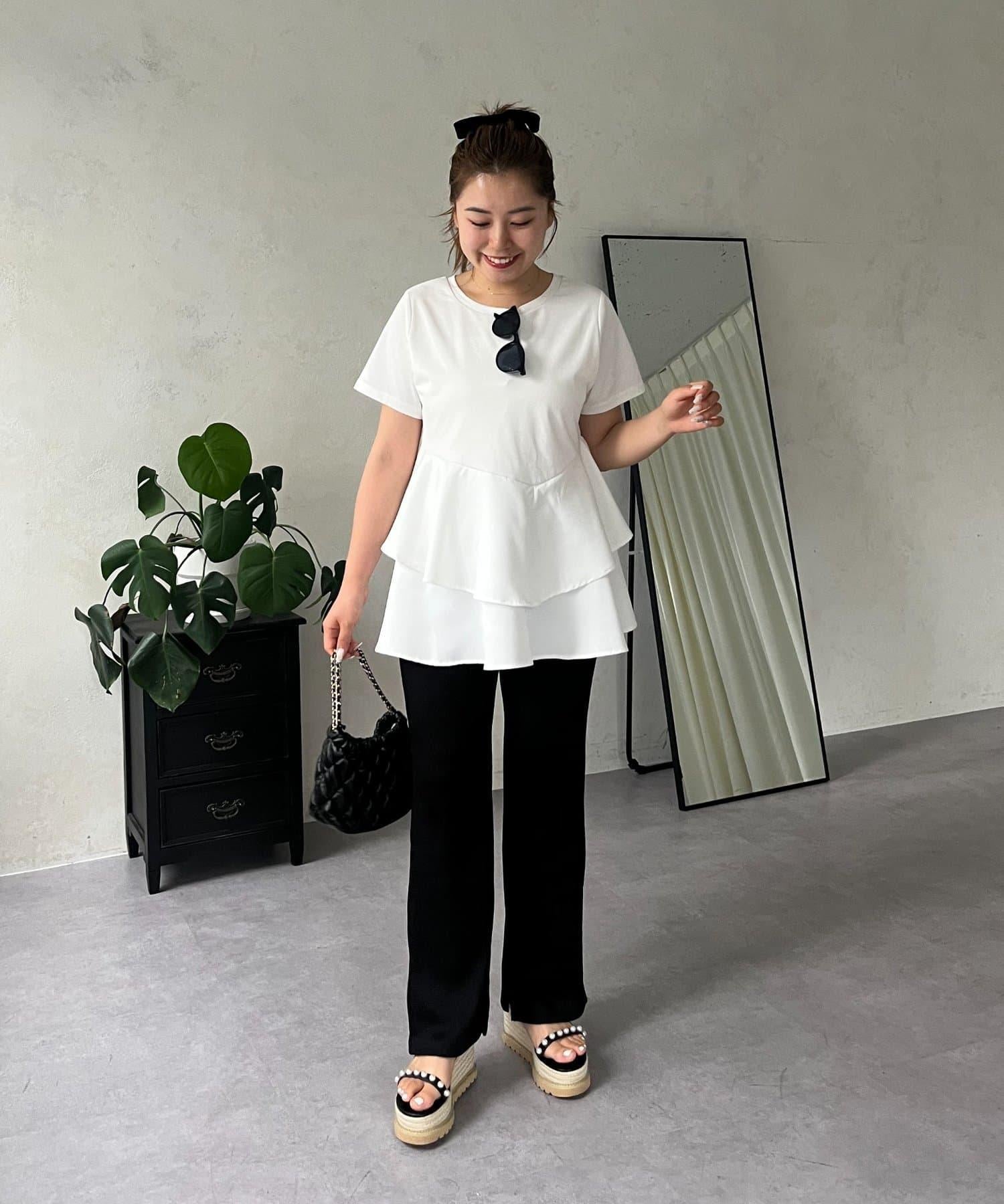 【MOMO】不對稱荷葉邊拼接荷葉邊T恤