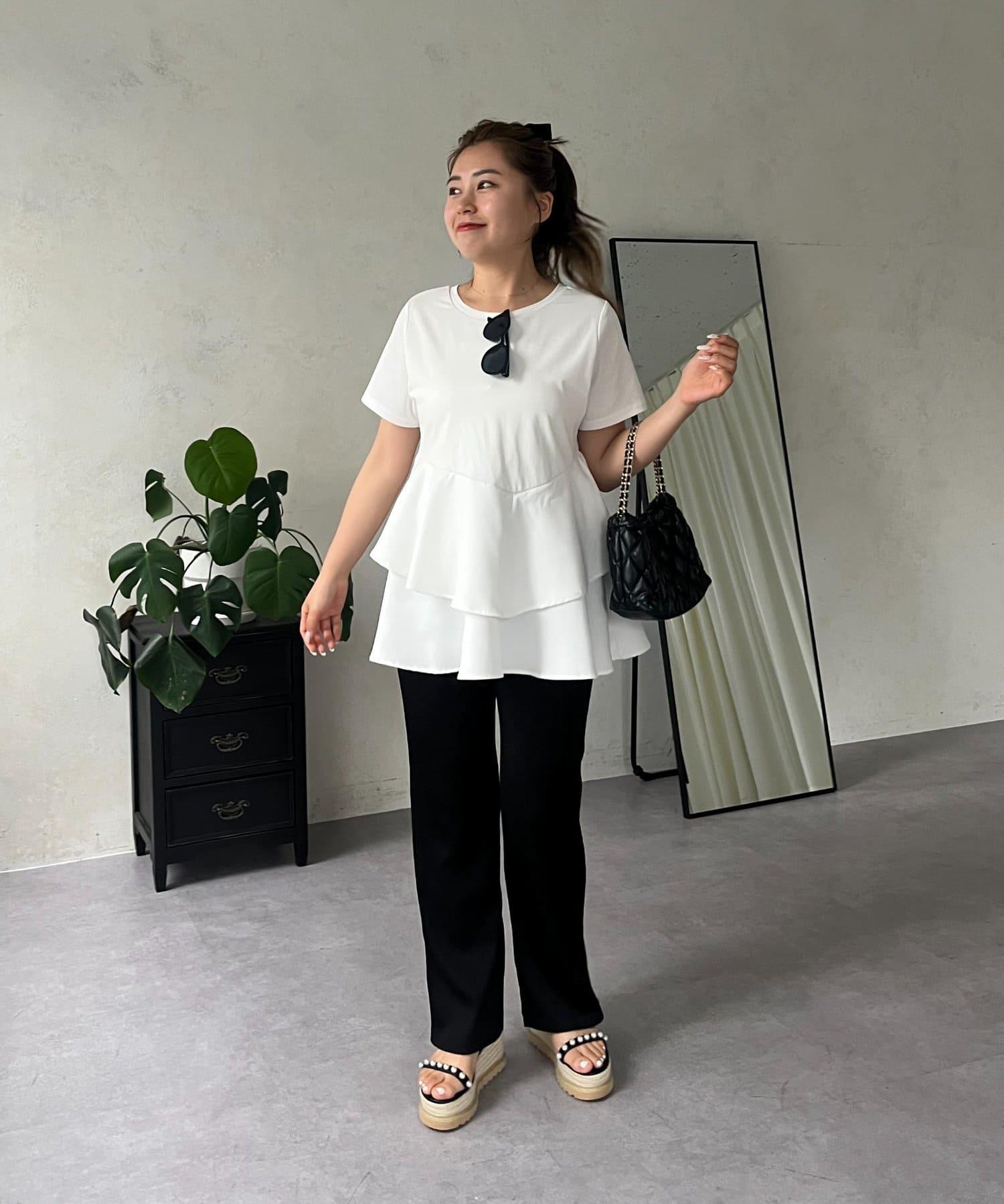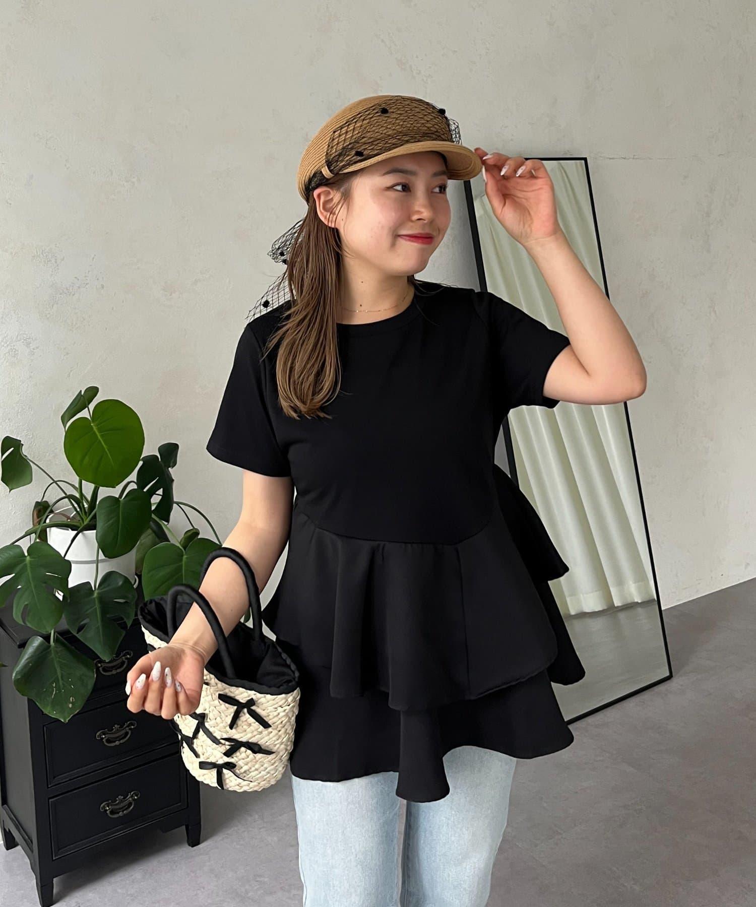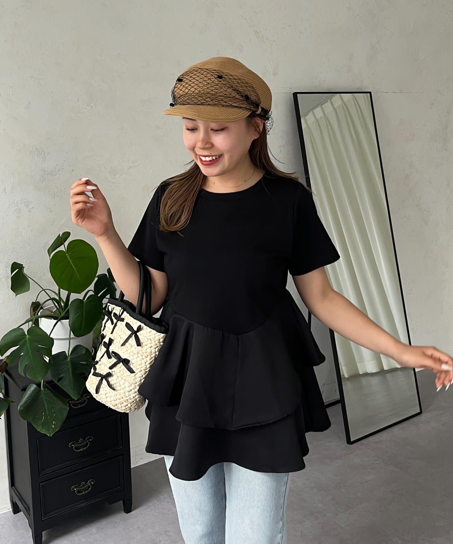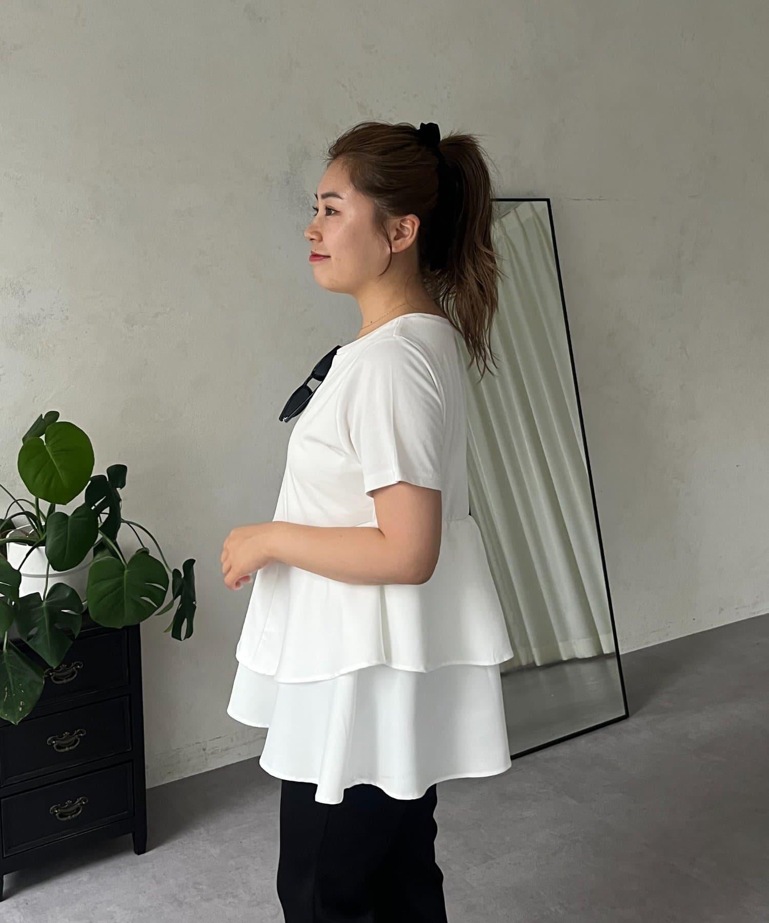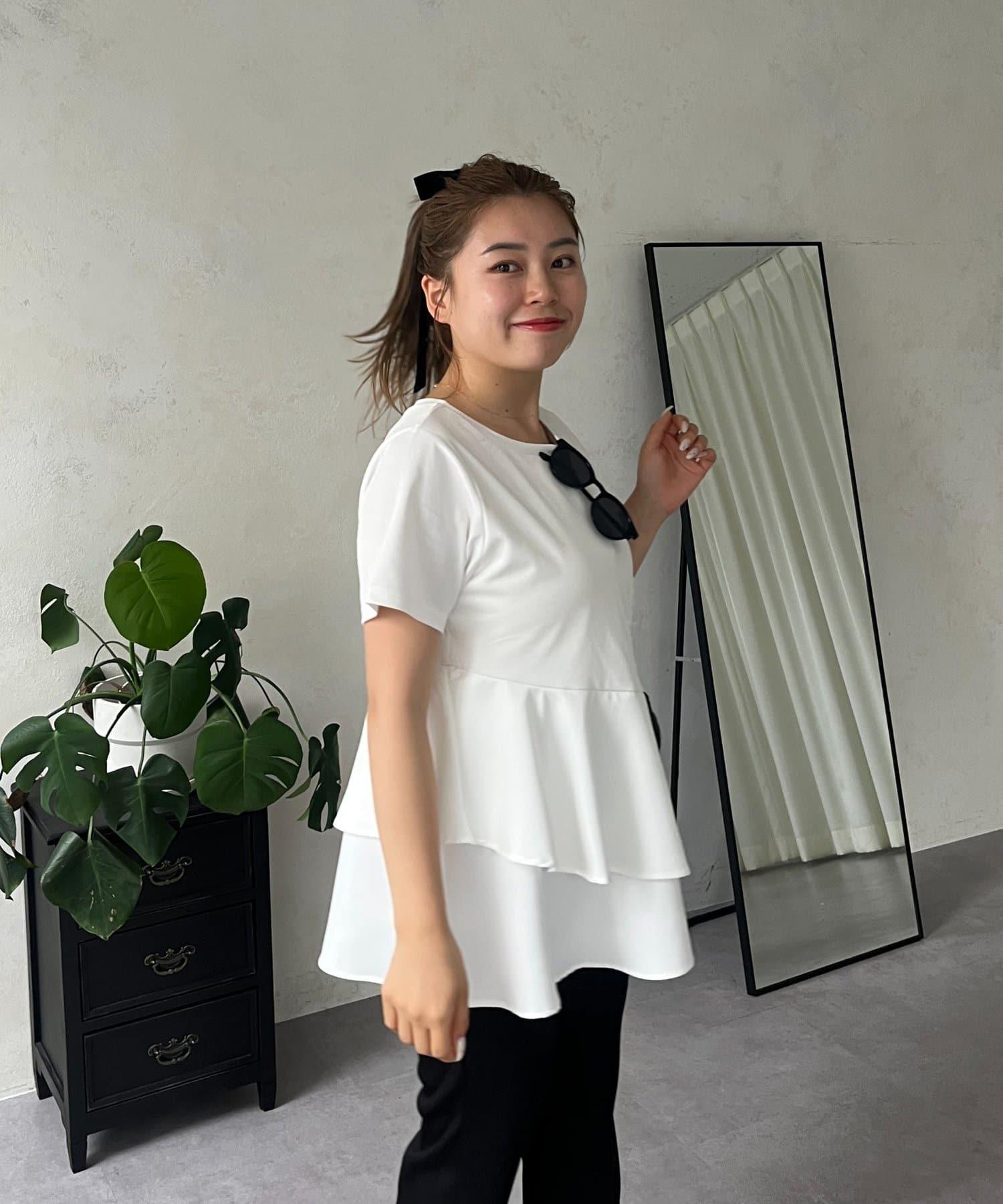 【MOMO】不對稱荷葉邊拼接荷葉邊T恤