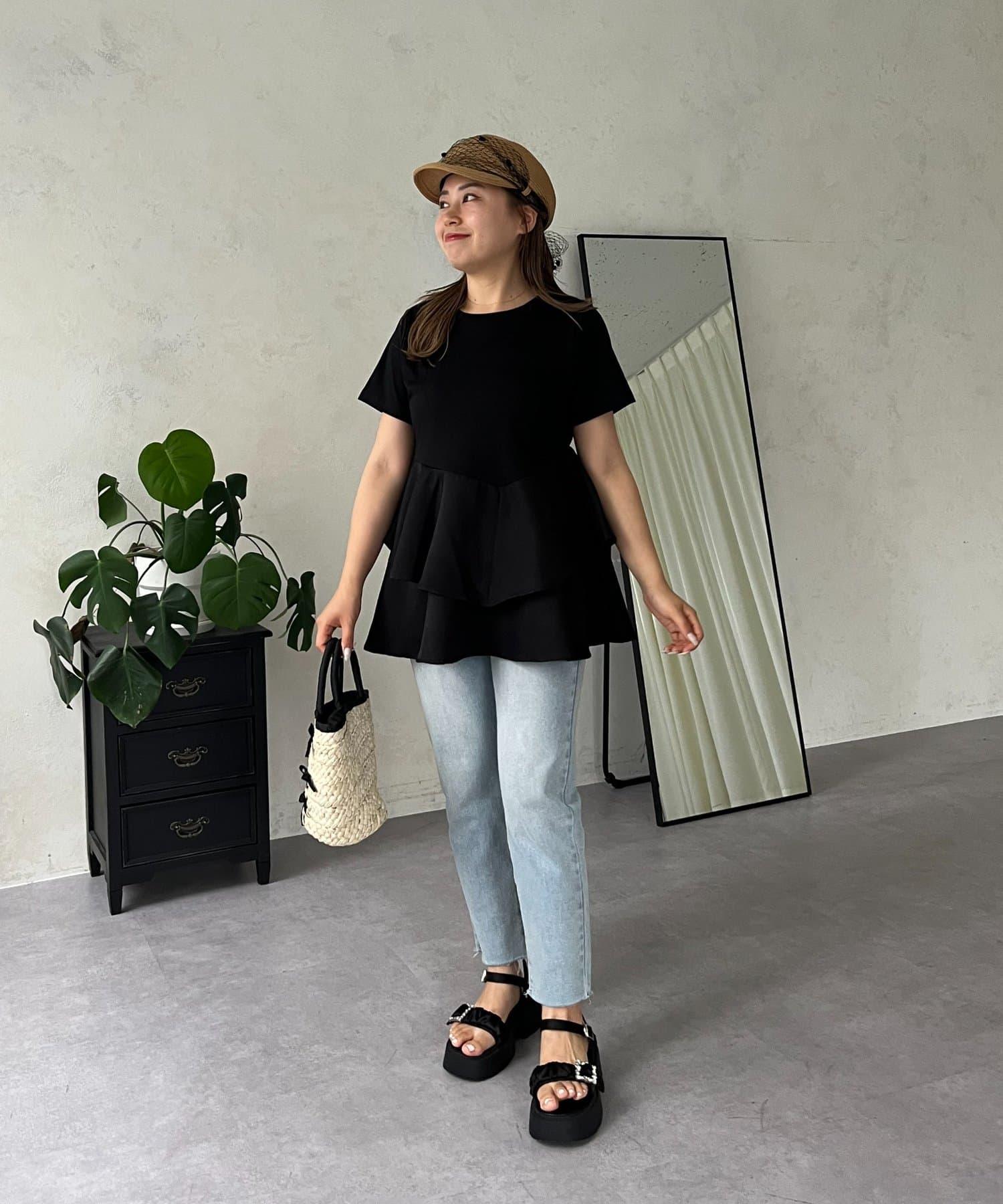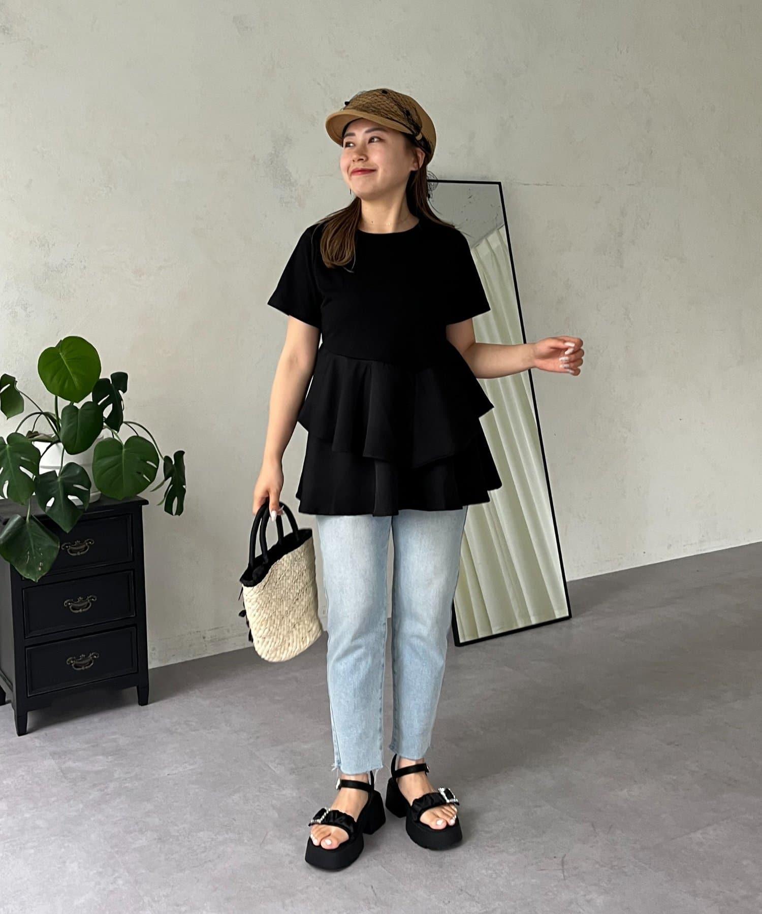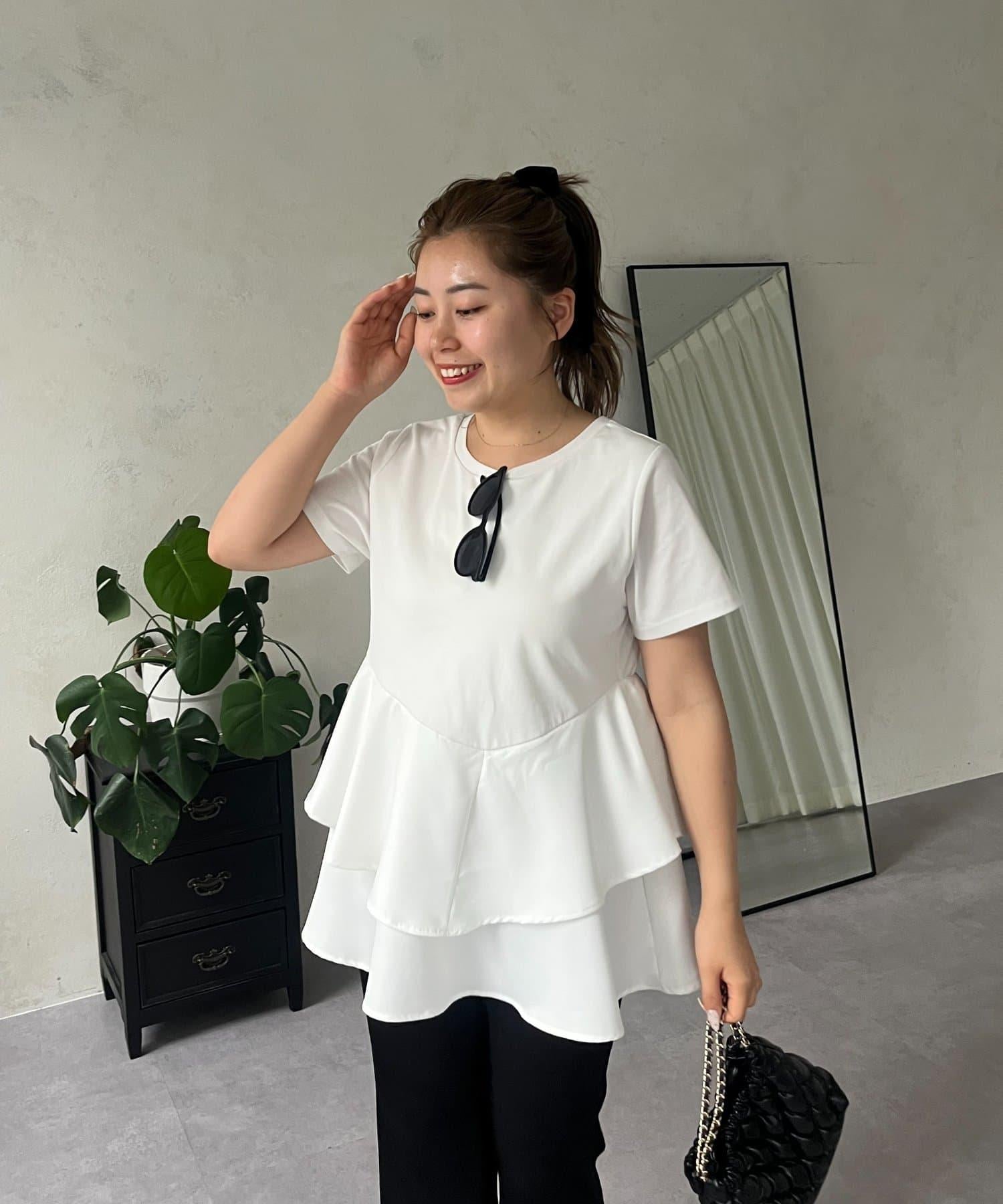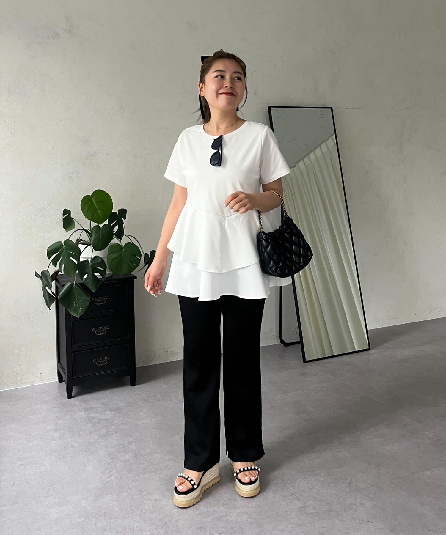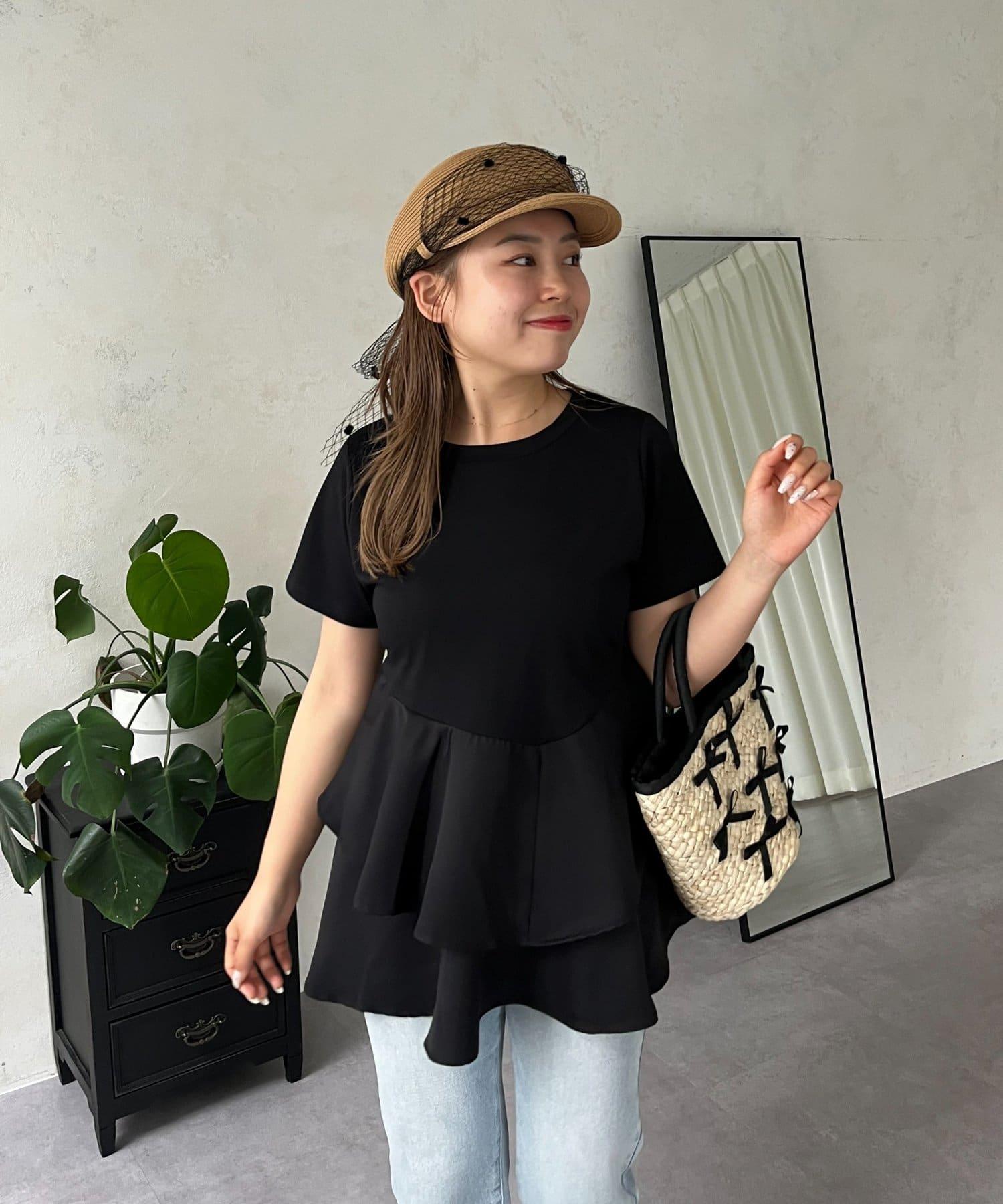 【MOMO】不對稱荷葉邊拼接荷葉邊T恤