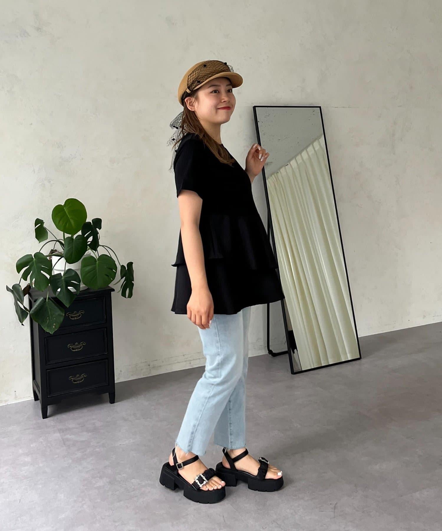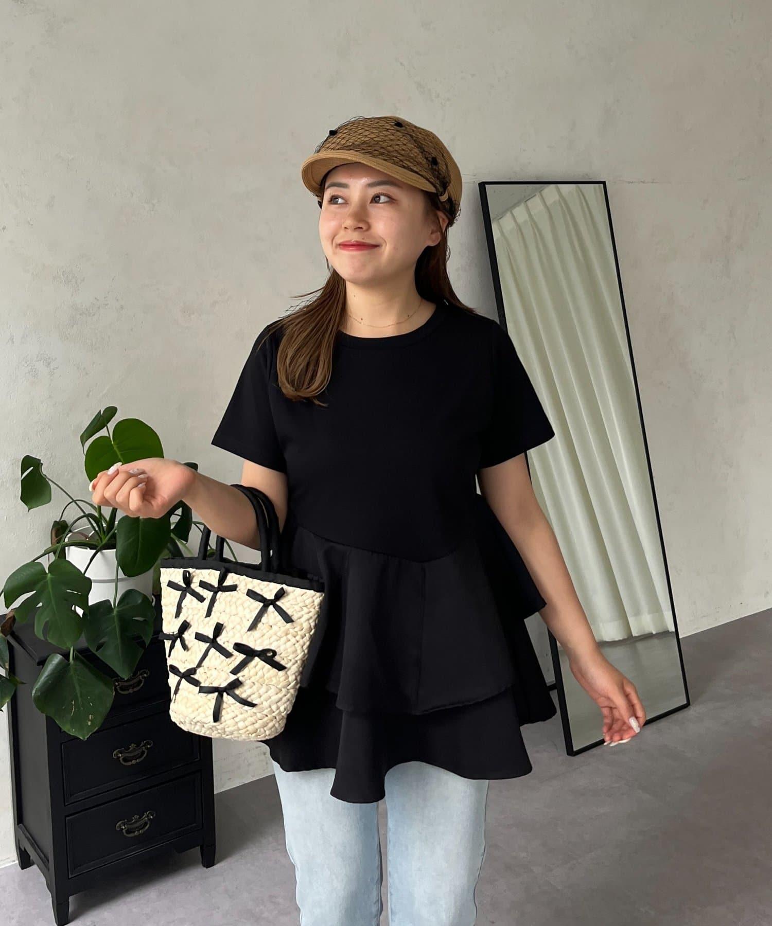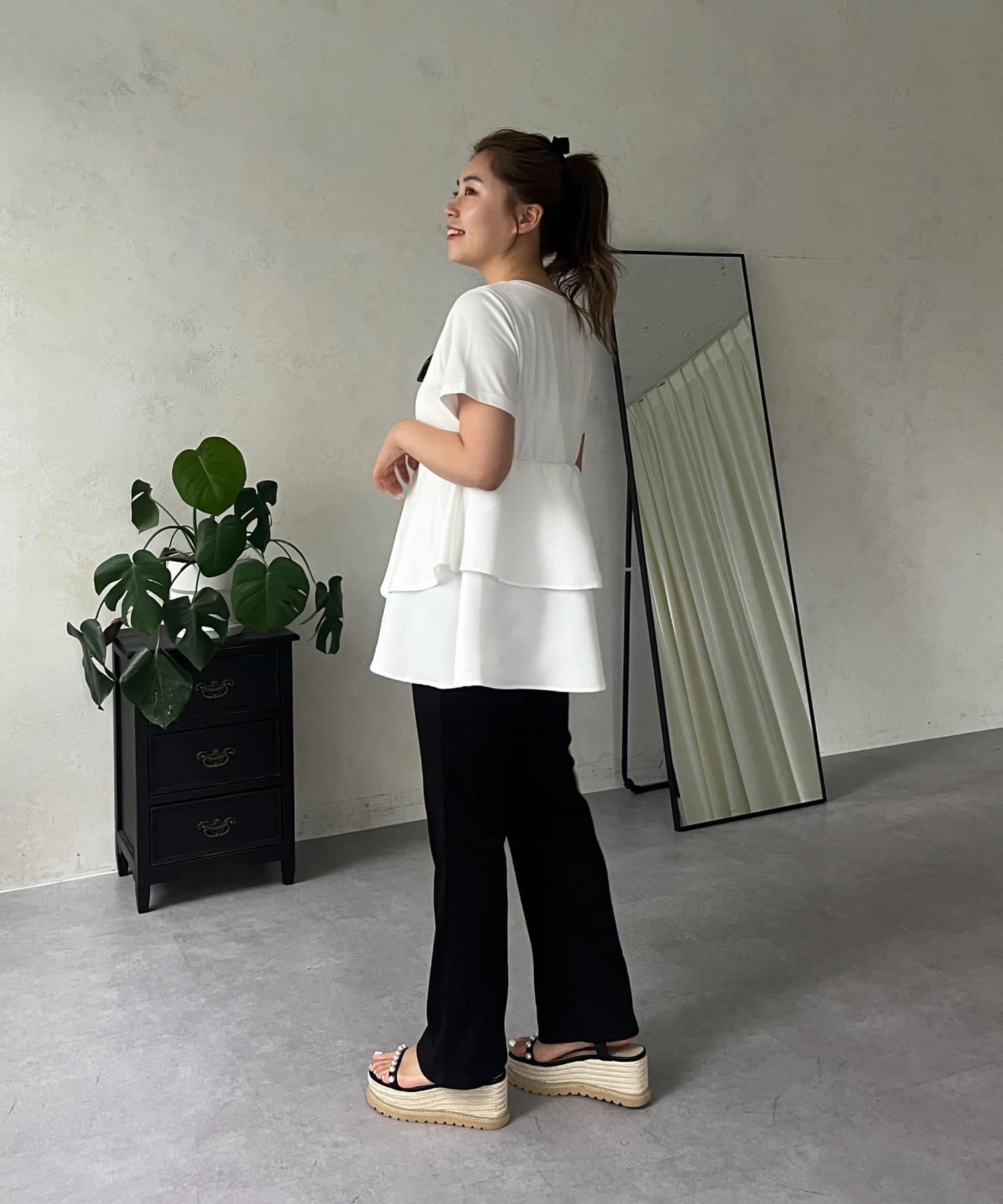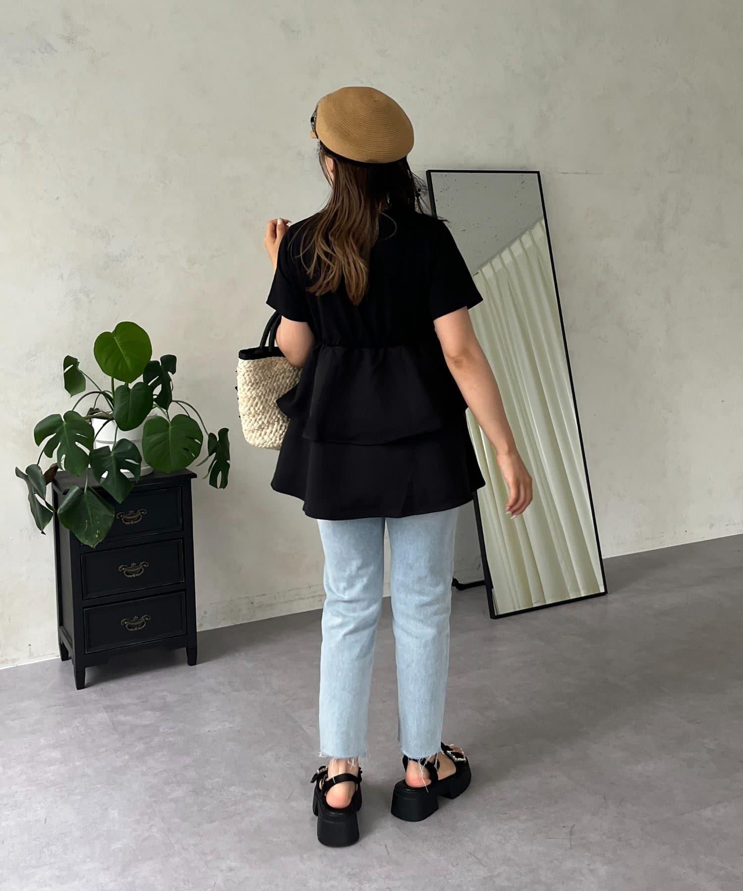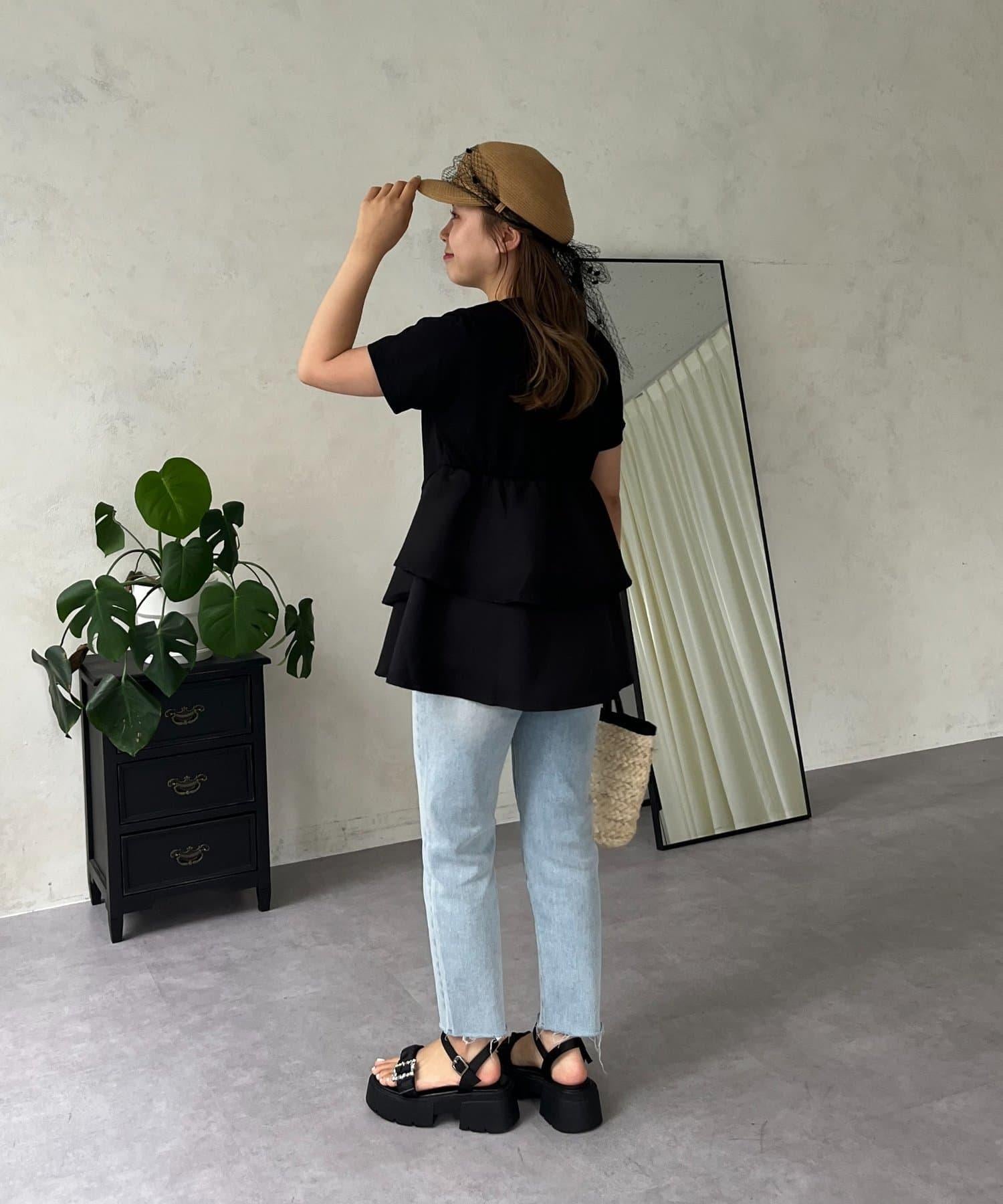 【MOMO】不對稱荷葉邊拼接荷葉邊T恤