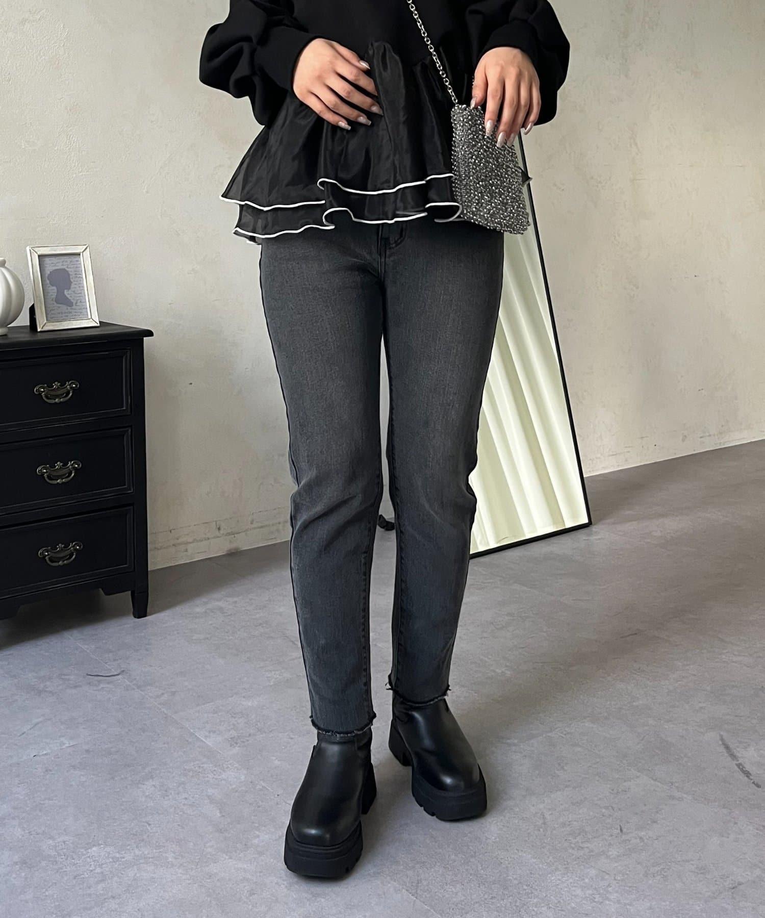 【MOMO】內層微絨彈力錐形牛仔褲