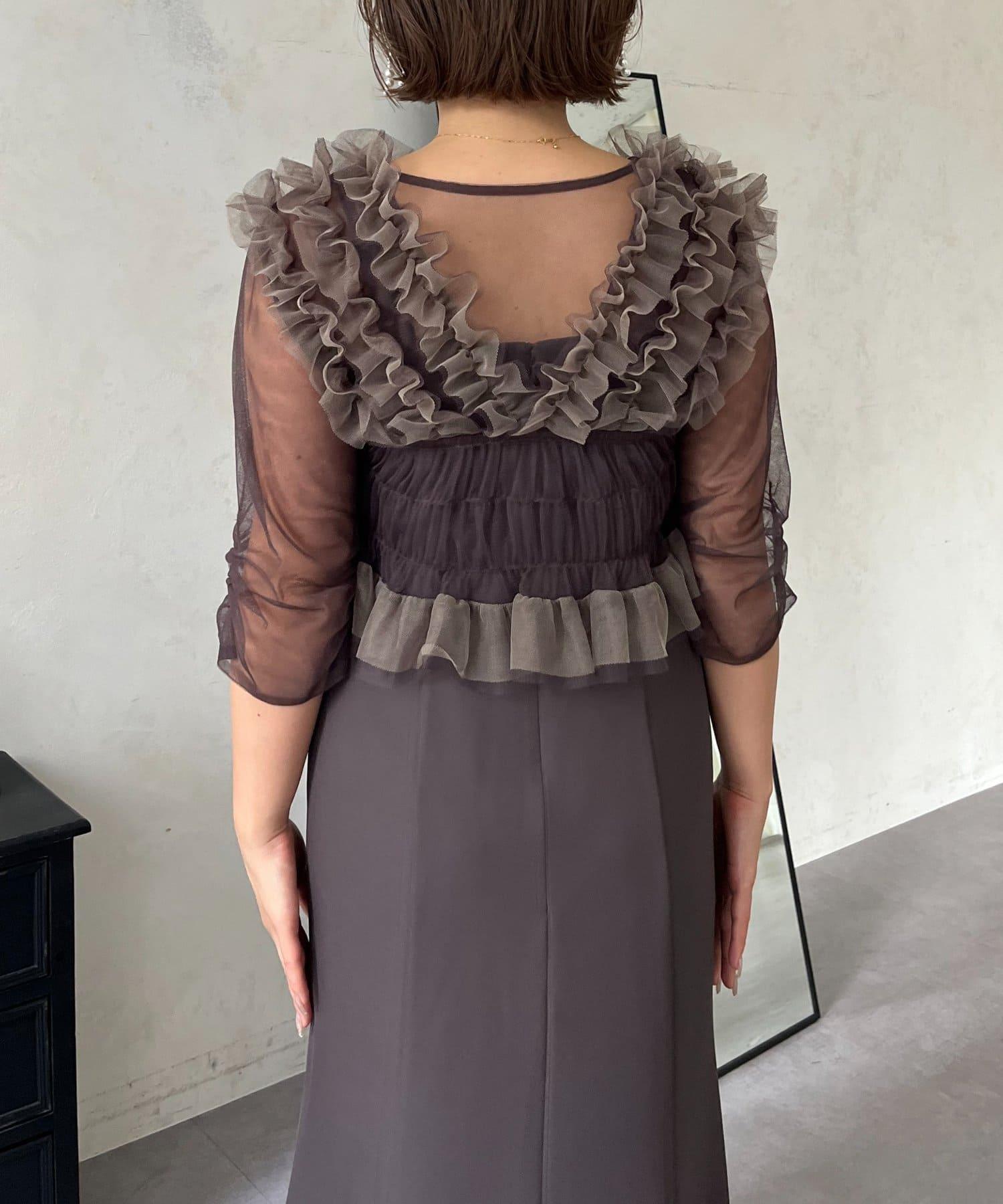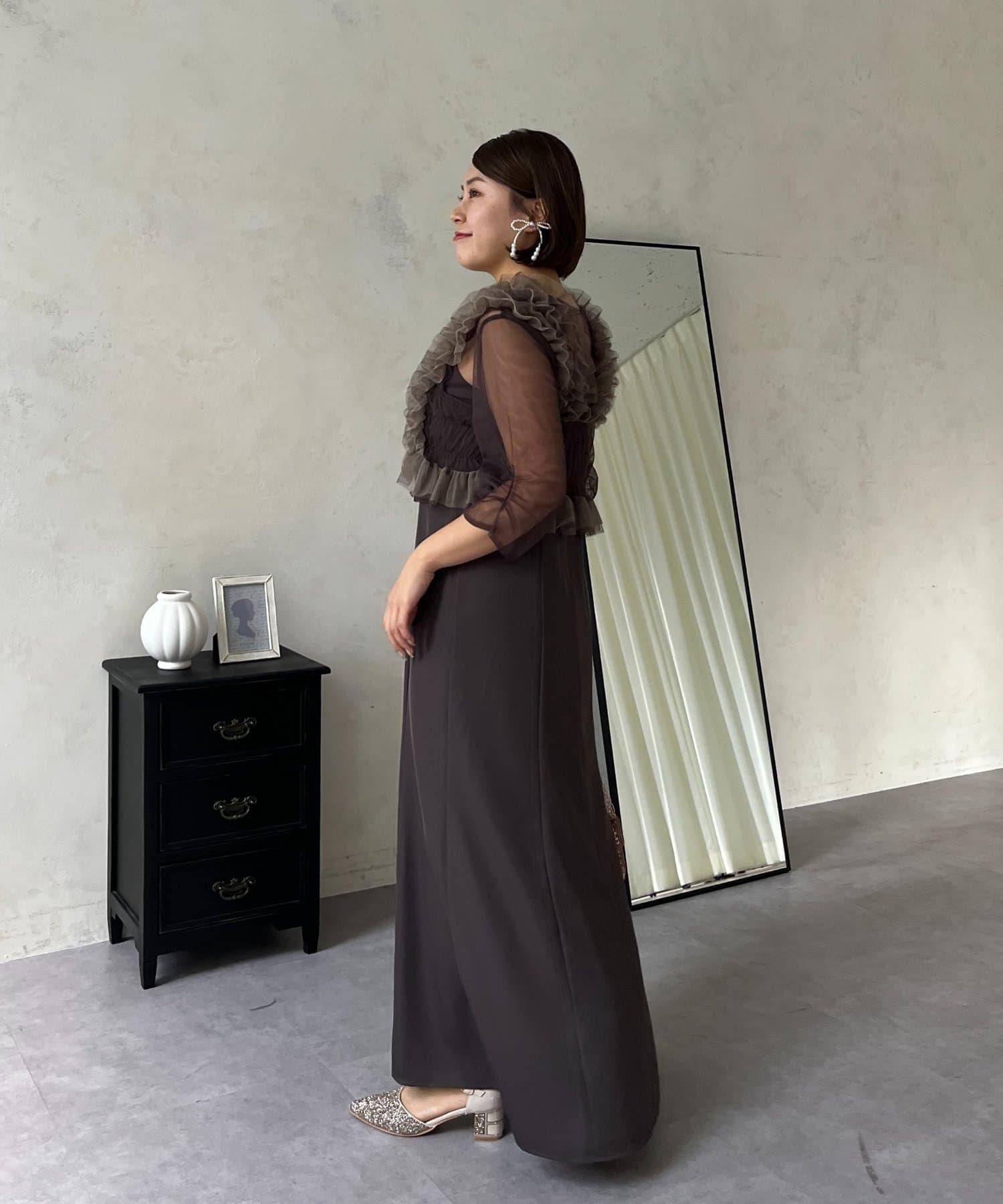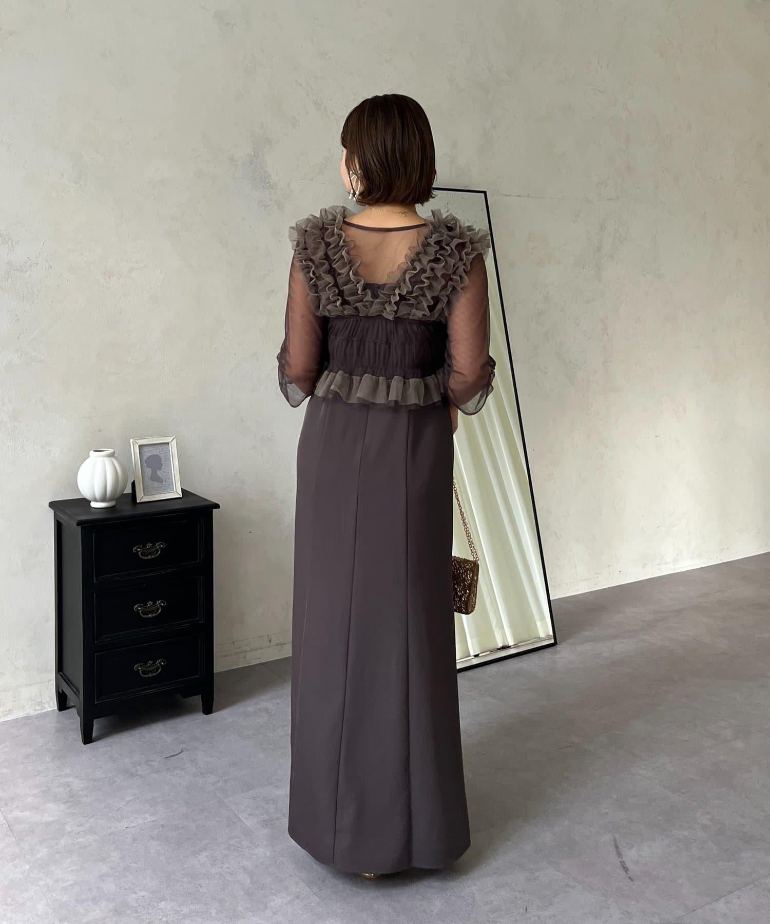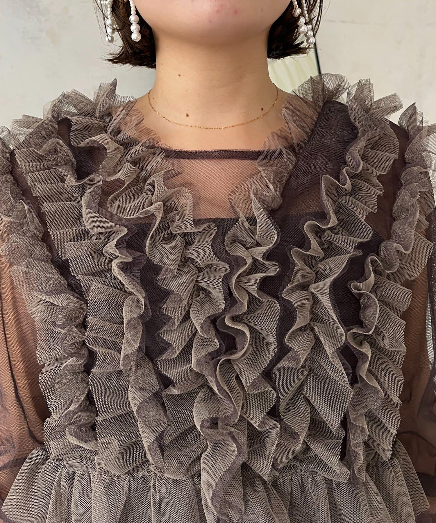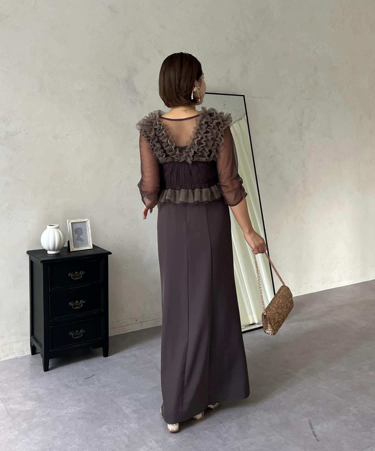 連衣裙/連衣裙/長裙/薄紗/薄紗上衣/鑰匙領/