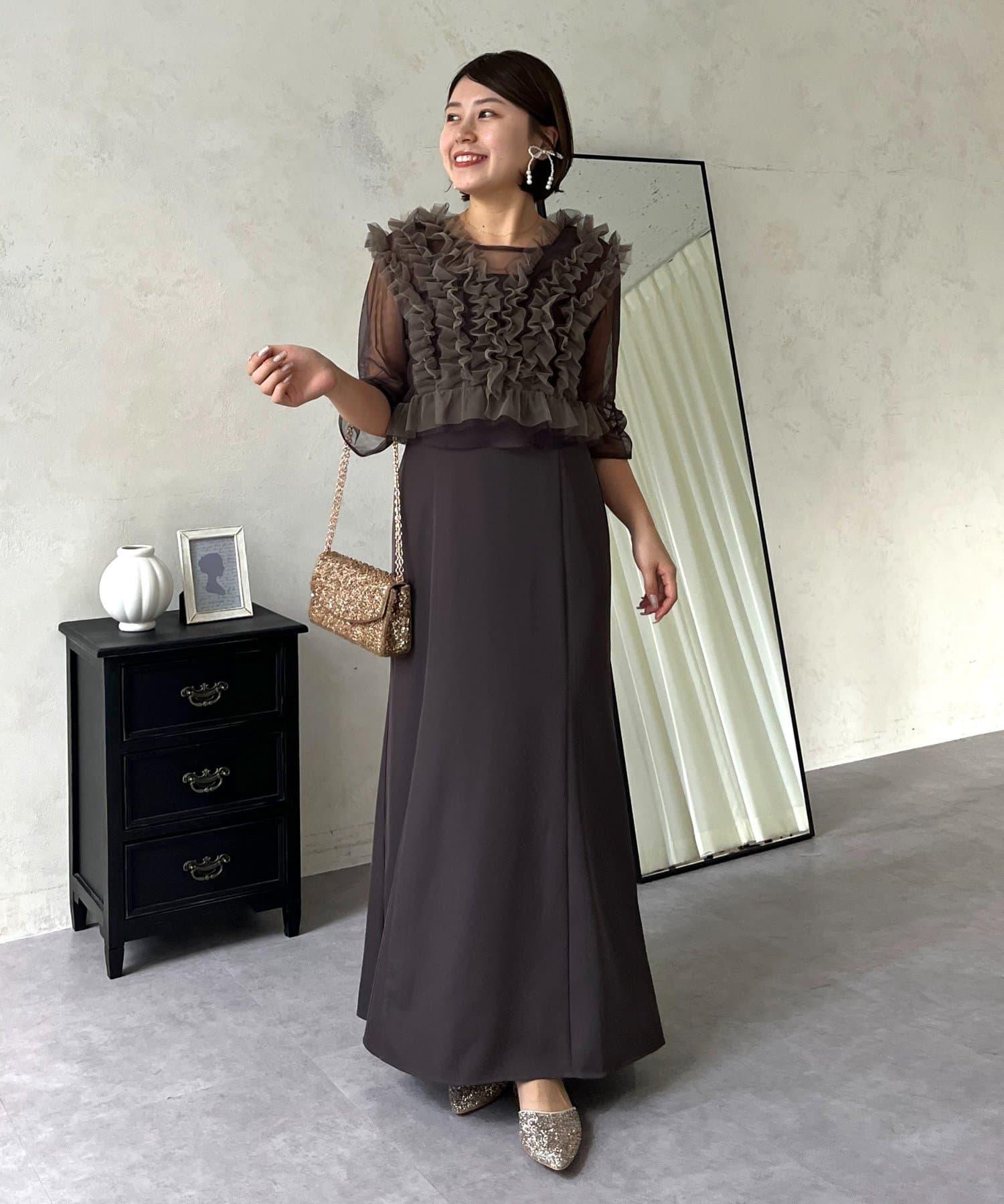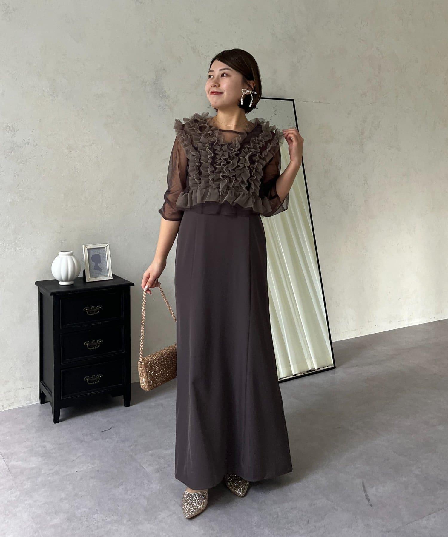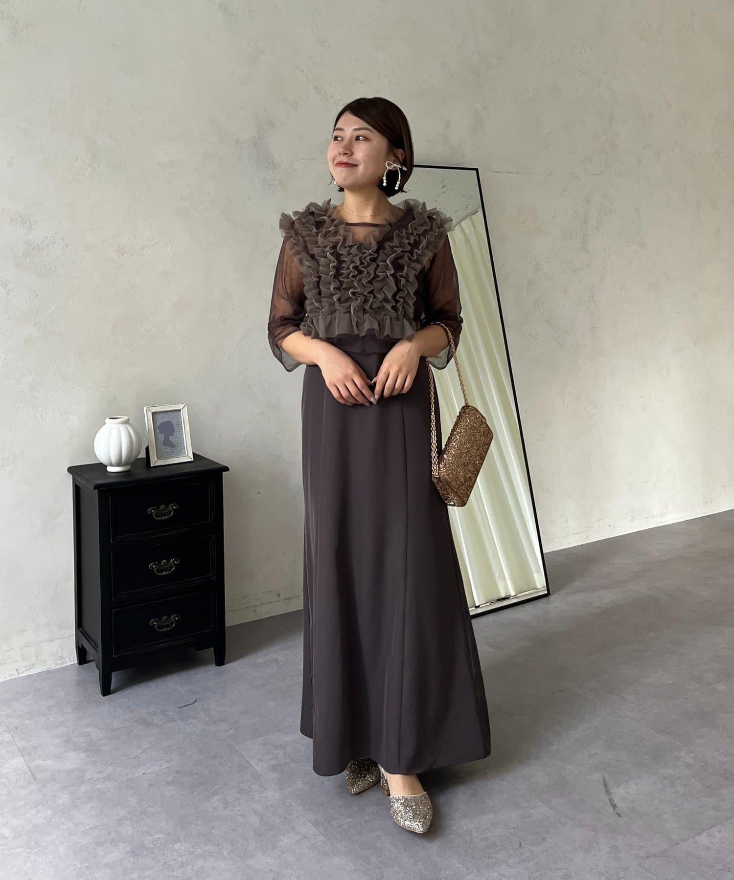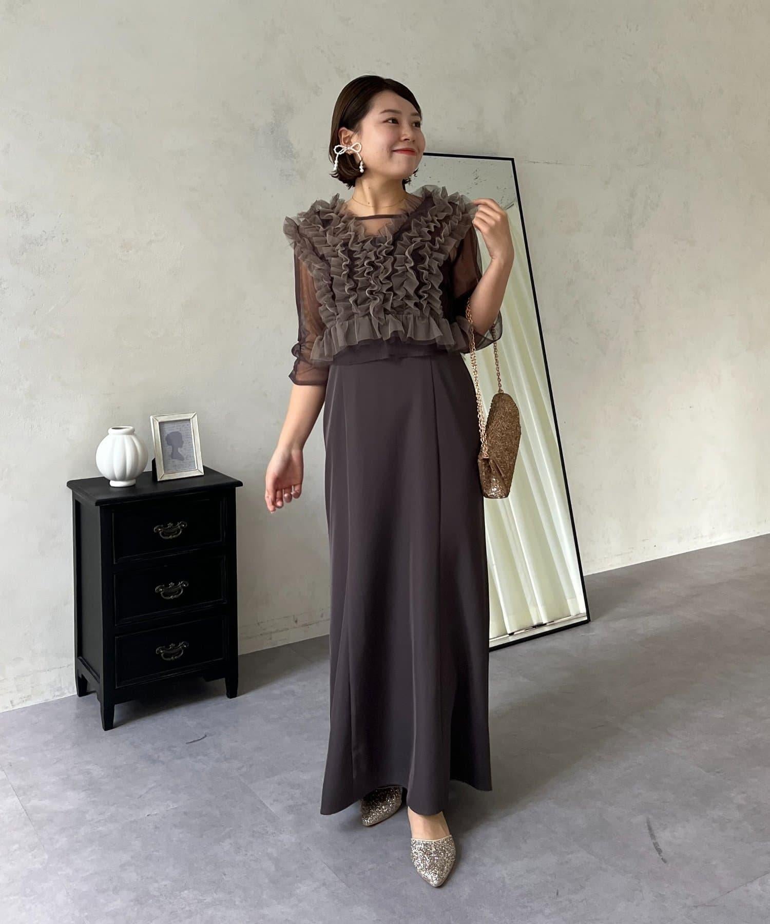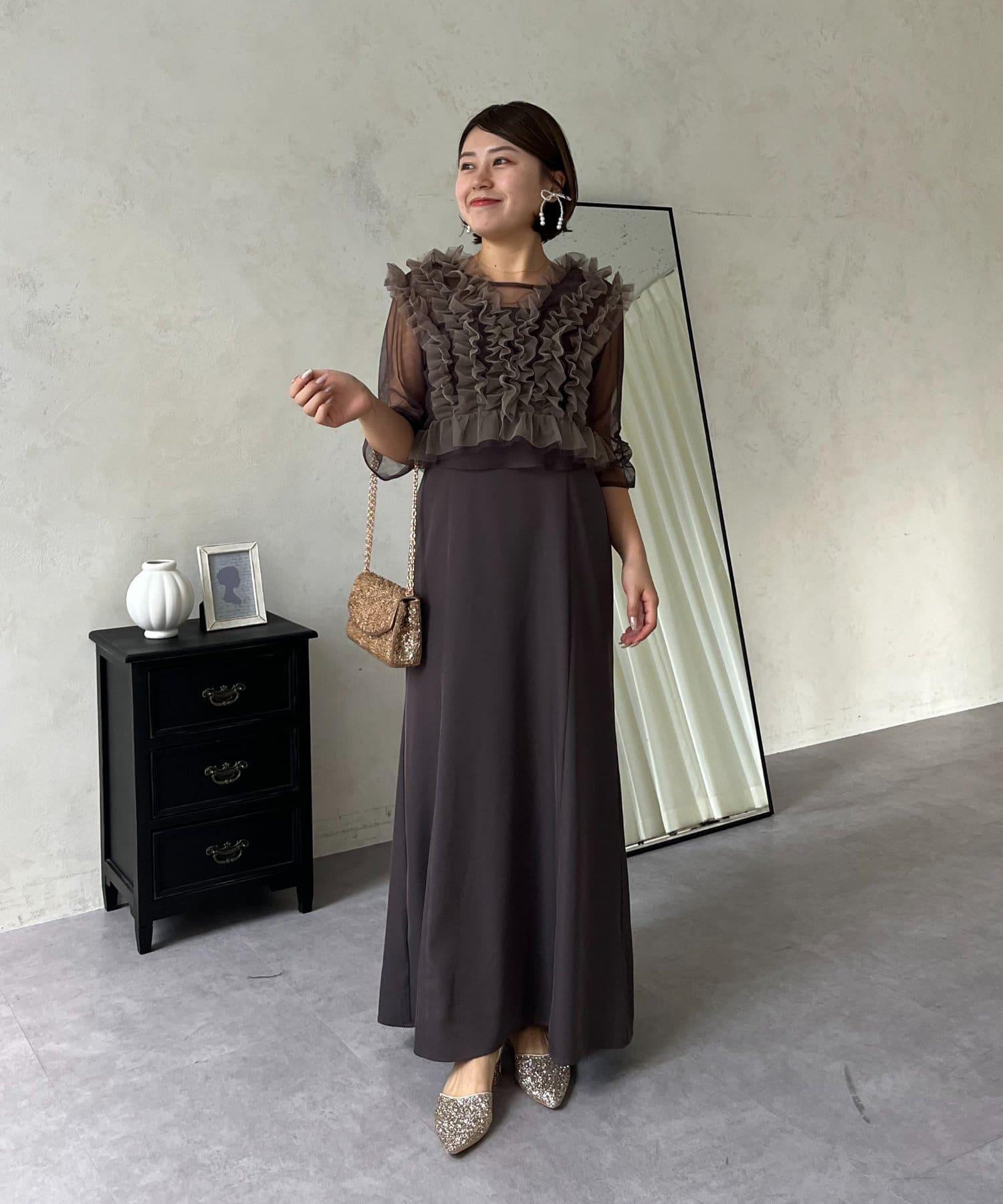 連衣裙/連衣裙/長裙/薄紗/薄紗上衣/鑰匙領/