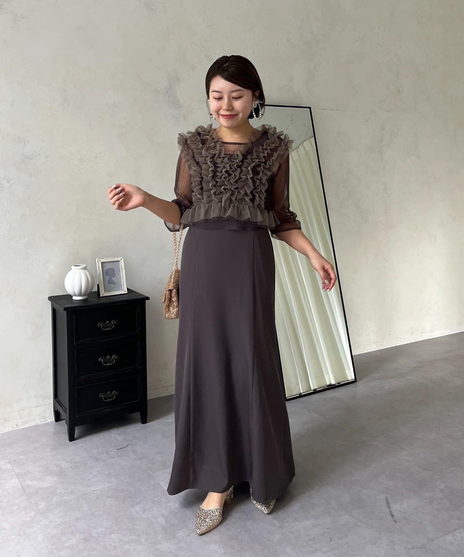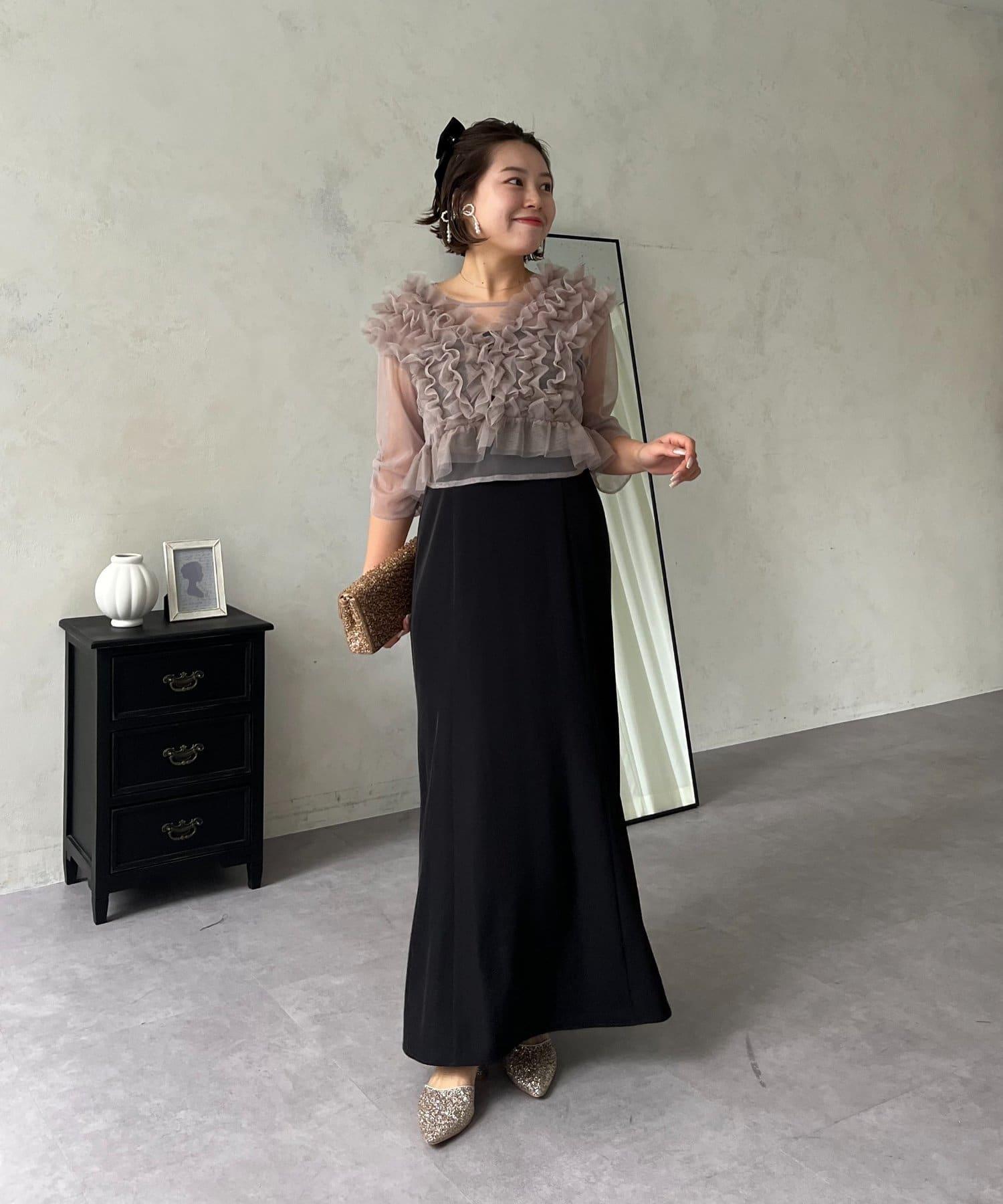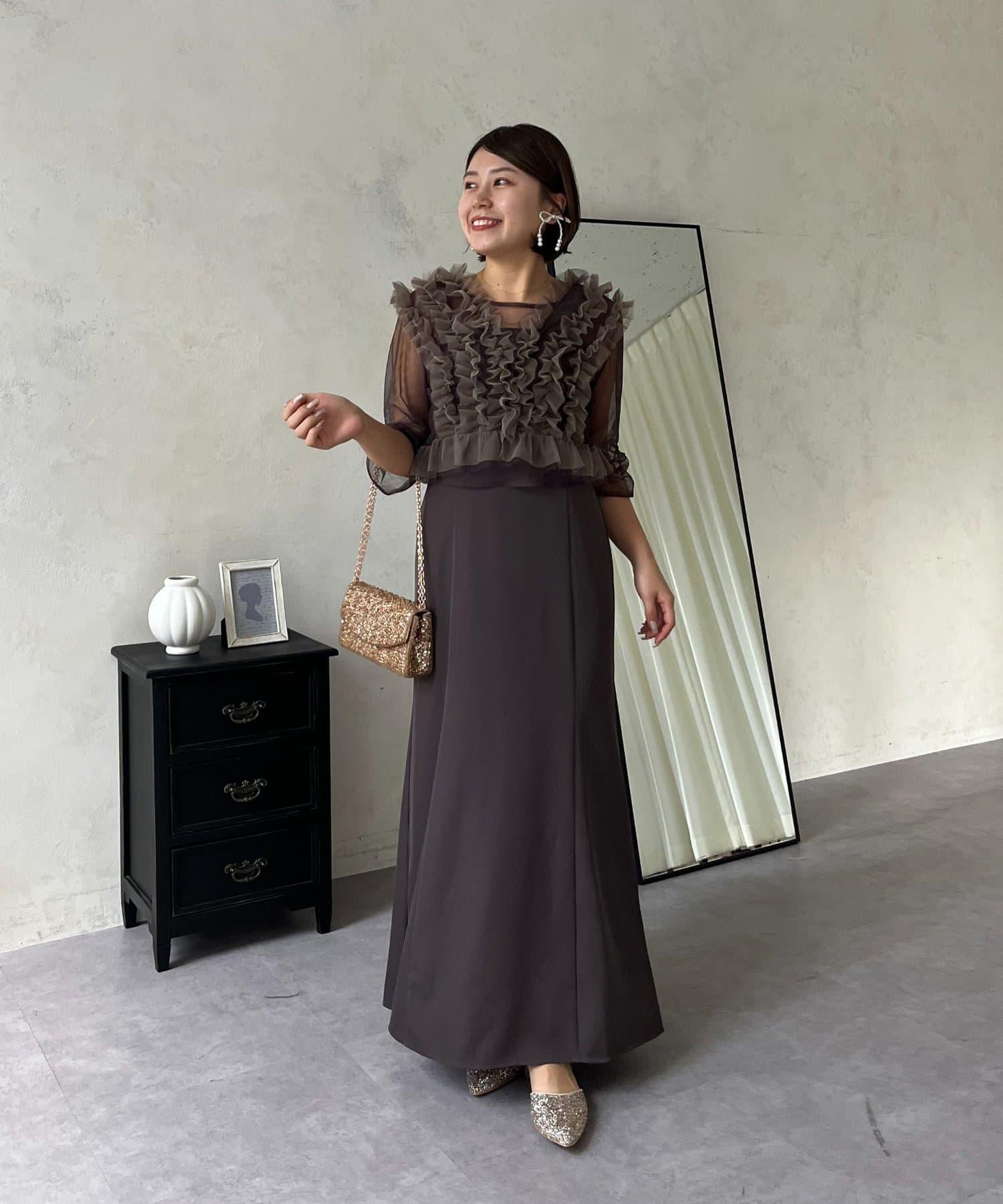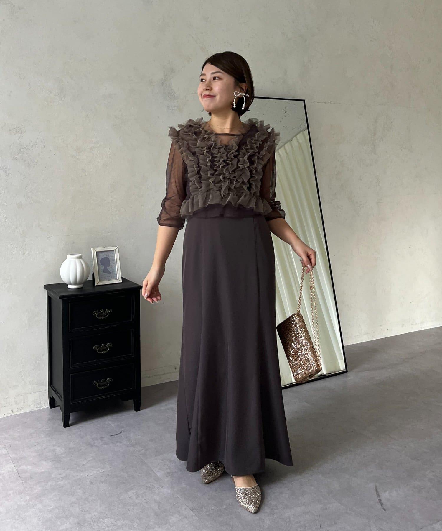 連衣裙/連衣裙/長裙/薄紗/薄紗上衣/鑰匙領/