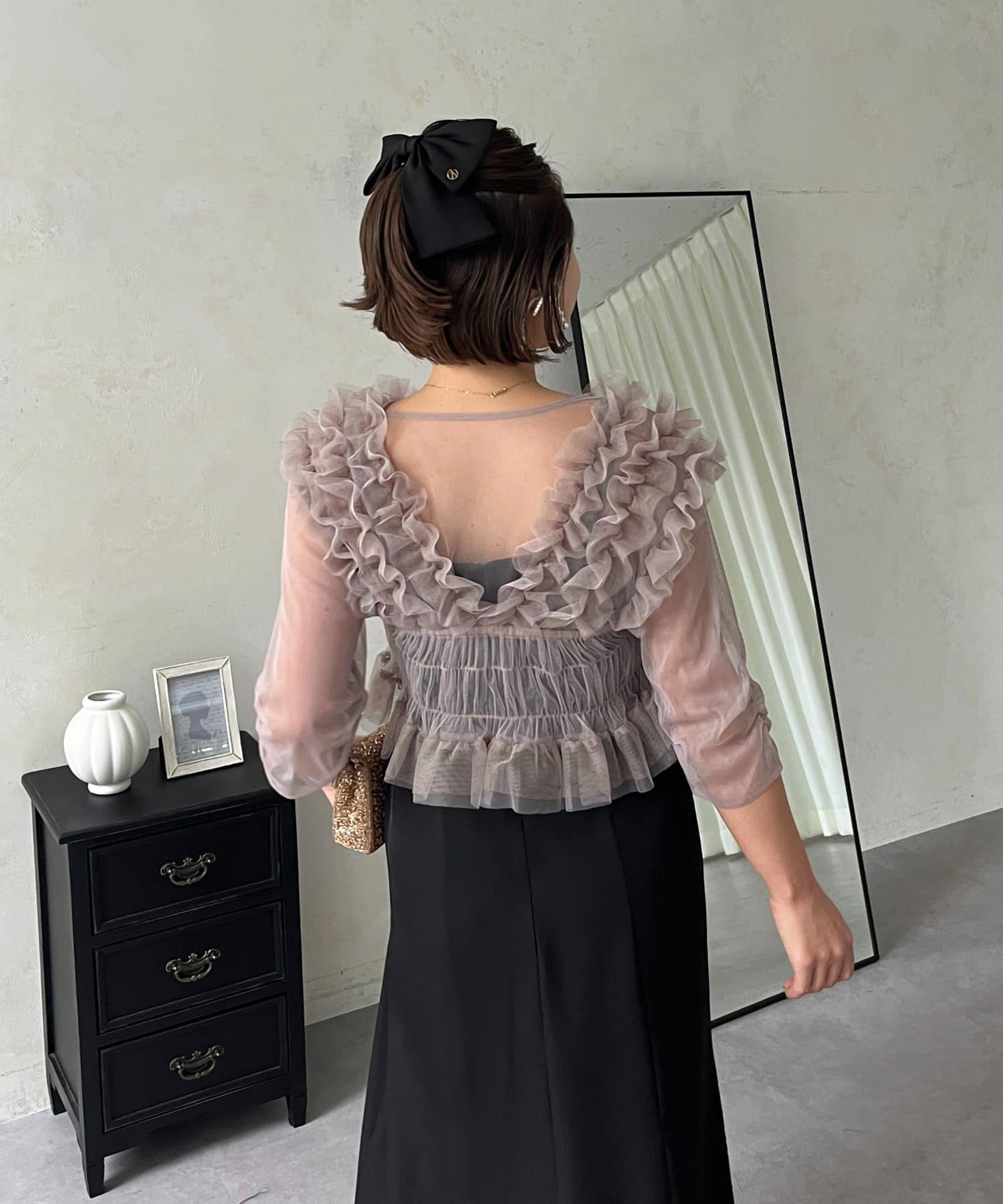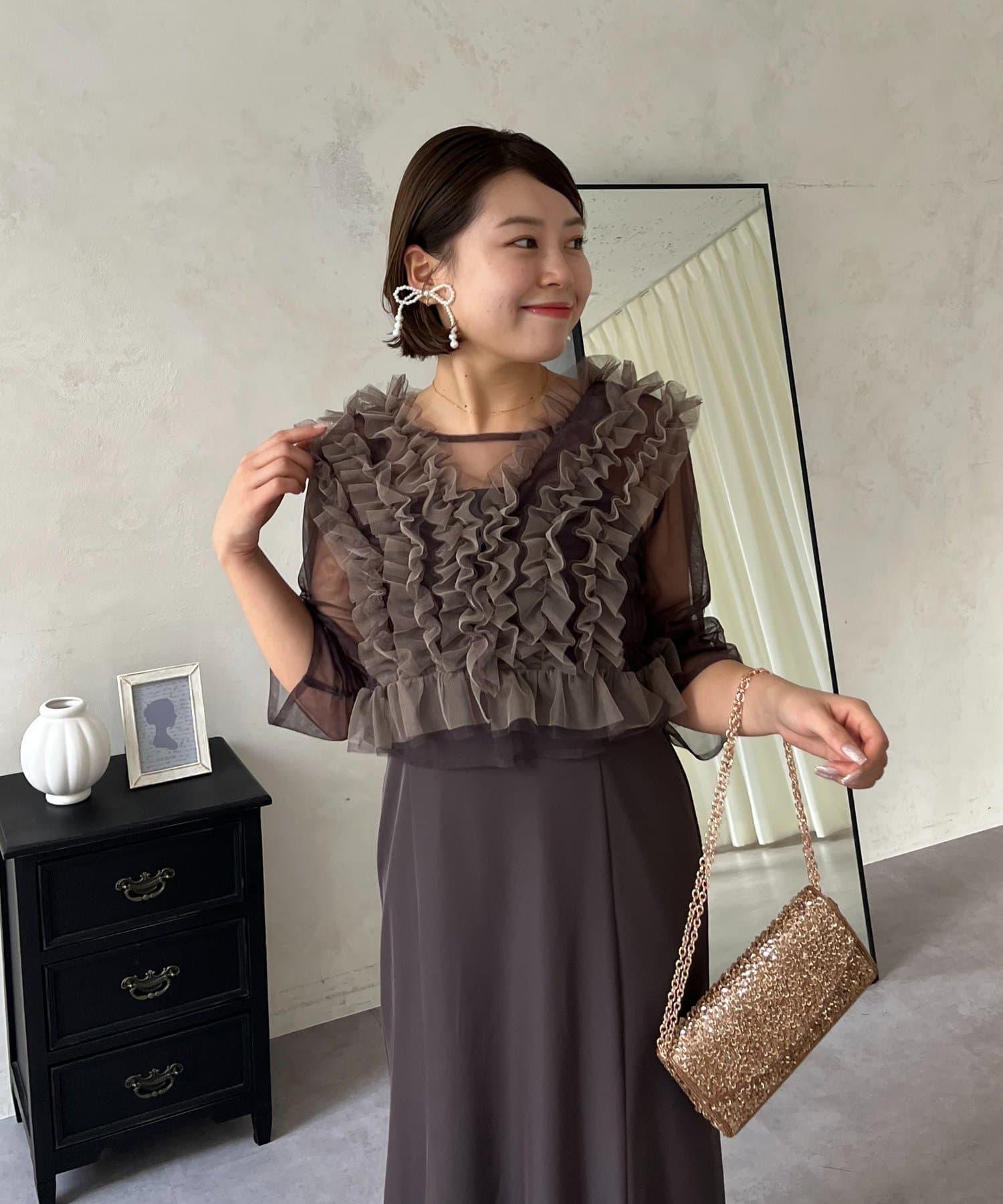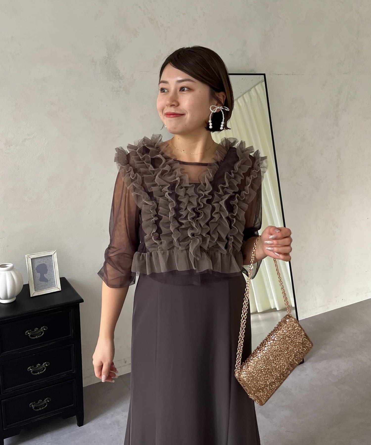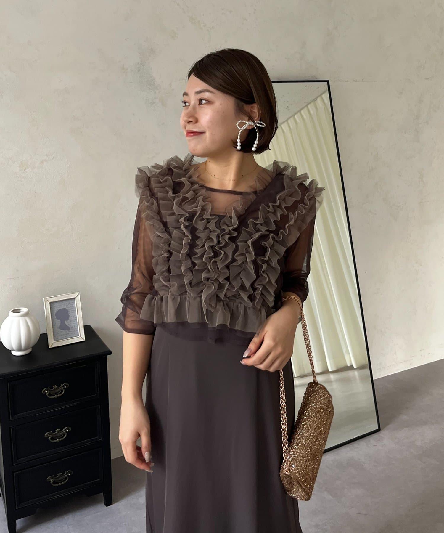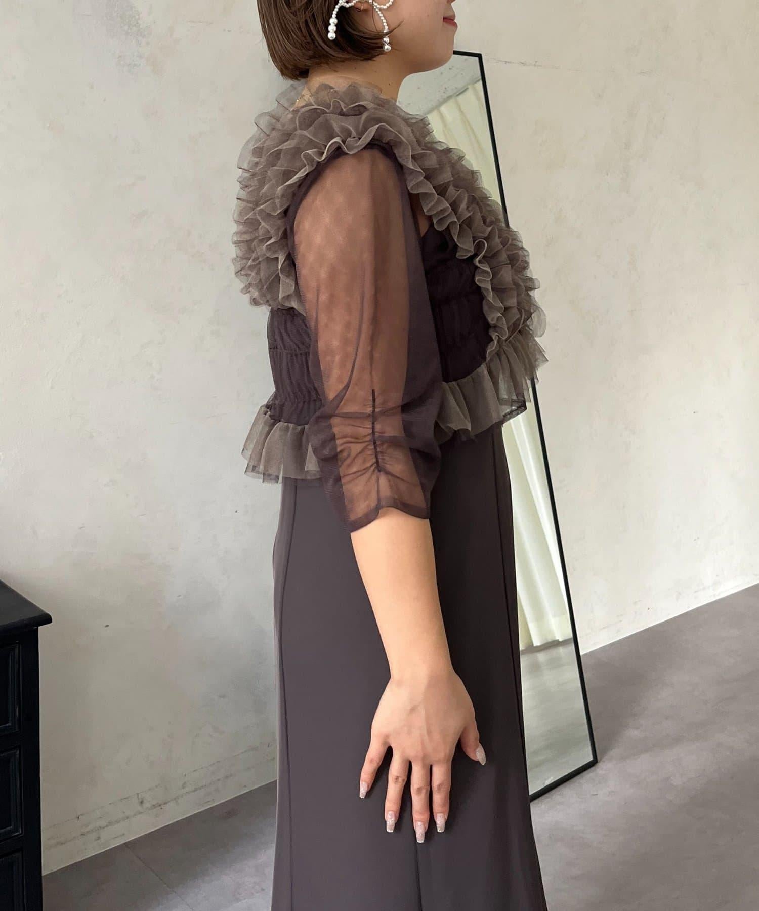 連衣裙/連衣裙/長裙/薄紗/薄紗上衣/鑰匙領/