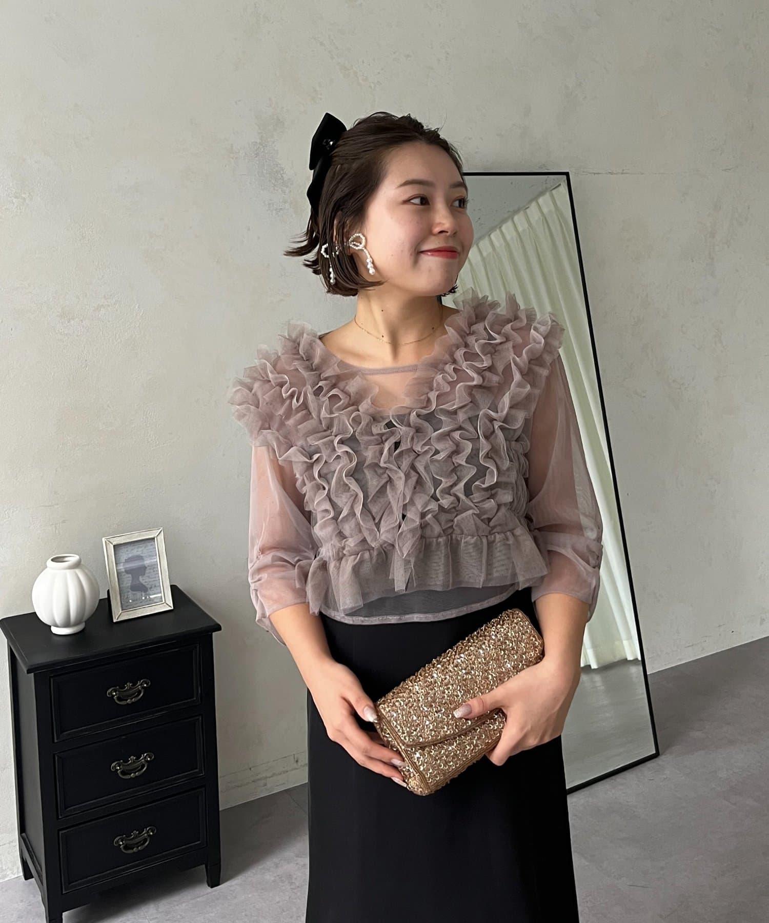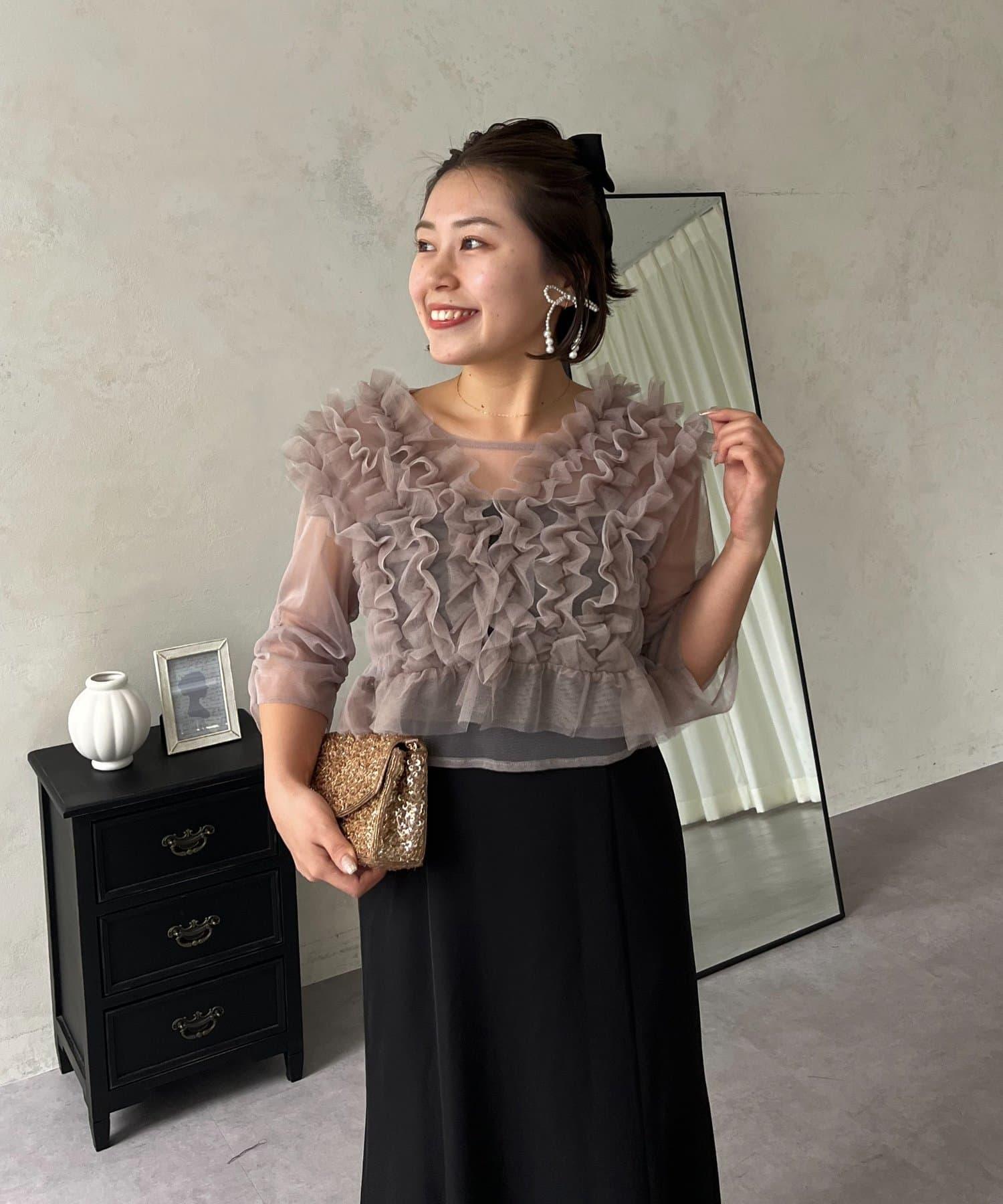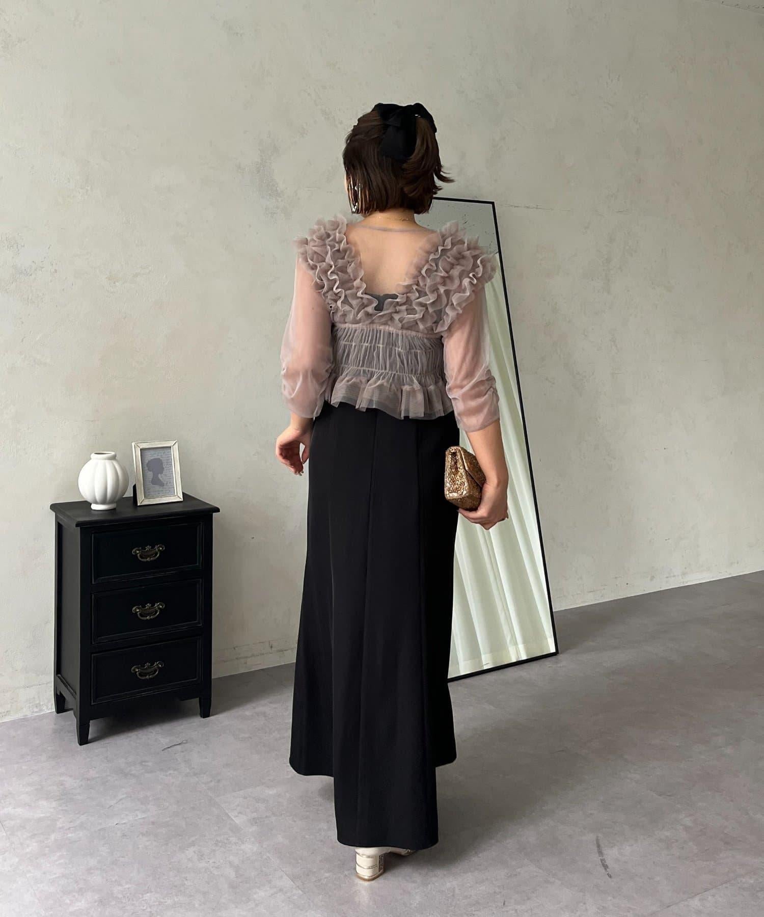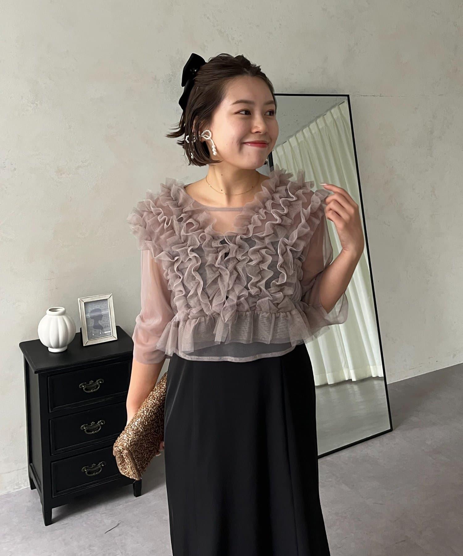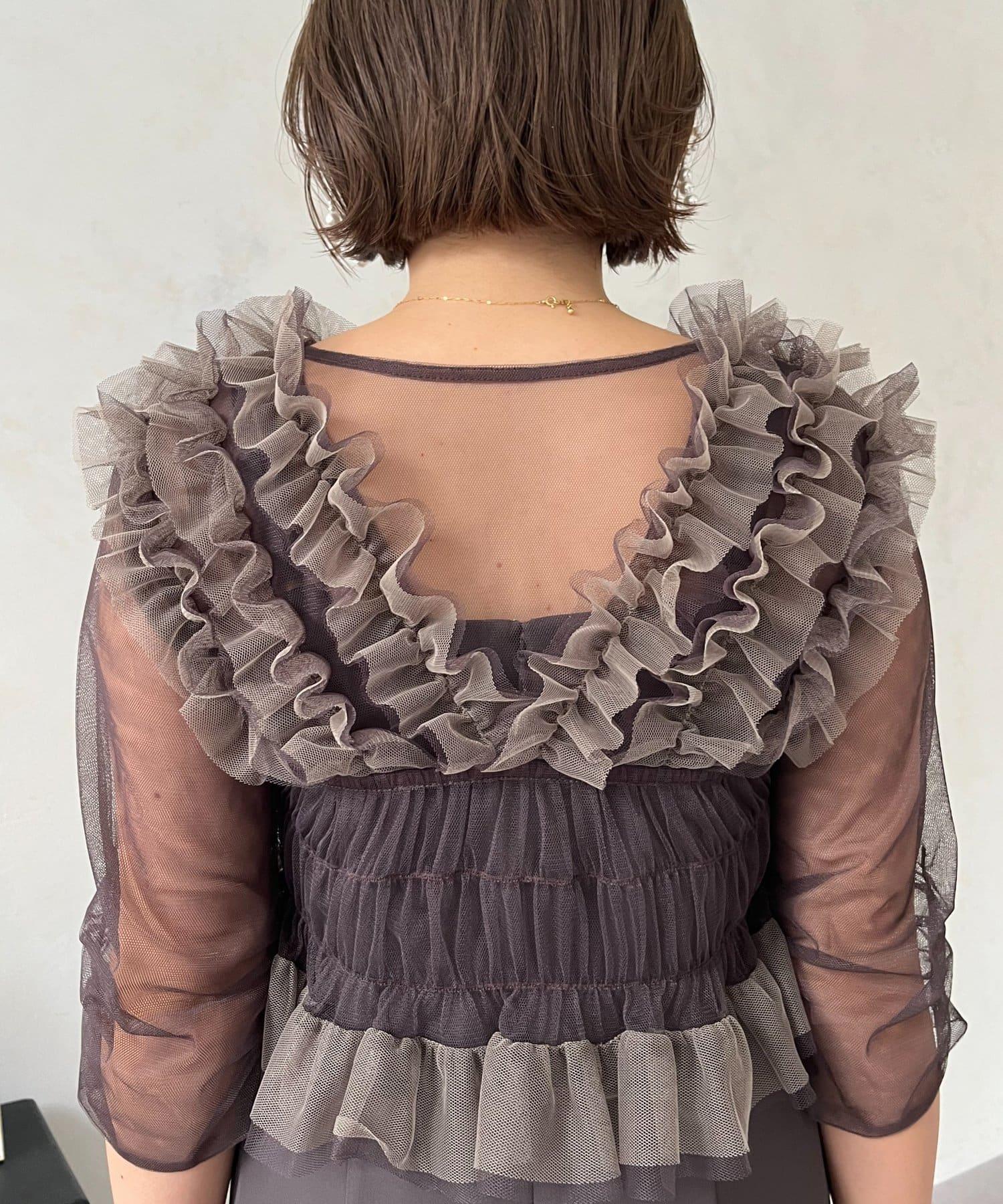 連衣裙/連衣裙/長裙/薄紗/薄紗上衣/鑰匙領/