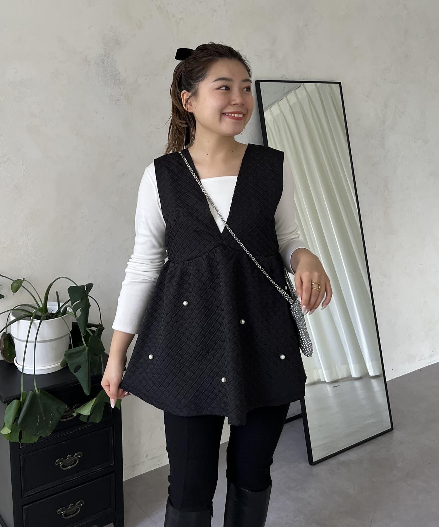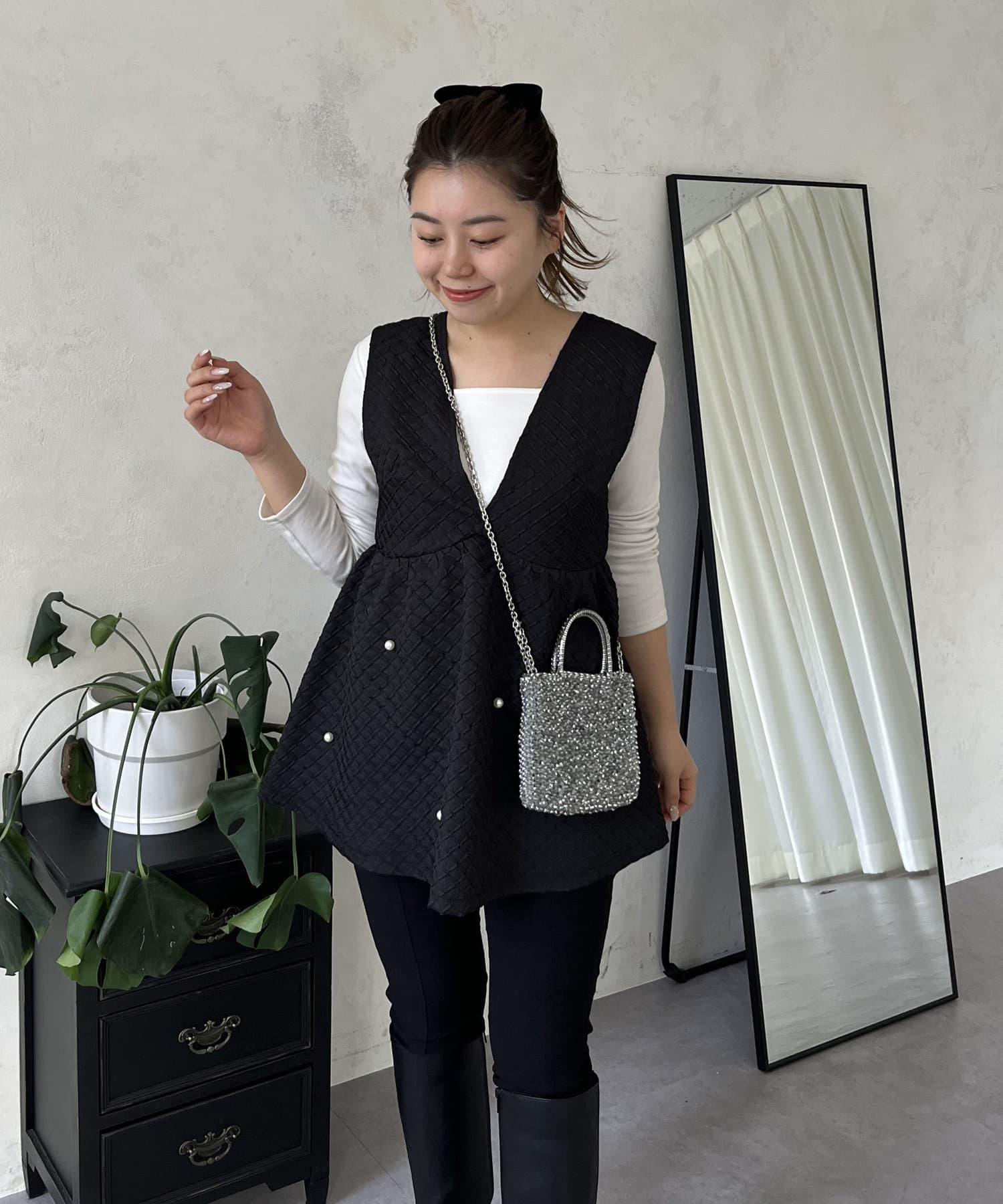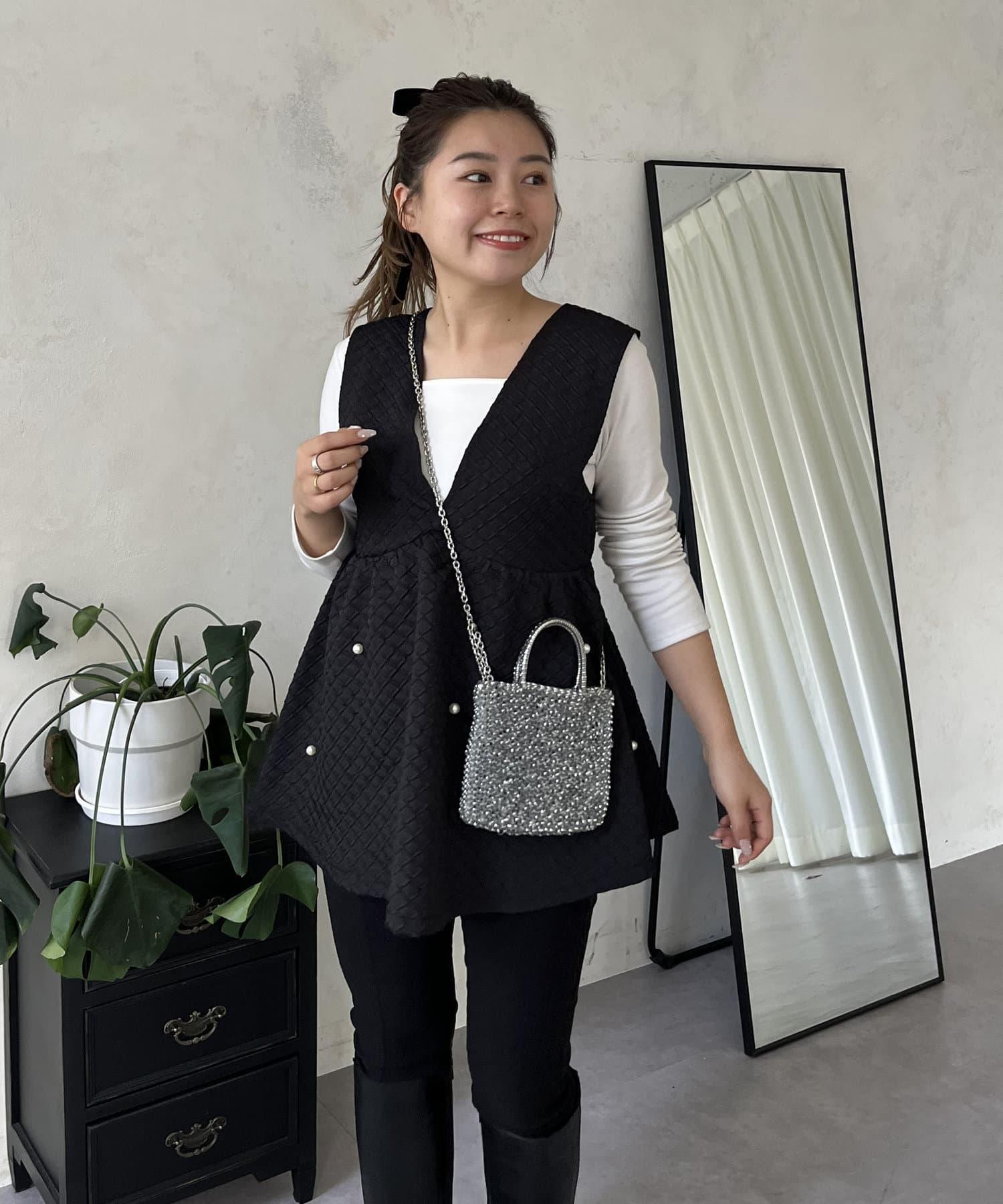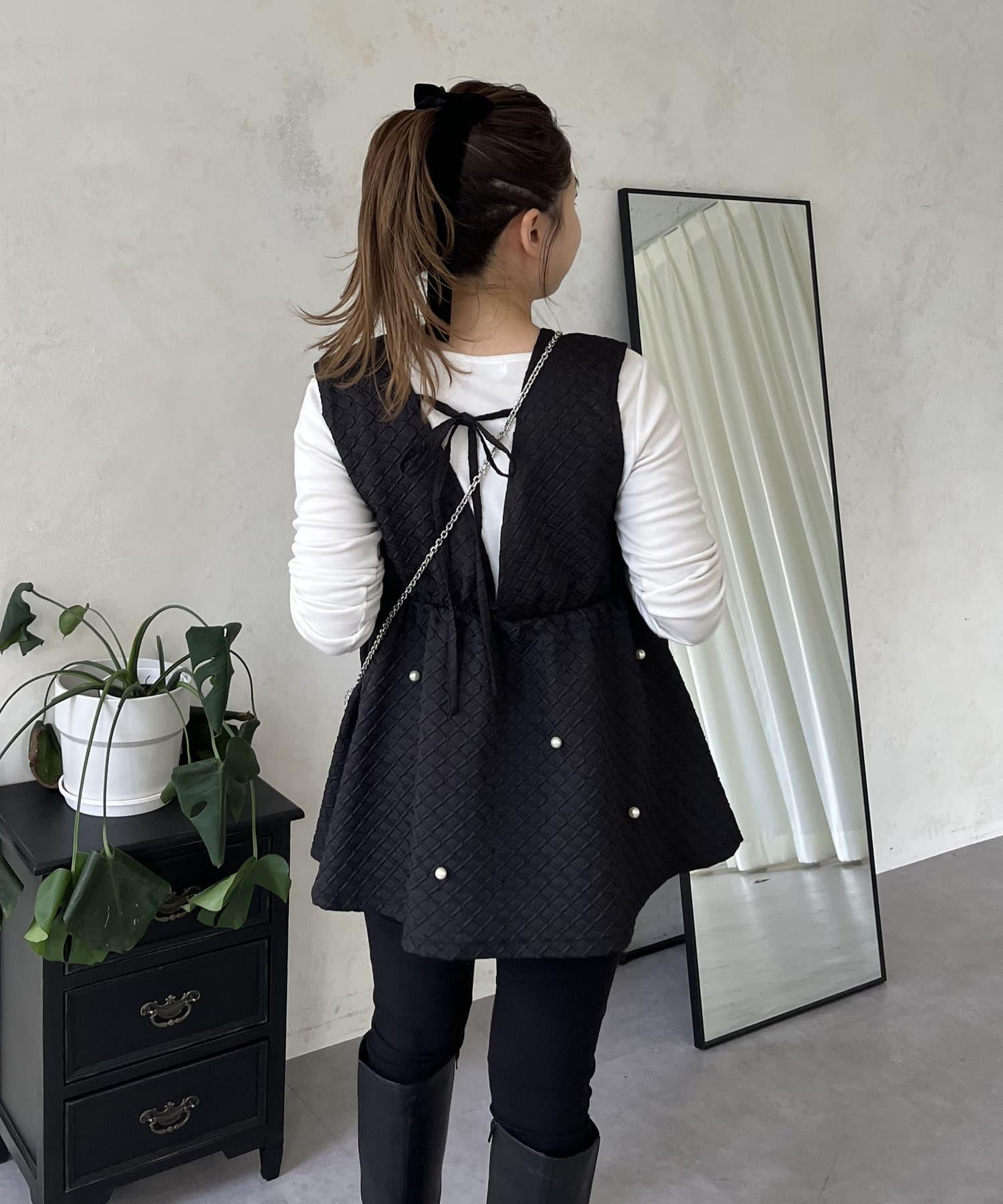 【MOMO COLLECTION】深V領珍珠荷葉邊馬甲
