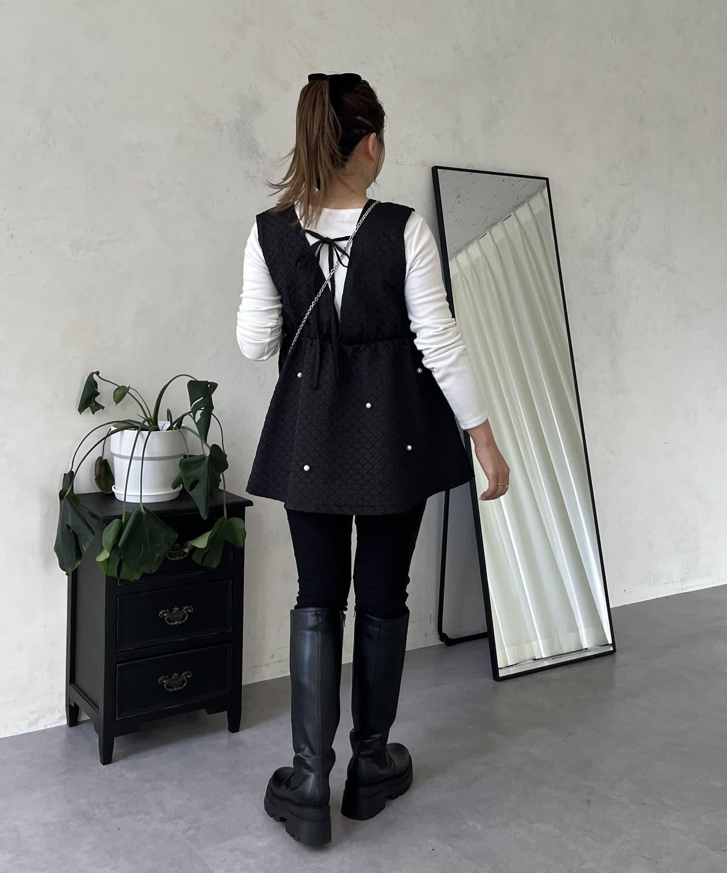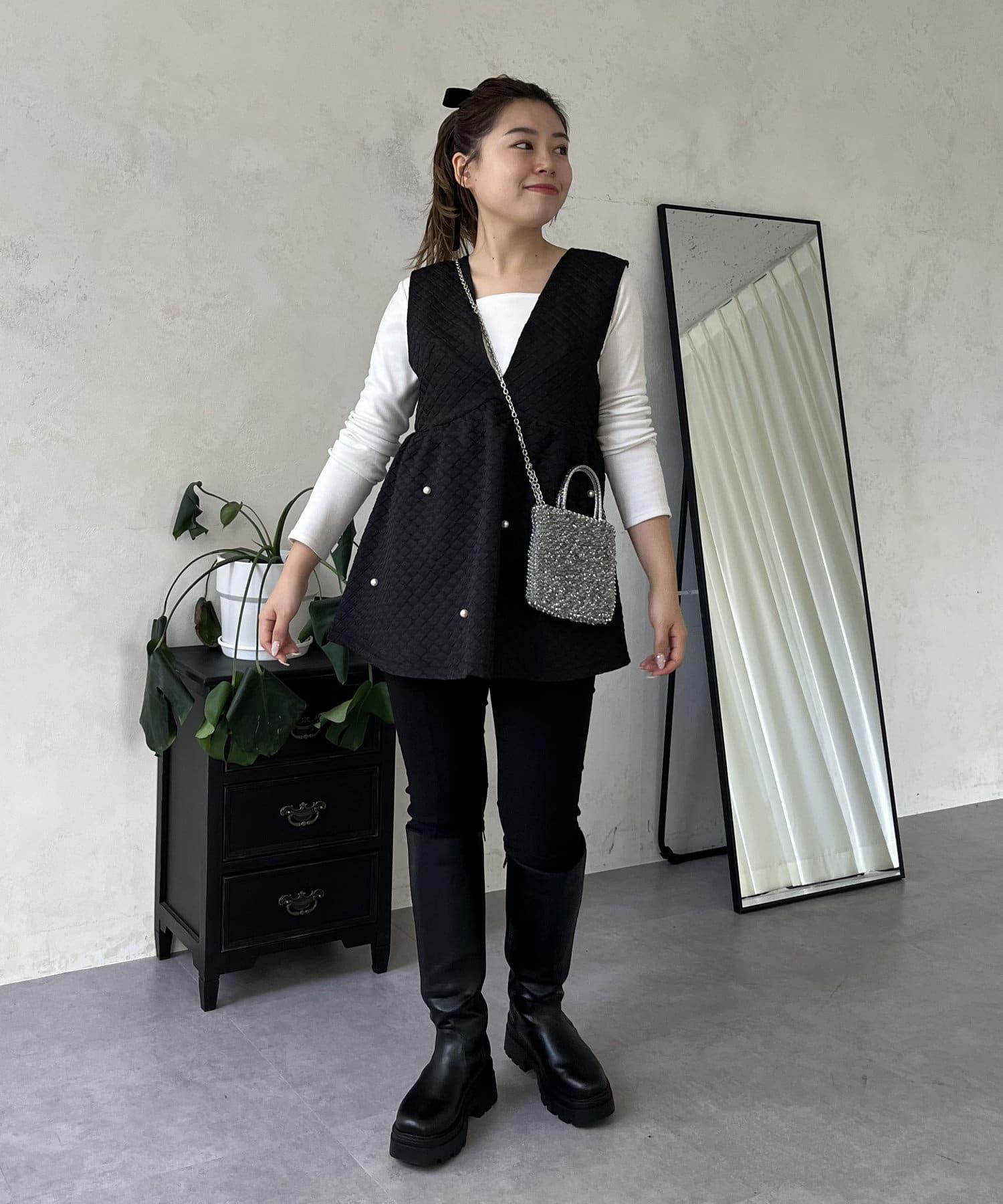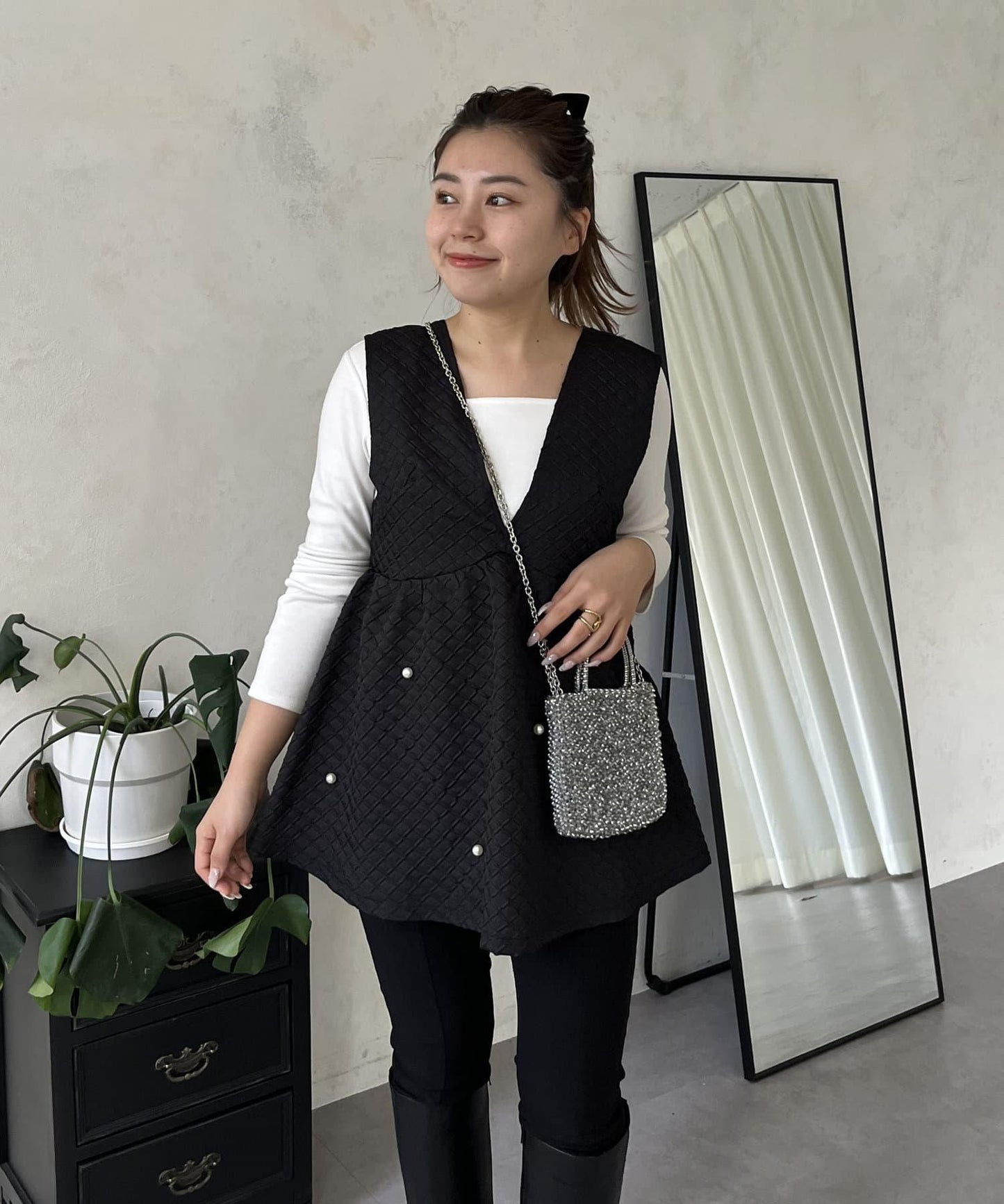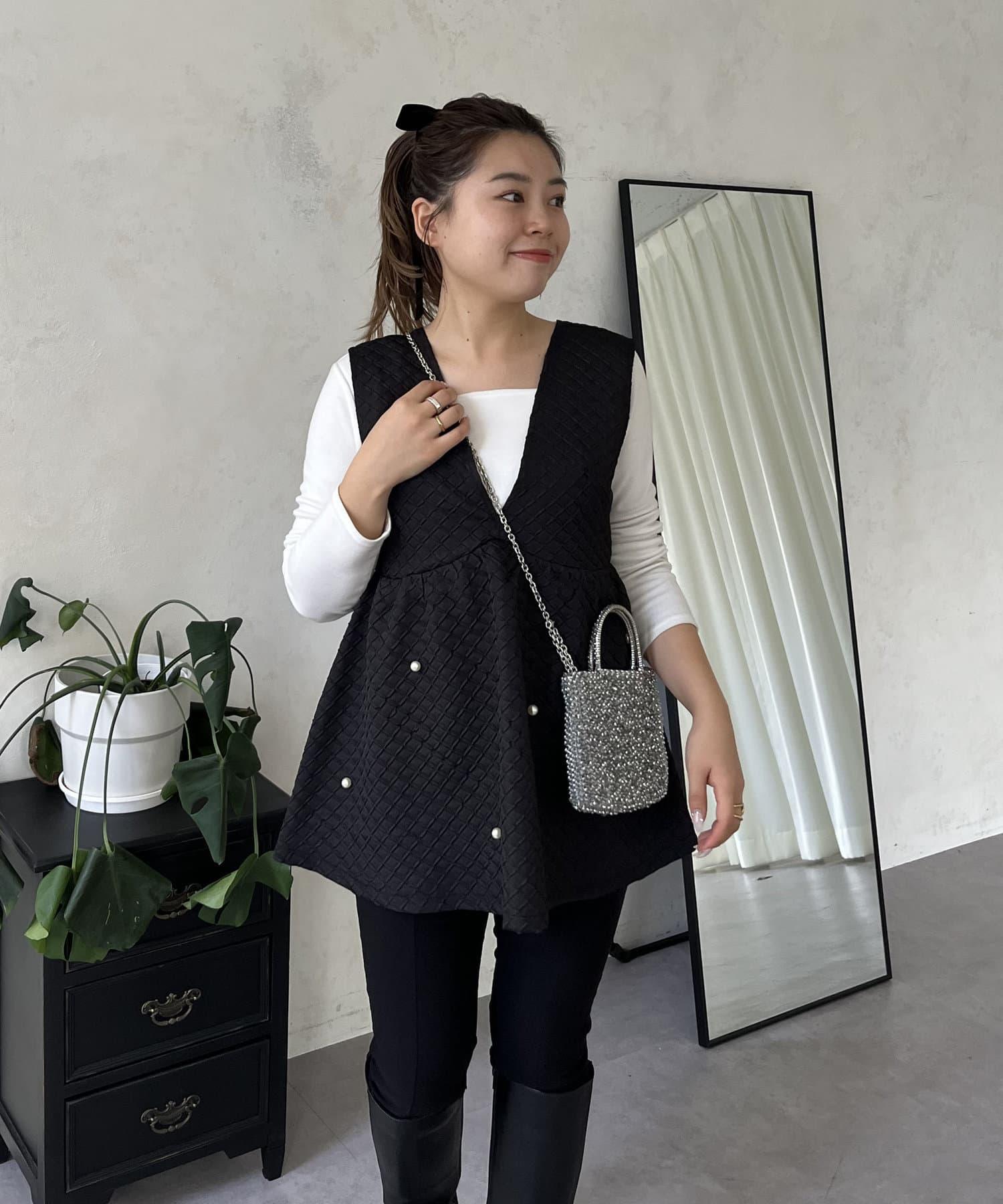 【MOMO COLLECTION】深V領珍珠荷葉邊馬甲