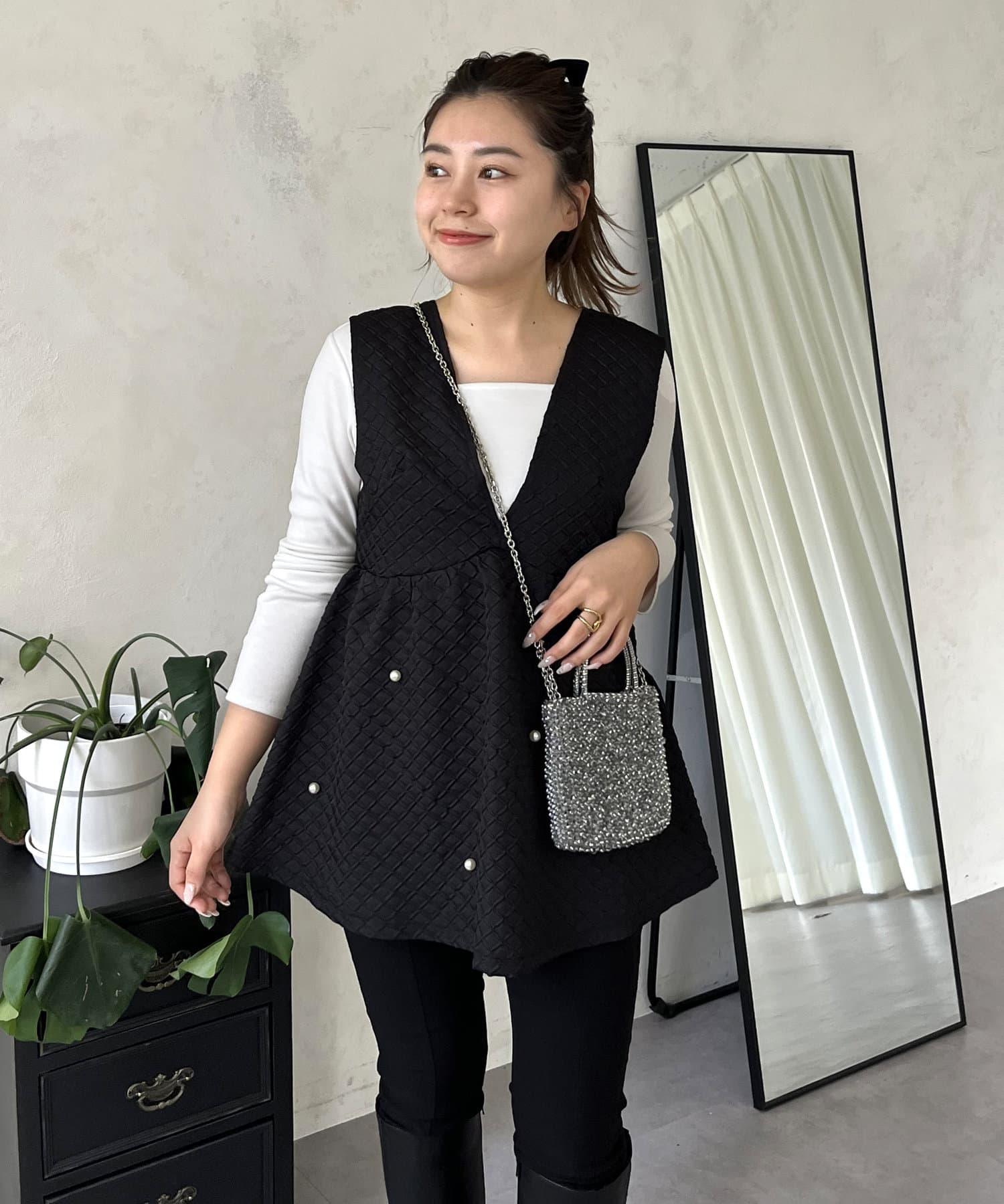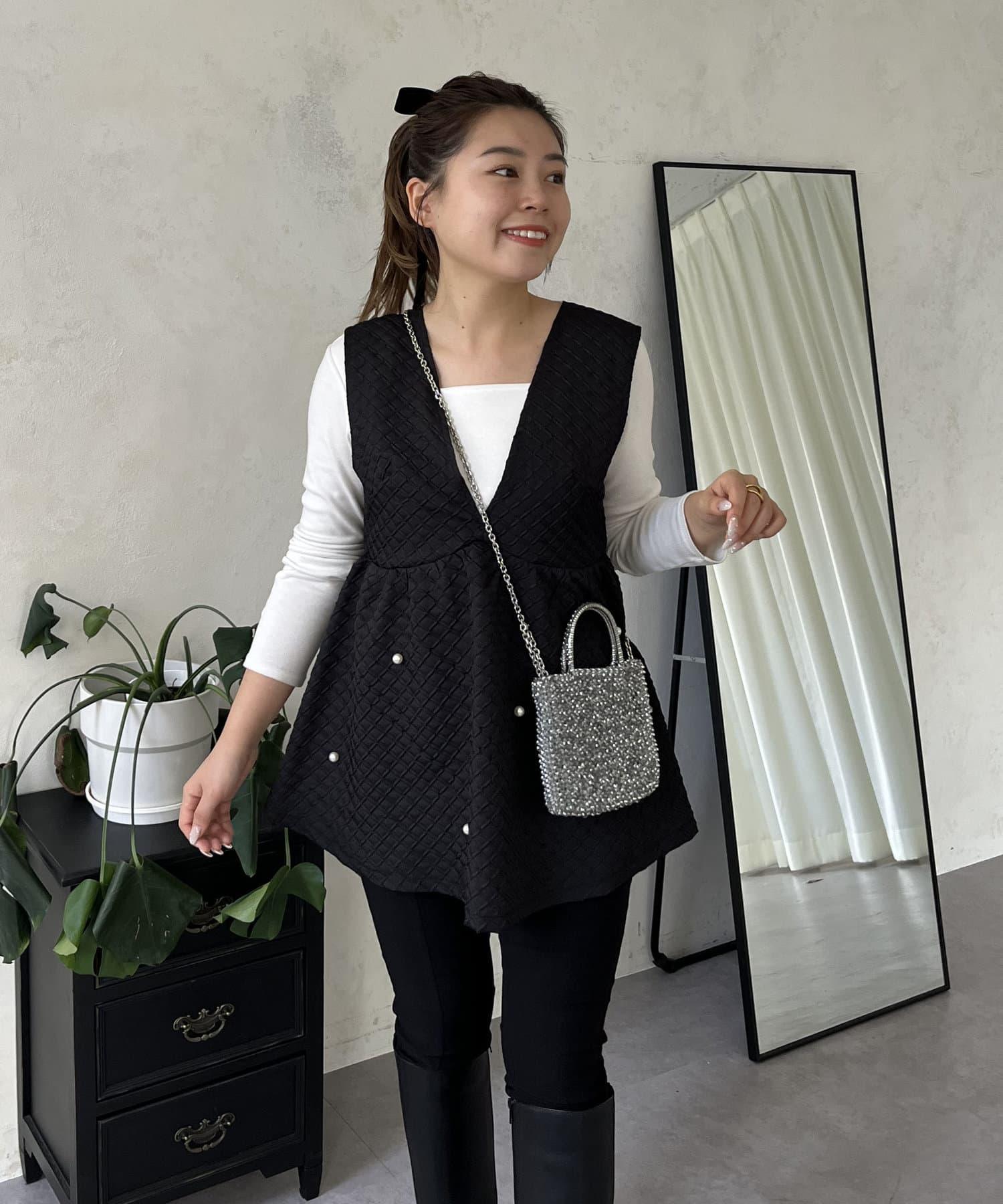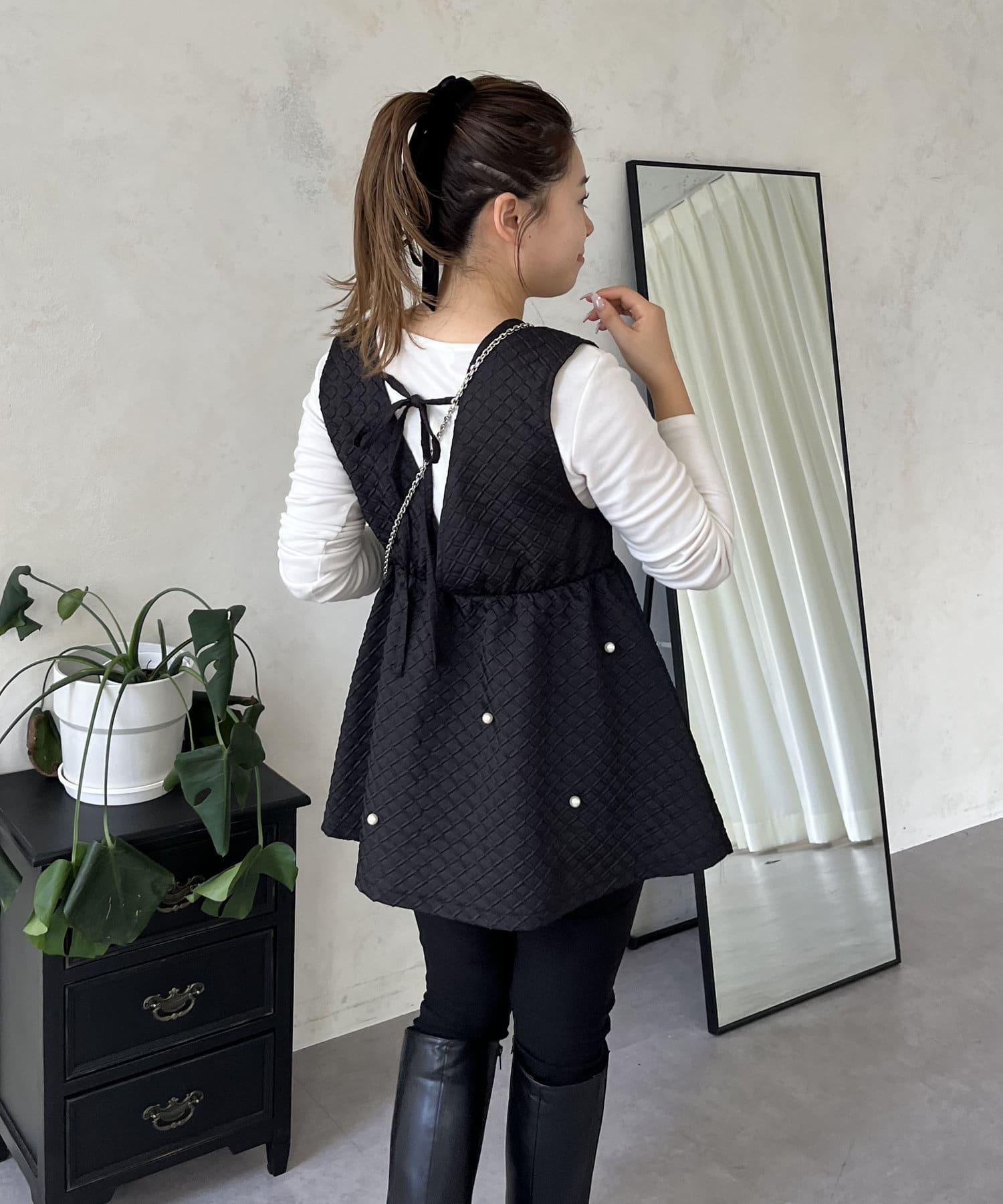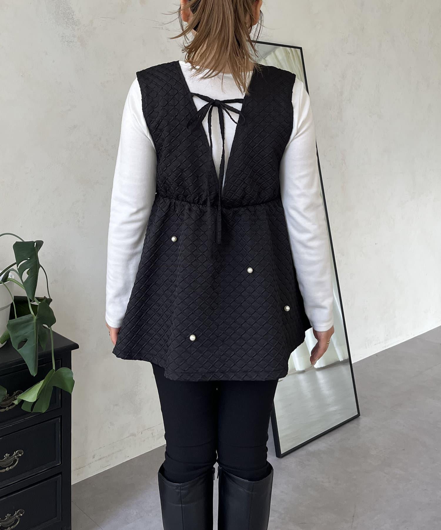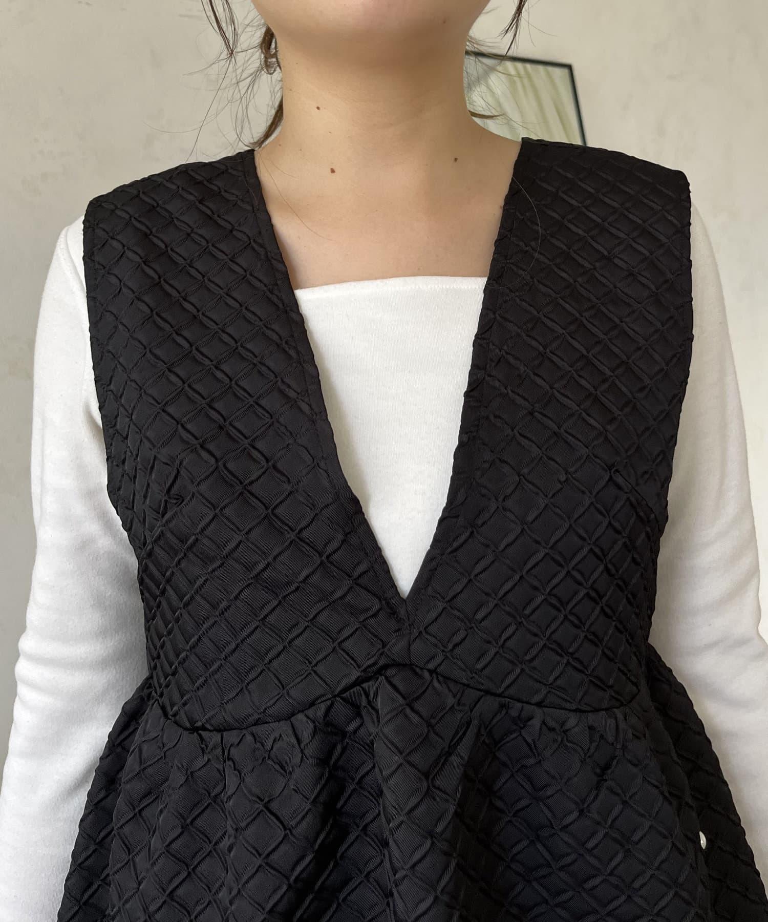 【MOMO COLLECTION】深V領珍珠荷葉邊馬甲
