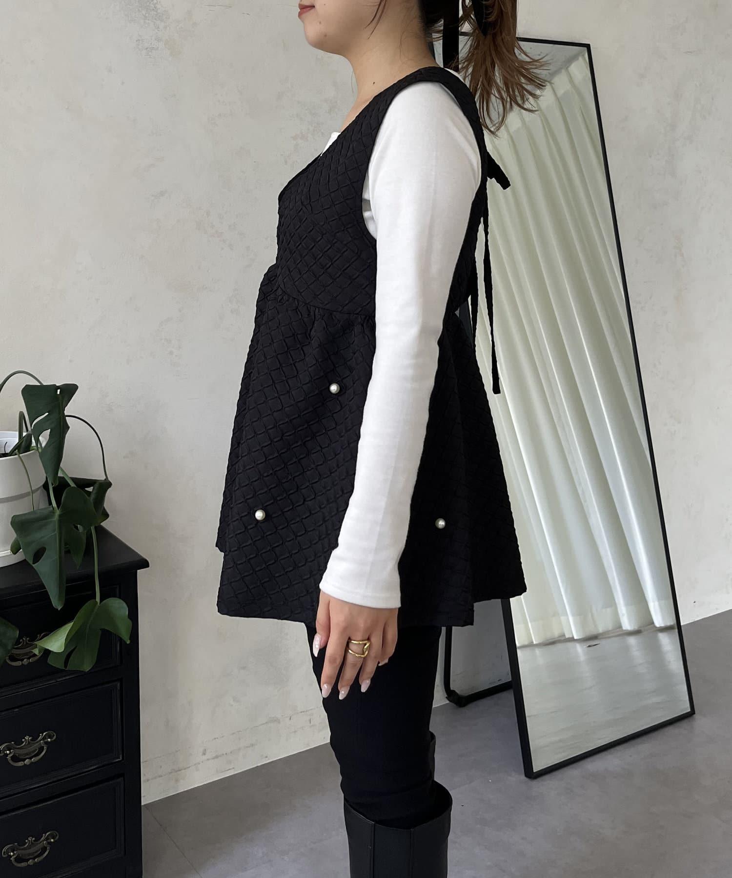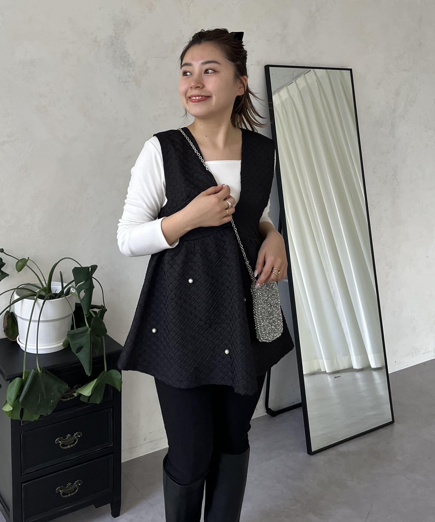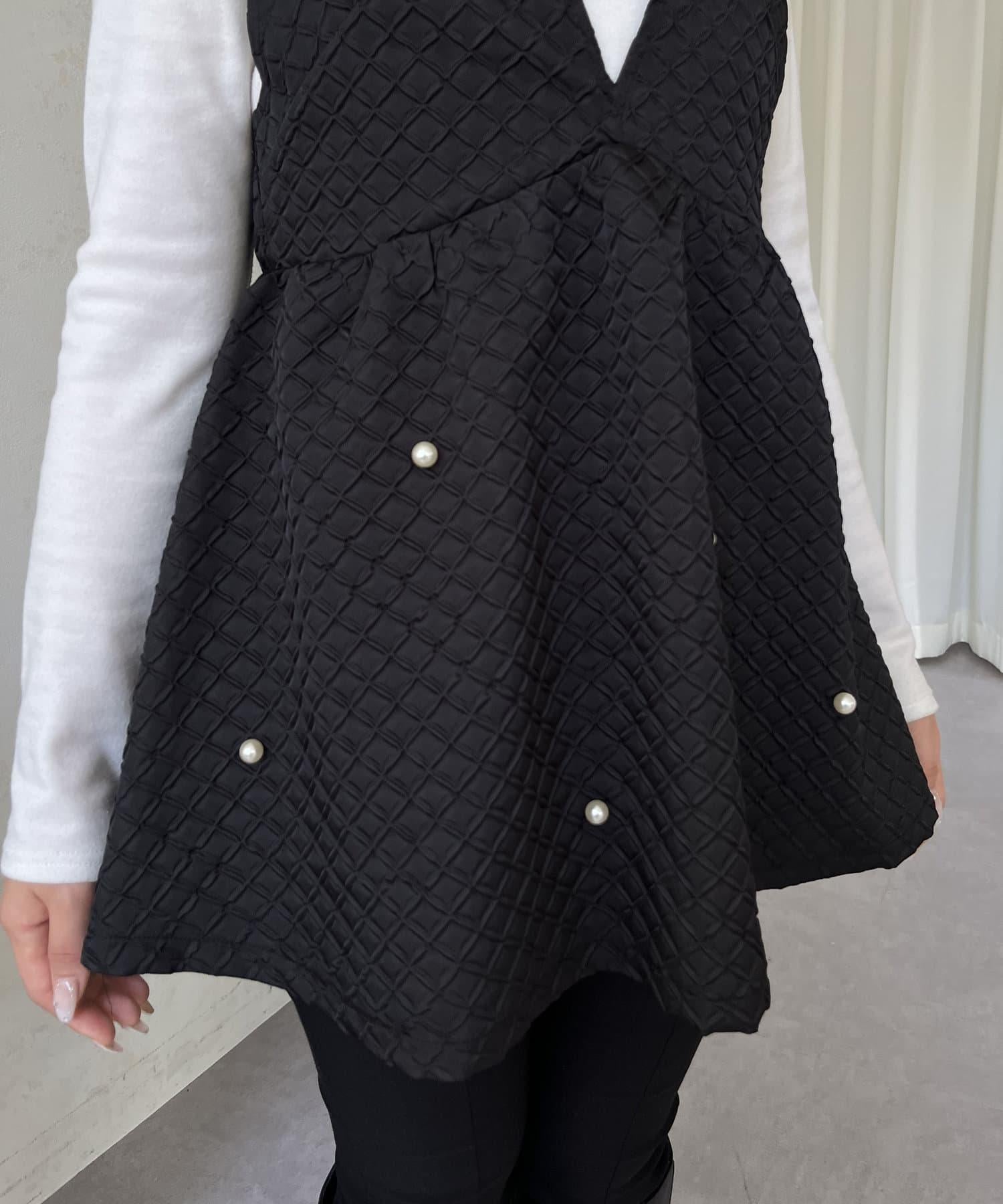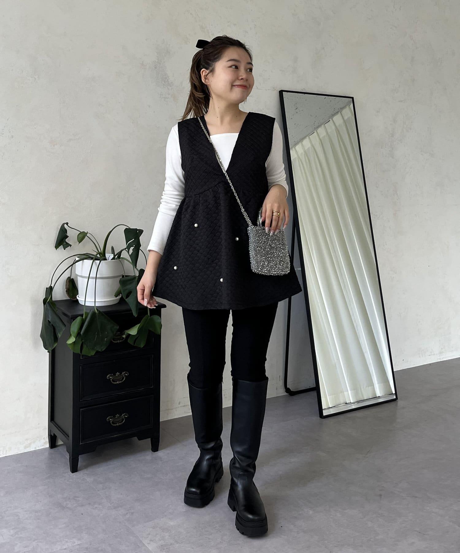 【MOMO COLLECTION】深V領珍珠荷葉邊馬甲