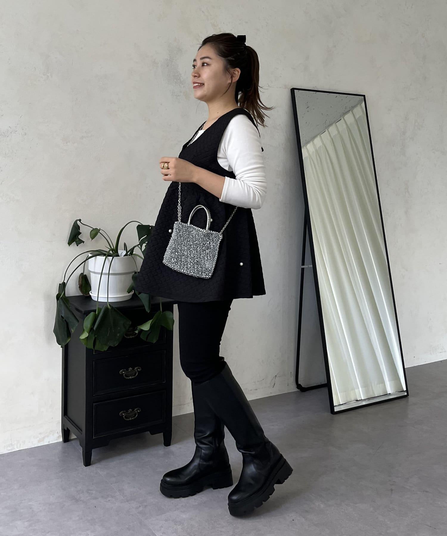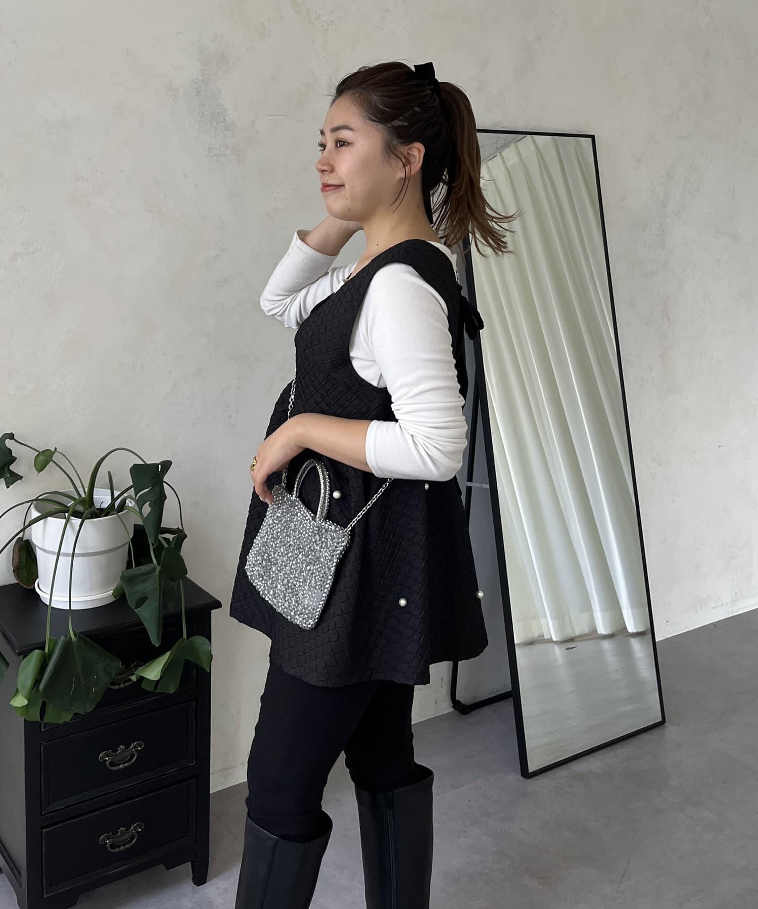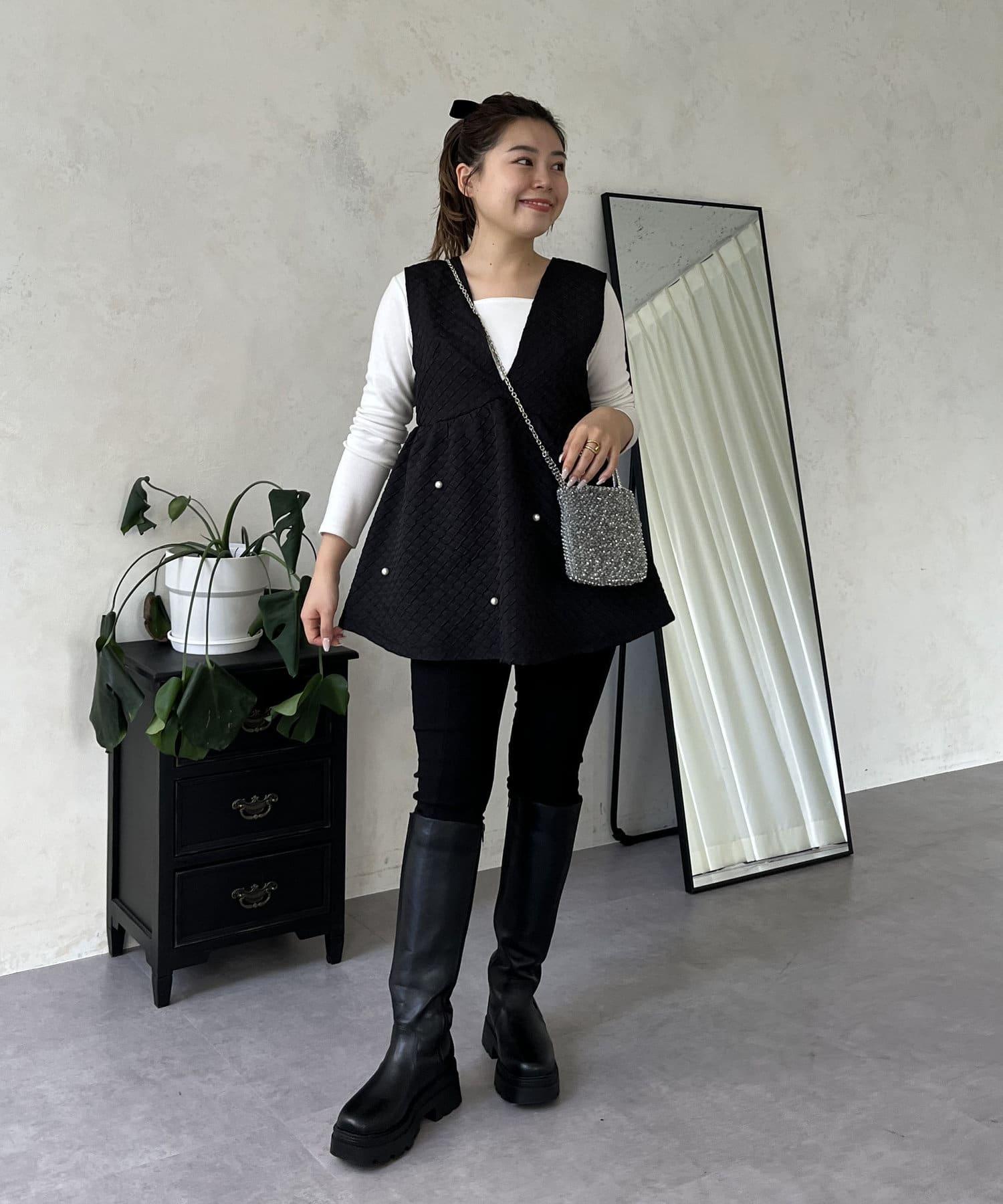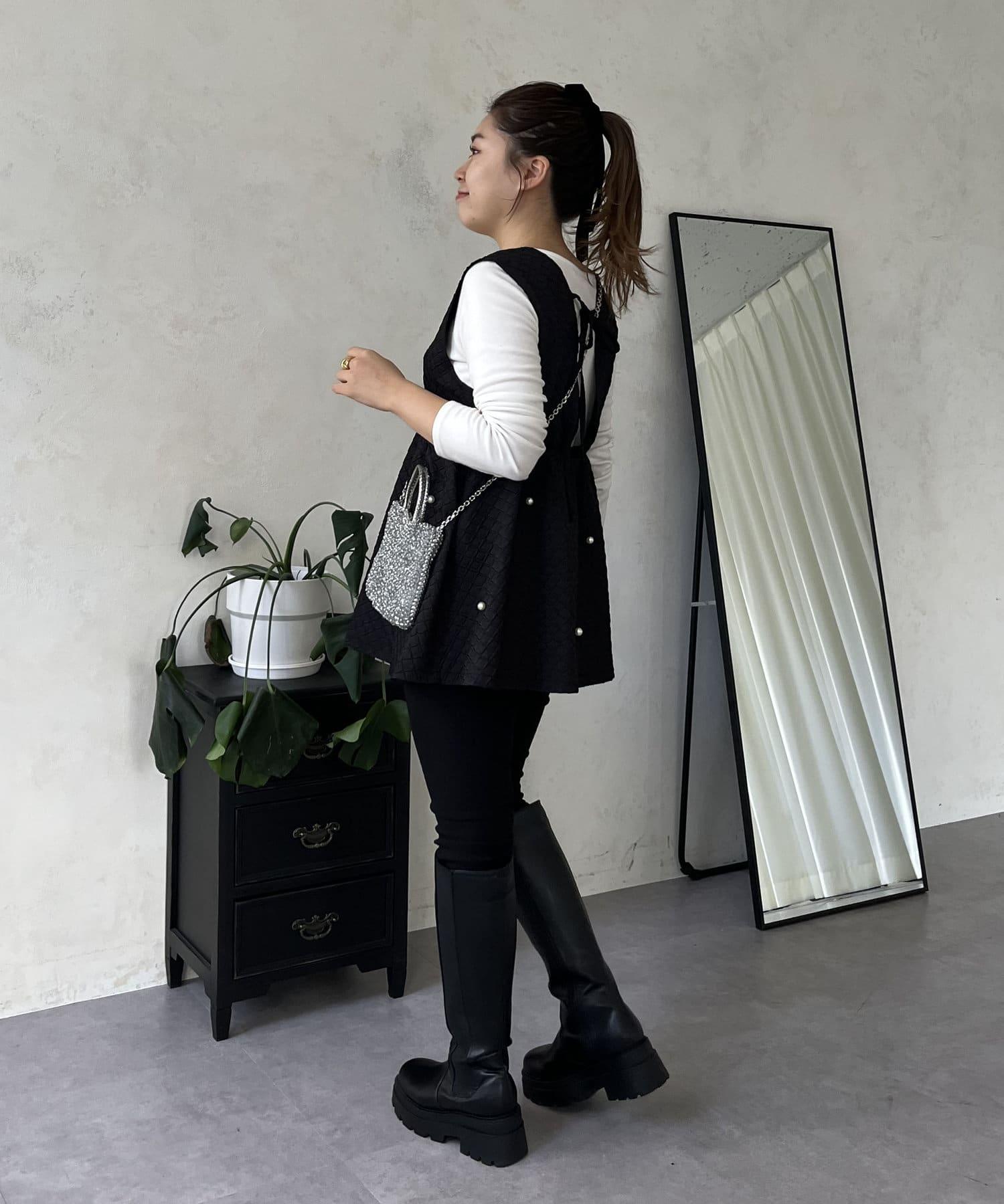 【MOMO COLLECTION】深V領珍珠荷葉邊馬甲