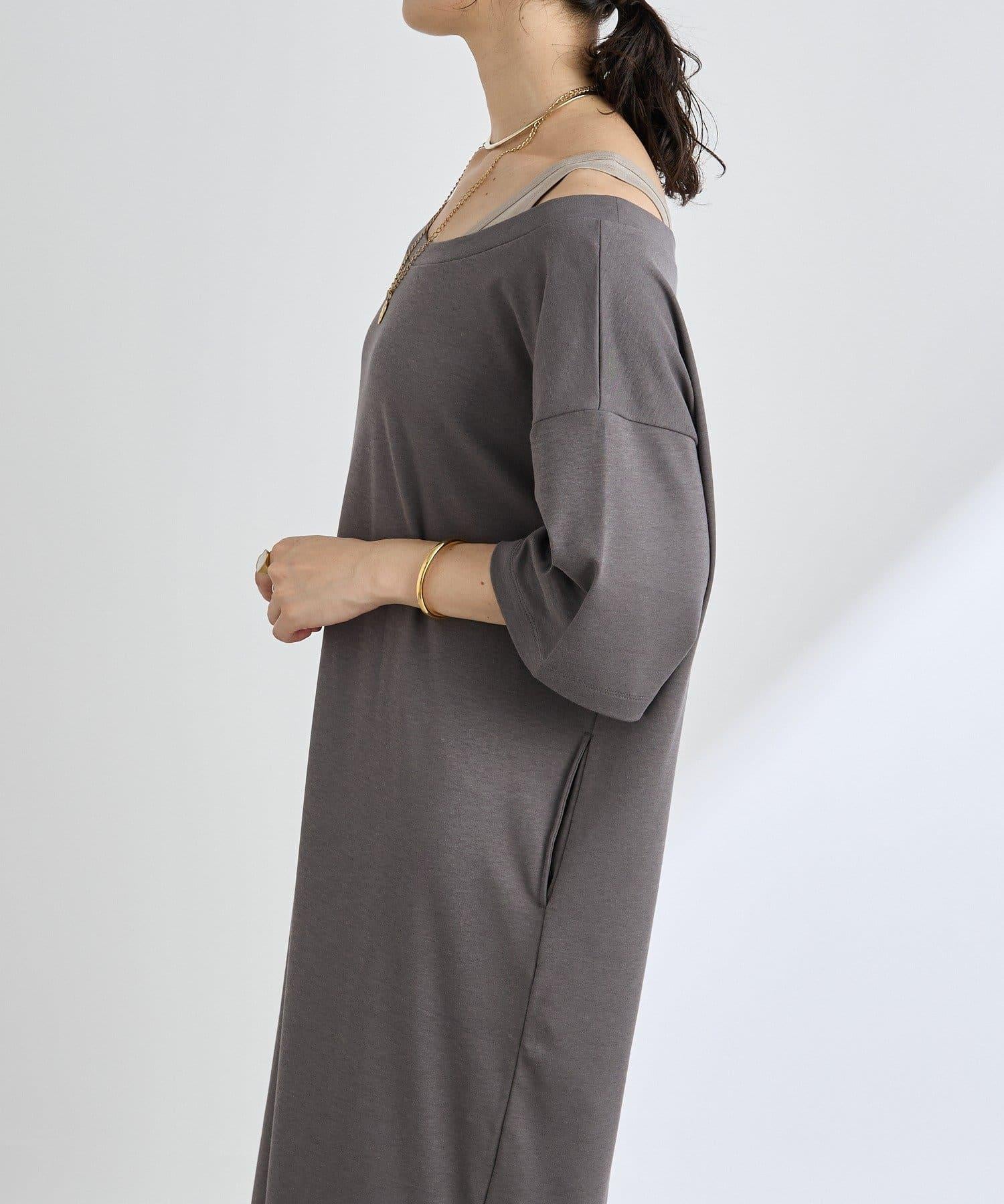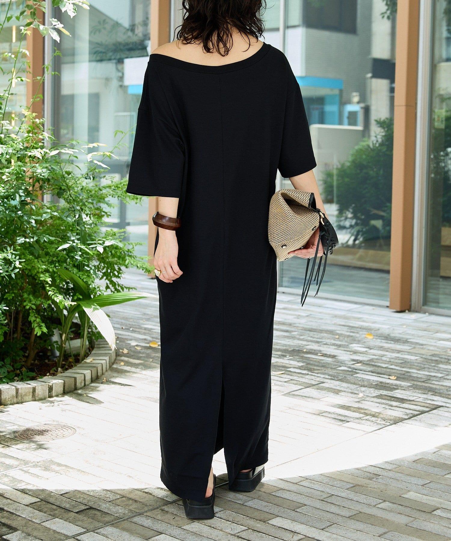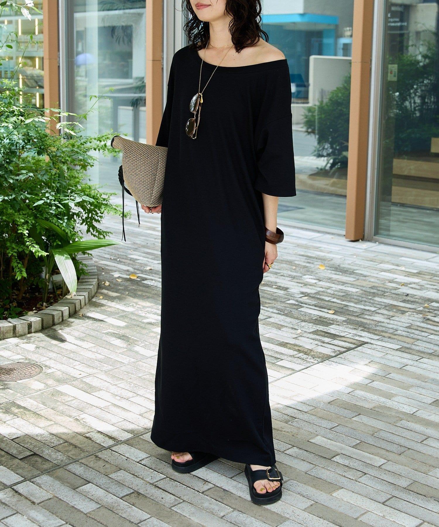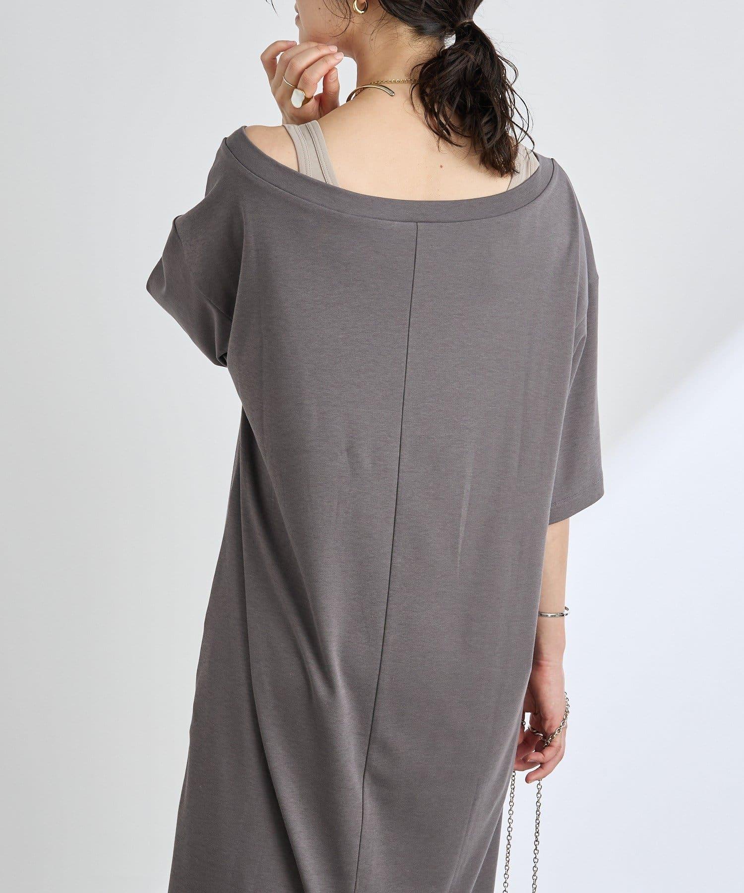 領口大而開闊,建議作為單肩連衣裙穿著。