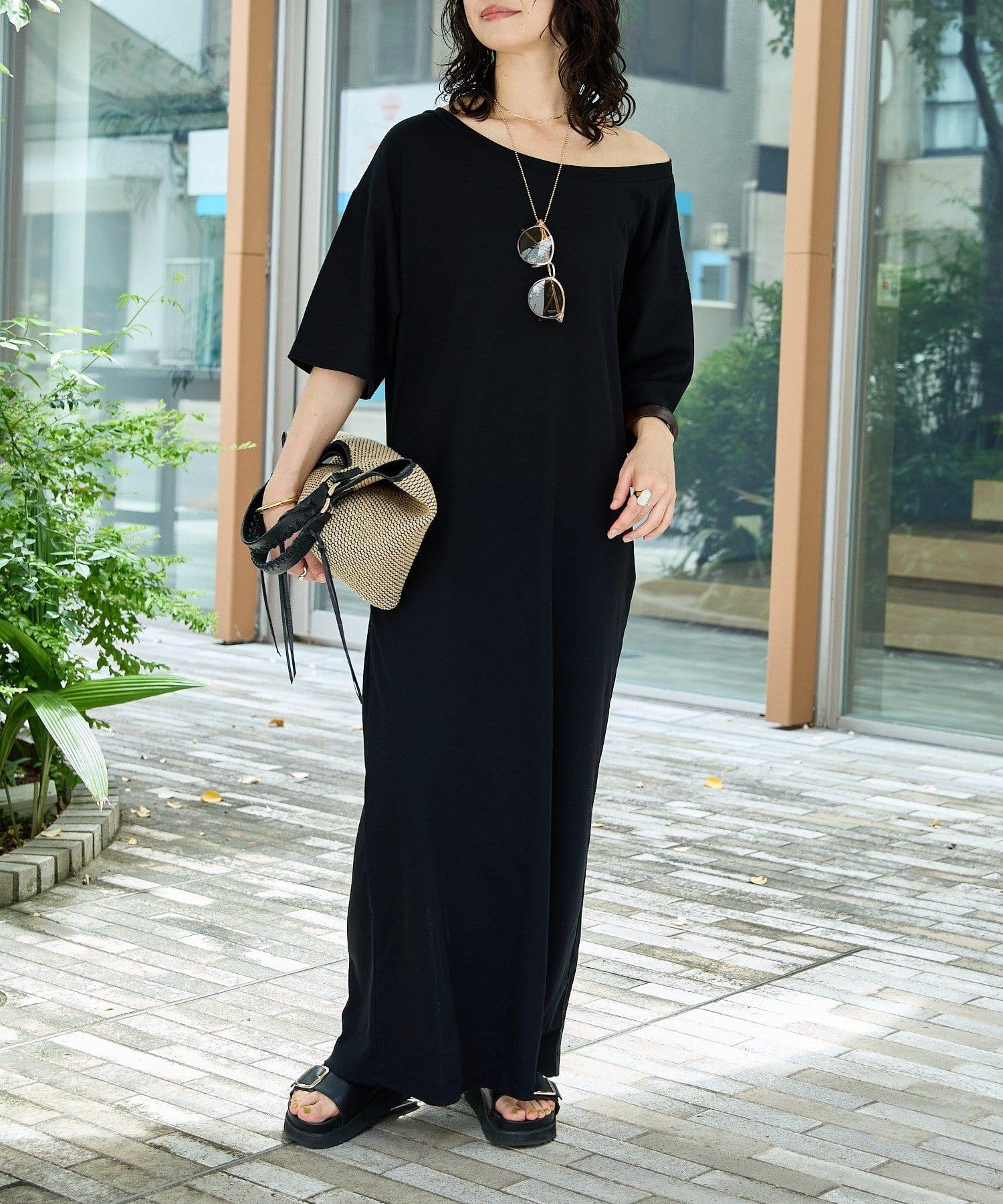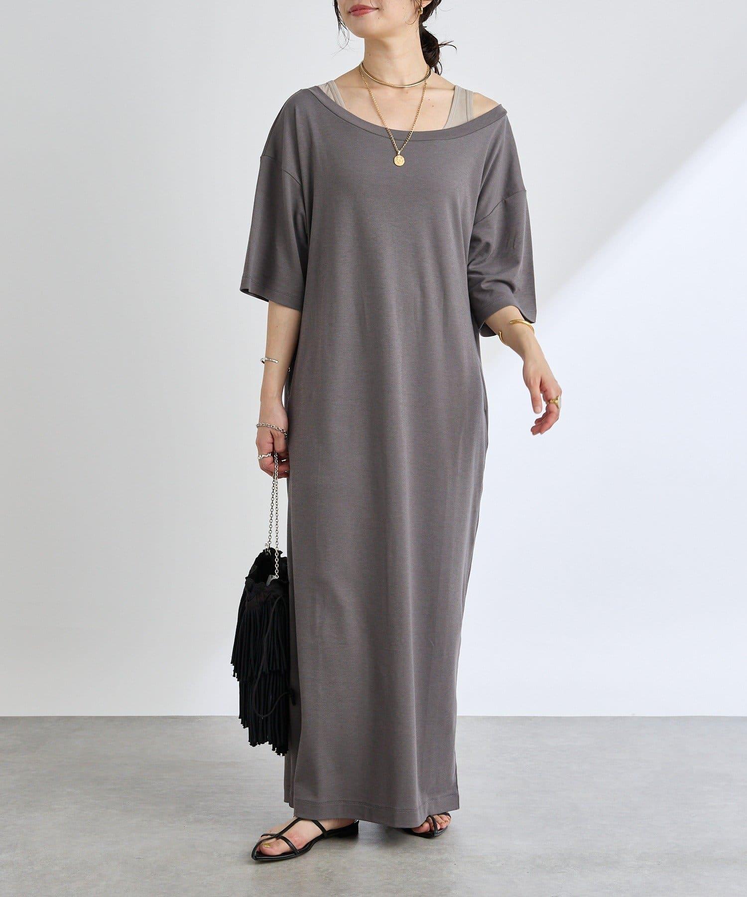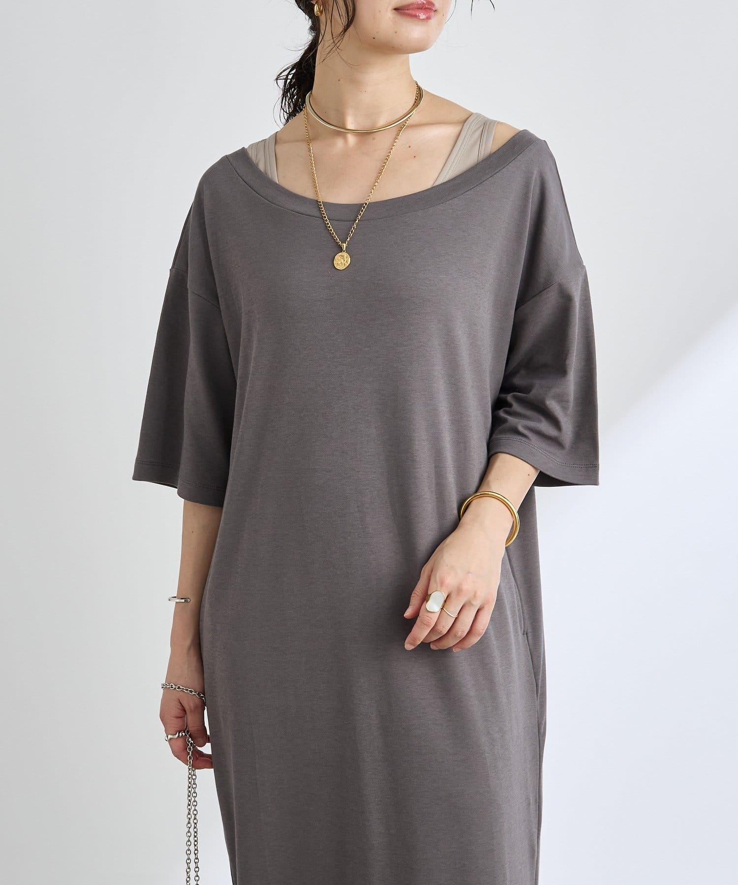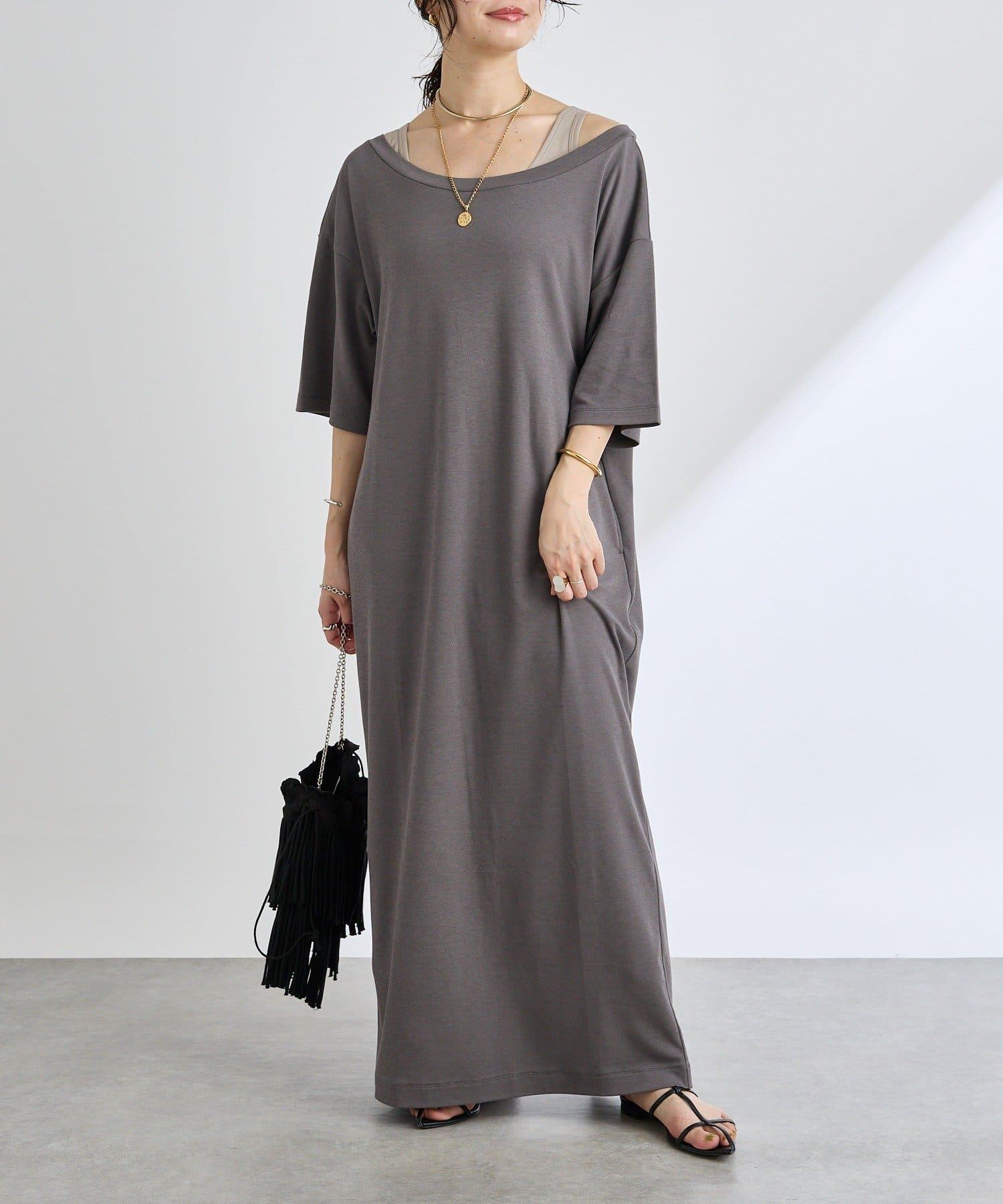 領口大而開闊,建議作為單肩連衣裙穿著。