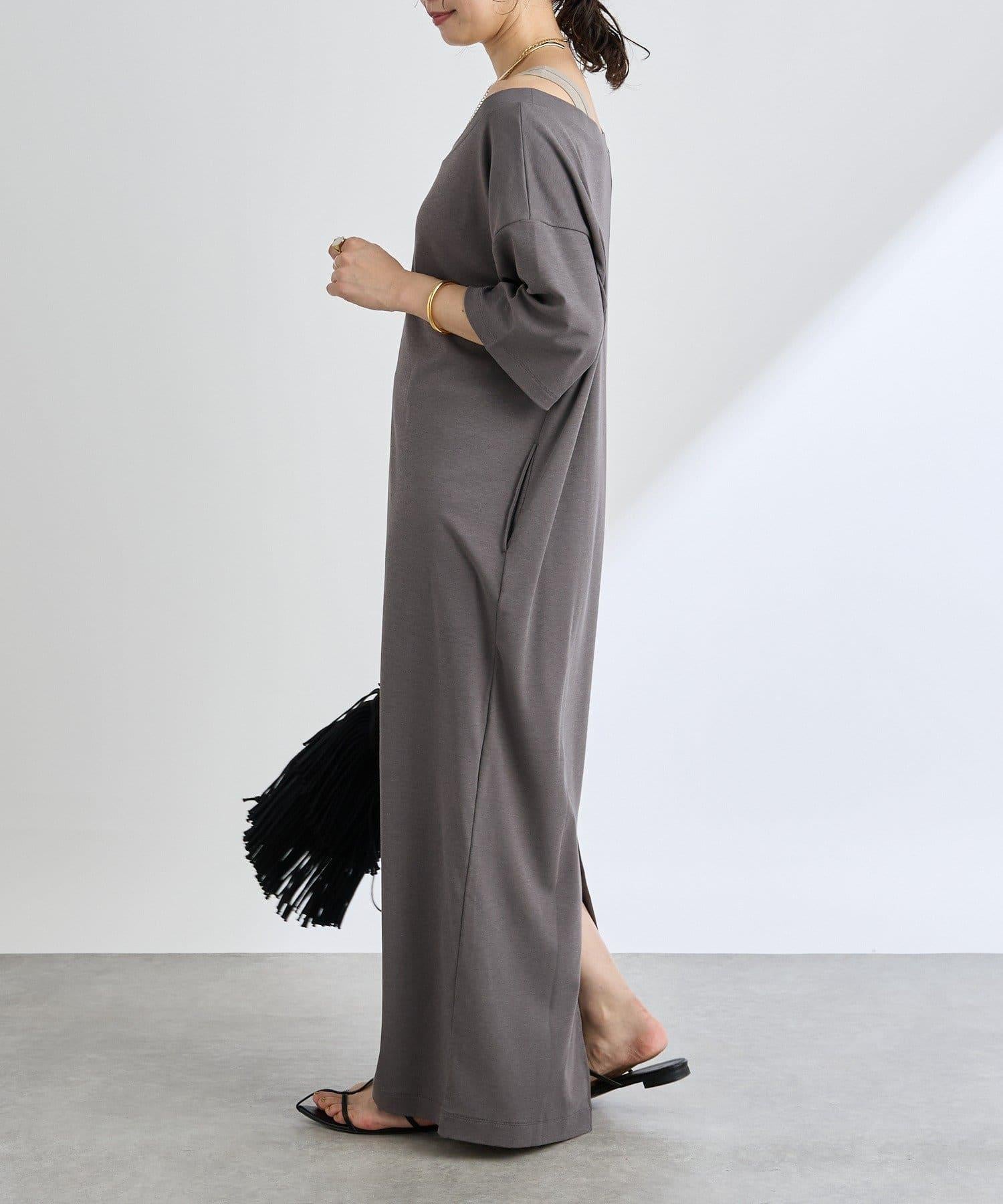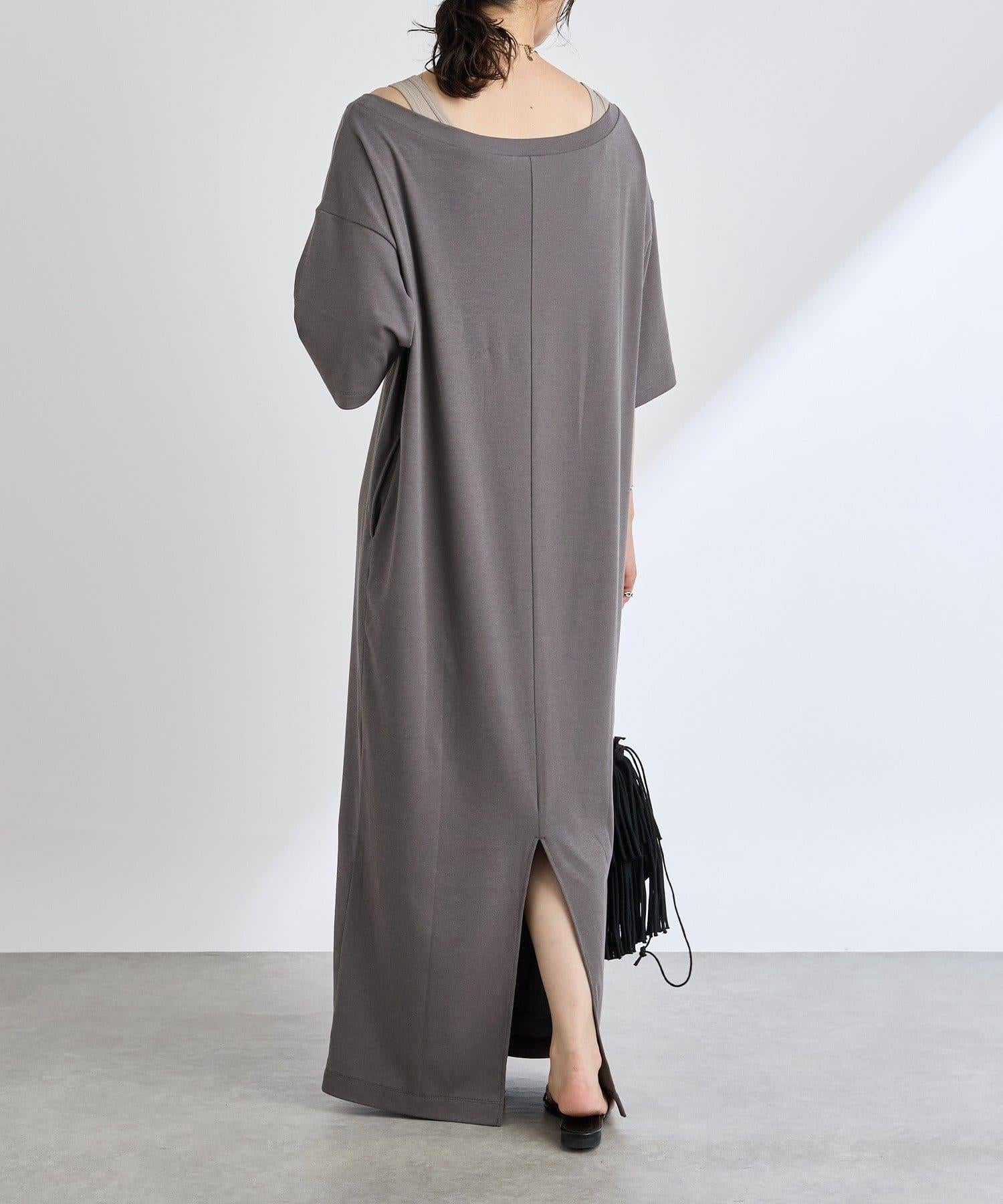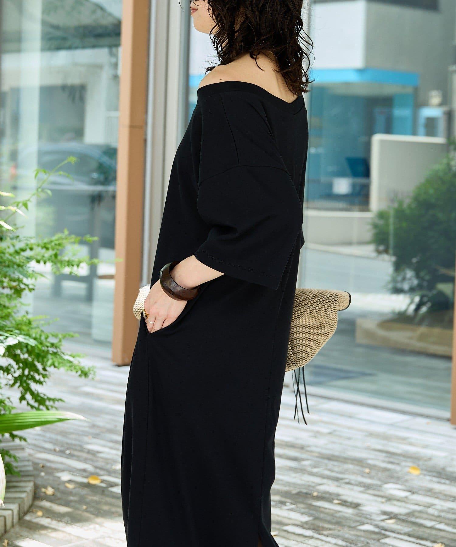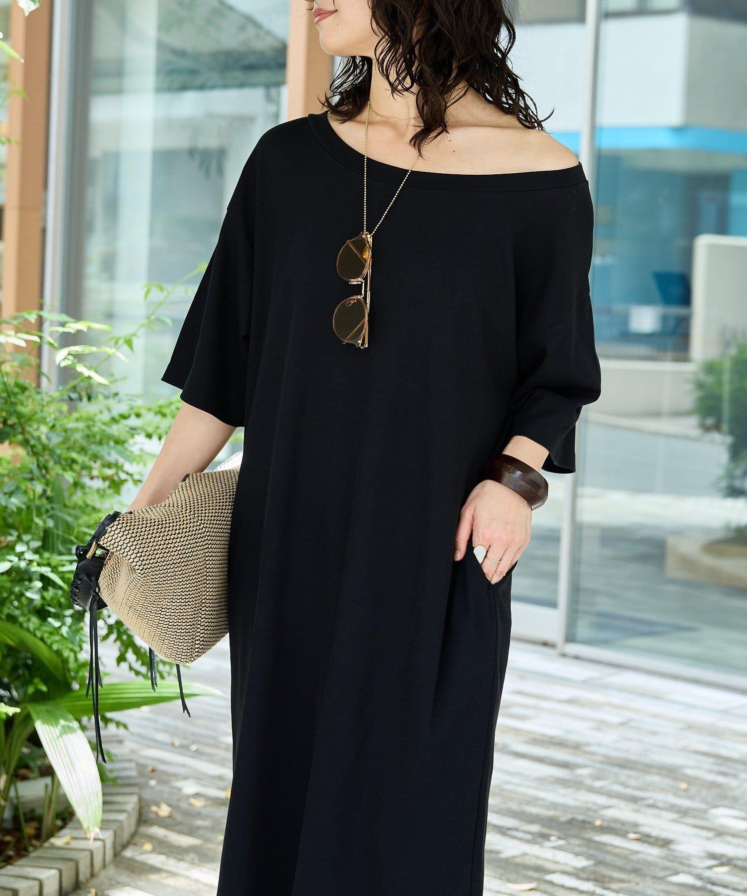 領口大而開闊,建議作為單肩連衣裙穿著。