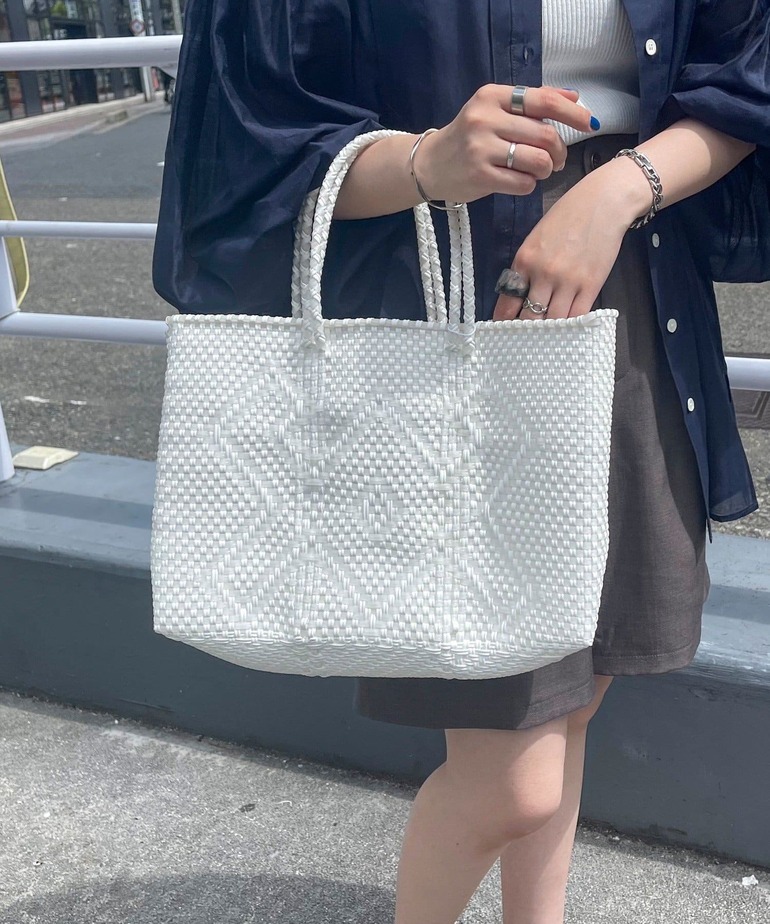 安排在城鎮使用的 Mercado 包由輕質乙烯編織而成,便於日常隨身攜帶。