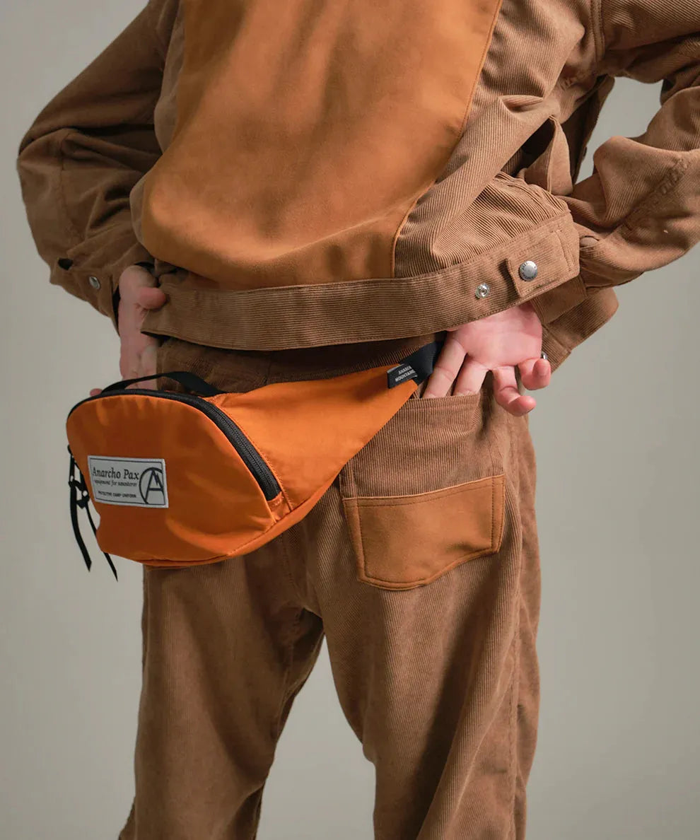 方便的豆莢形揹包,配有揹帶(腰部和肩部)和上部把手。