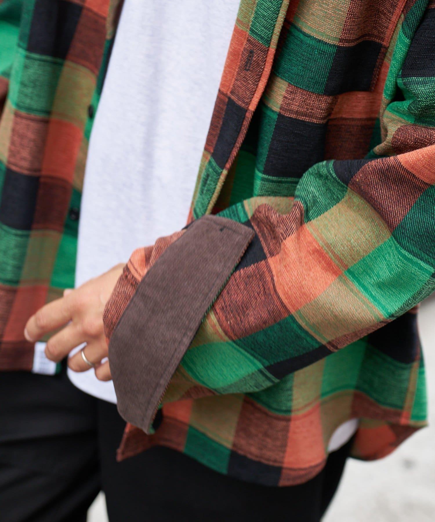 袖子背面和領子背面都換成了燈芯絨面料,摺疊起來更顯繩紋效果!