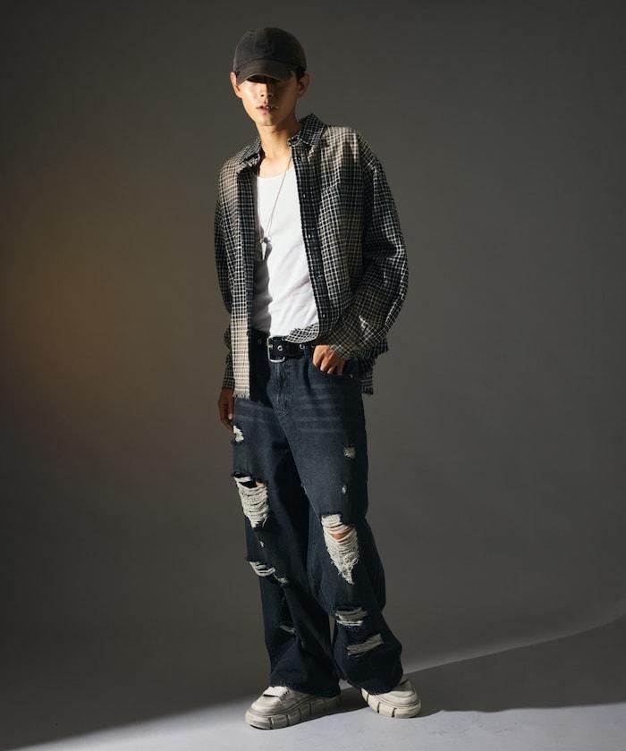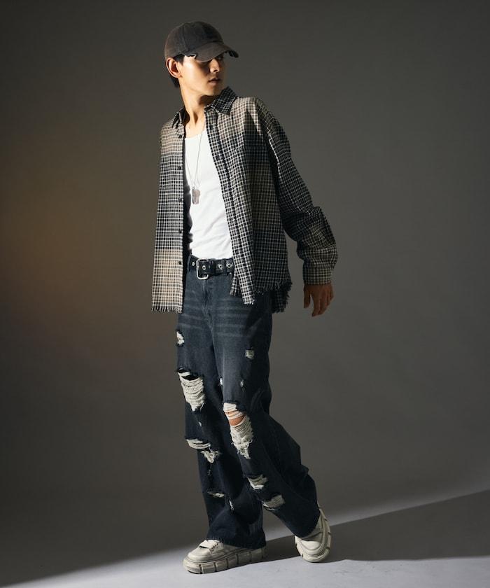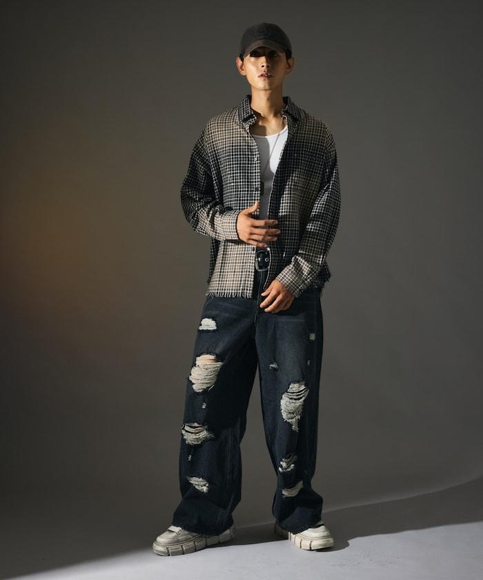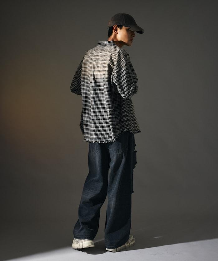 格紋法蘭絨襯衫,在破損程度、加工條件和尺寸方面注重細節。
