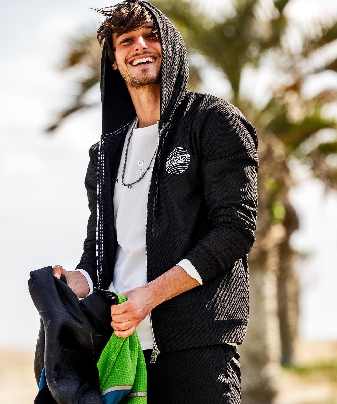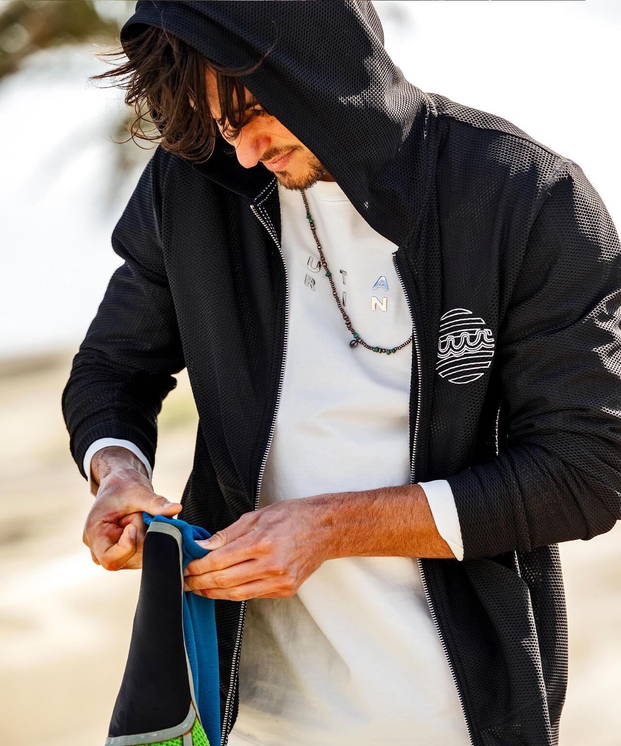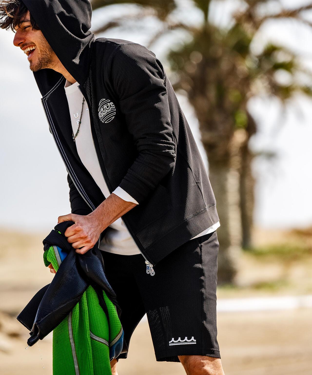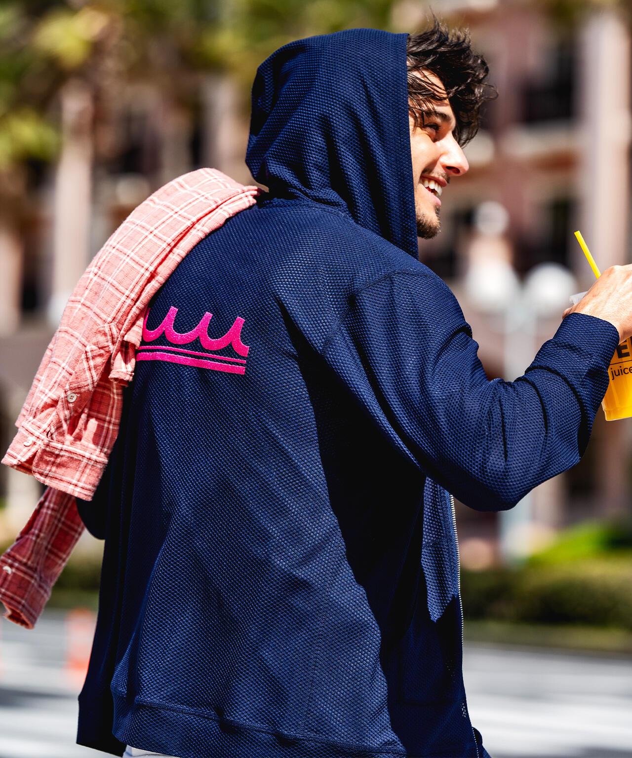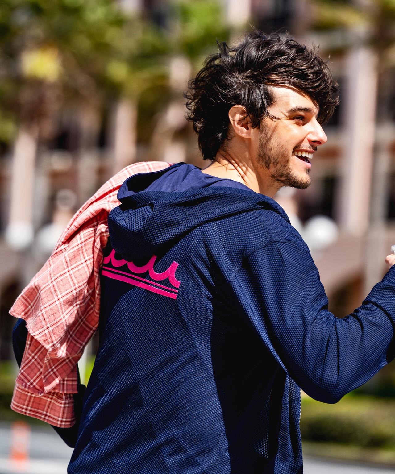 ROYAL FLASH 特別訂製產品每季的流行款式也是 25ss 的特別訂製產品。連帽衫由透氣性和伸縮性極佳的網眼面料製成。網眼的透明度給人一種涼爽的感覺,面料簡潔而不失運動感。胸前繡有 WAVE 標誌,連帽衫背面也繡有 WAVE 品牌圖標,設計獨特。即使摺疊成小件也不易起皺,建議作為旅行伴侶穿著!可與同款短褲(貨號:787-5113319)搭配穿著。既可作為套裝穿著,也可作為日常單品穿著。