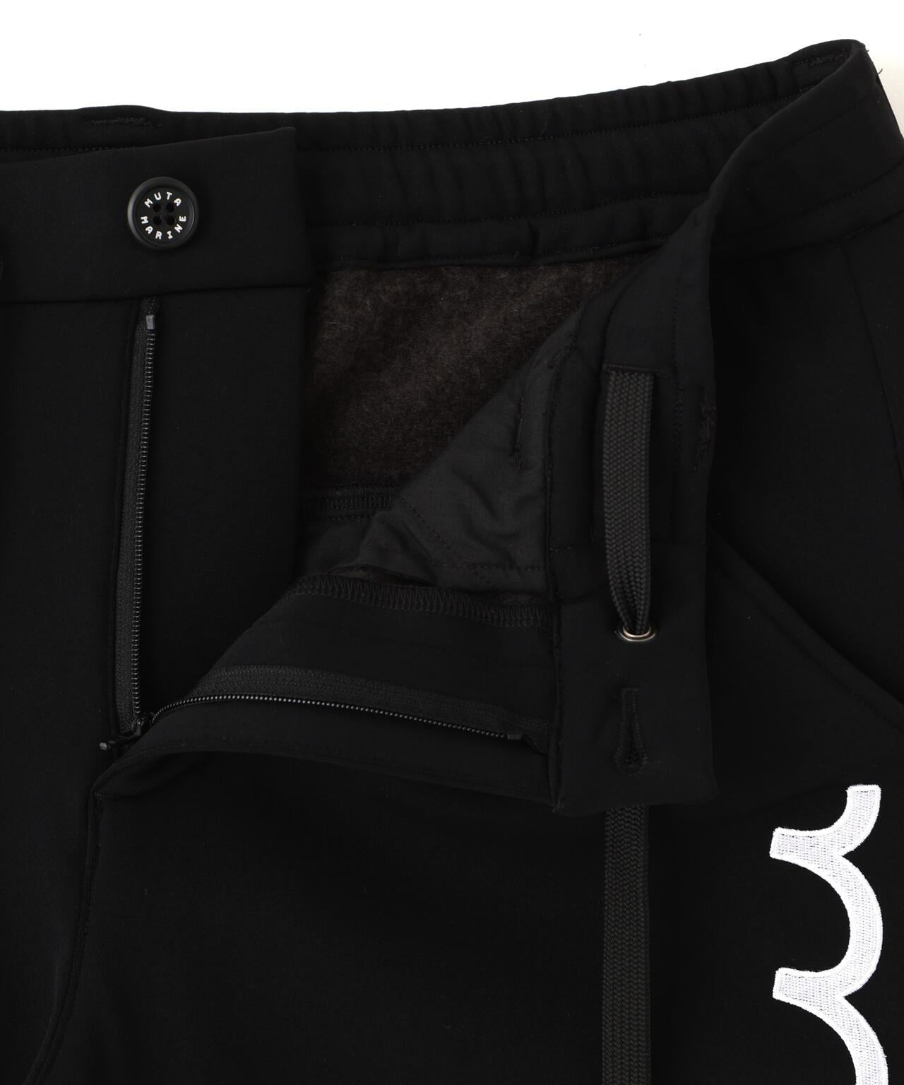 ROYAL FLASH 特別訂製產品這款產品由一種名為 Heat Performa Plus 的功能性材料製成,可 360° 全方位伸展,穿著舒適。反面具有溫暖的拉絨質感,即使在冬天也能穿著保暖。左大腿處繡有 WAVE 標誌。膝蓋後側繡有 MUTA MARIN 標誌,分為左右兩側。後口袋上有 WAVE LOGO 硅膠貼。設計感不強,但以刺繡代替印花,有高級感。可搭配同材質罩衫(貨號:787-5231382)作為套裝穿著。