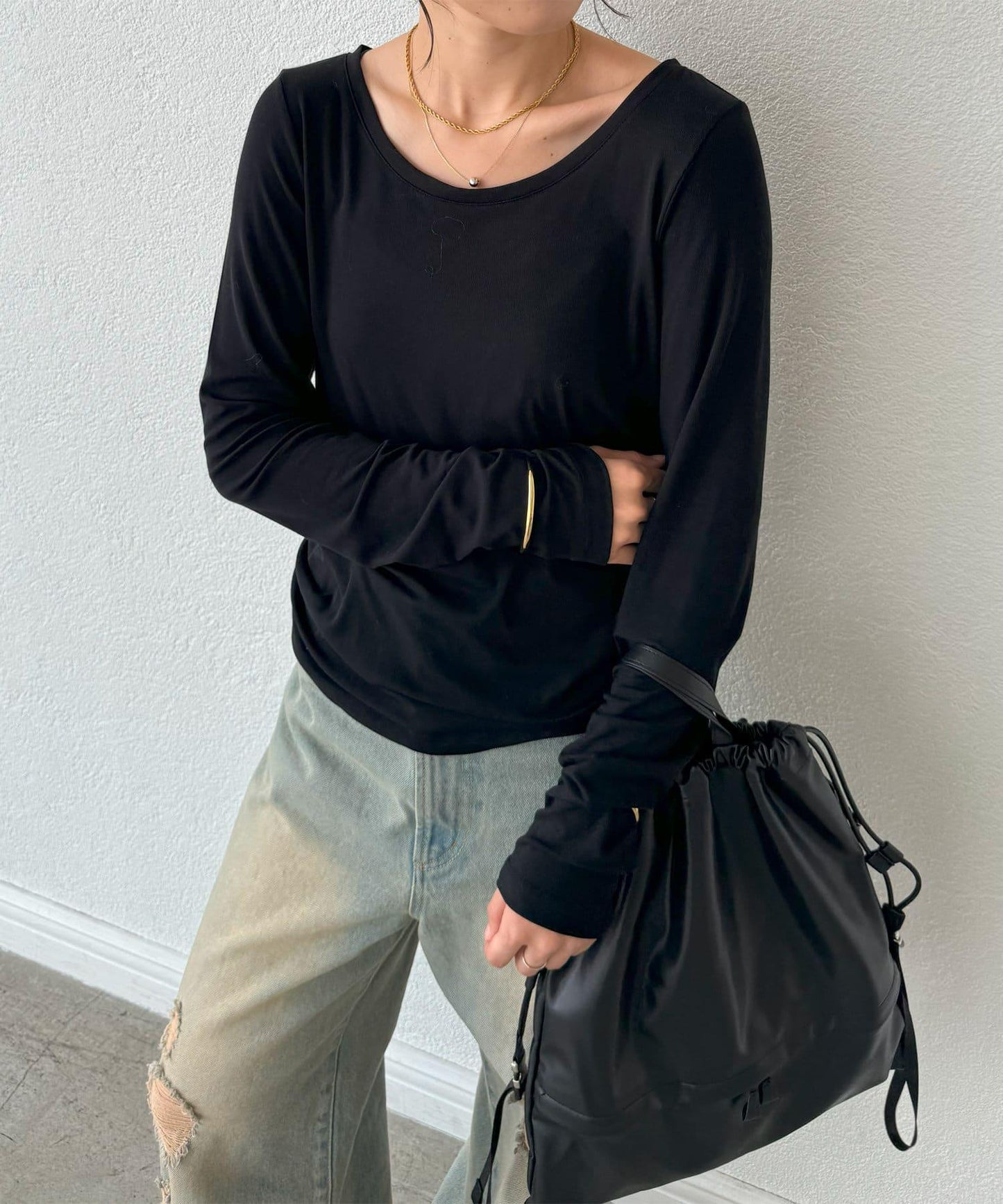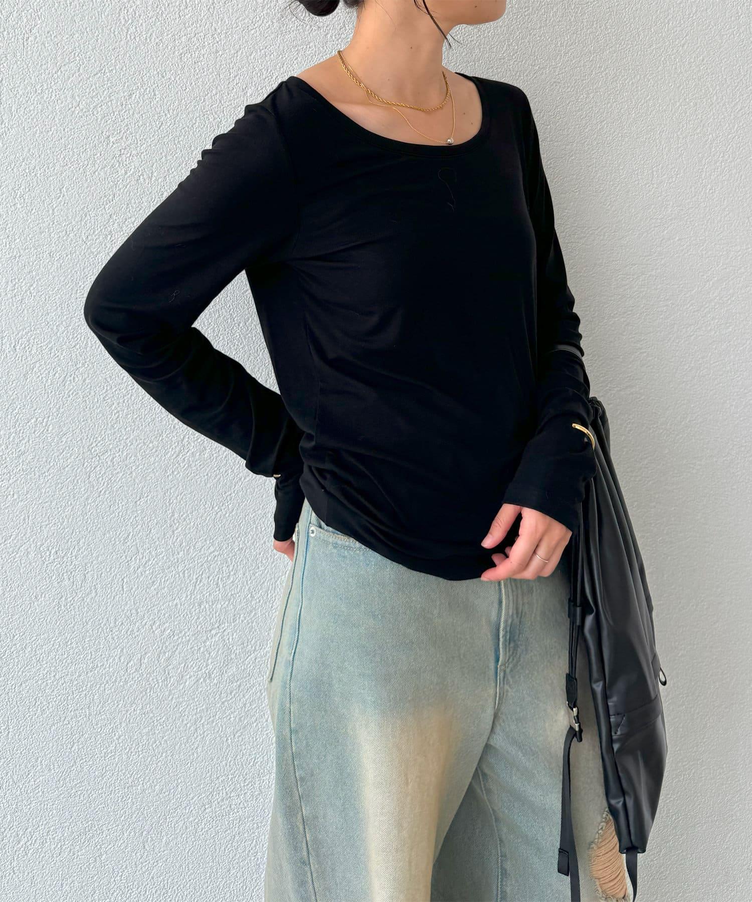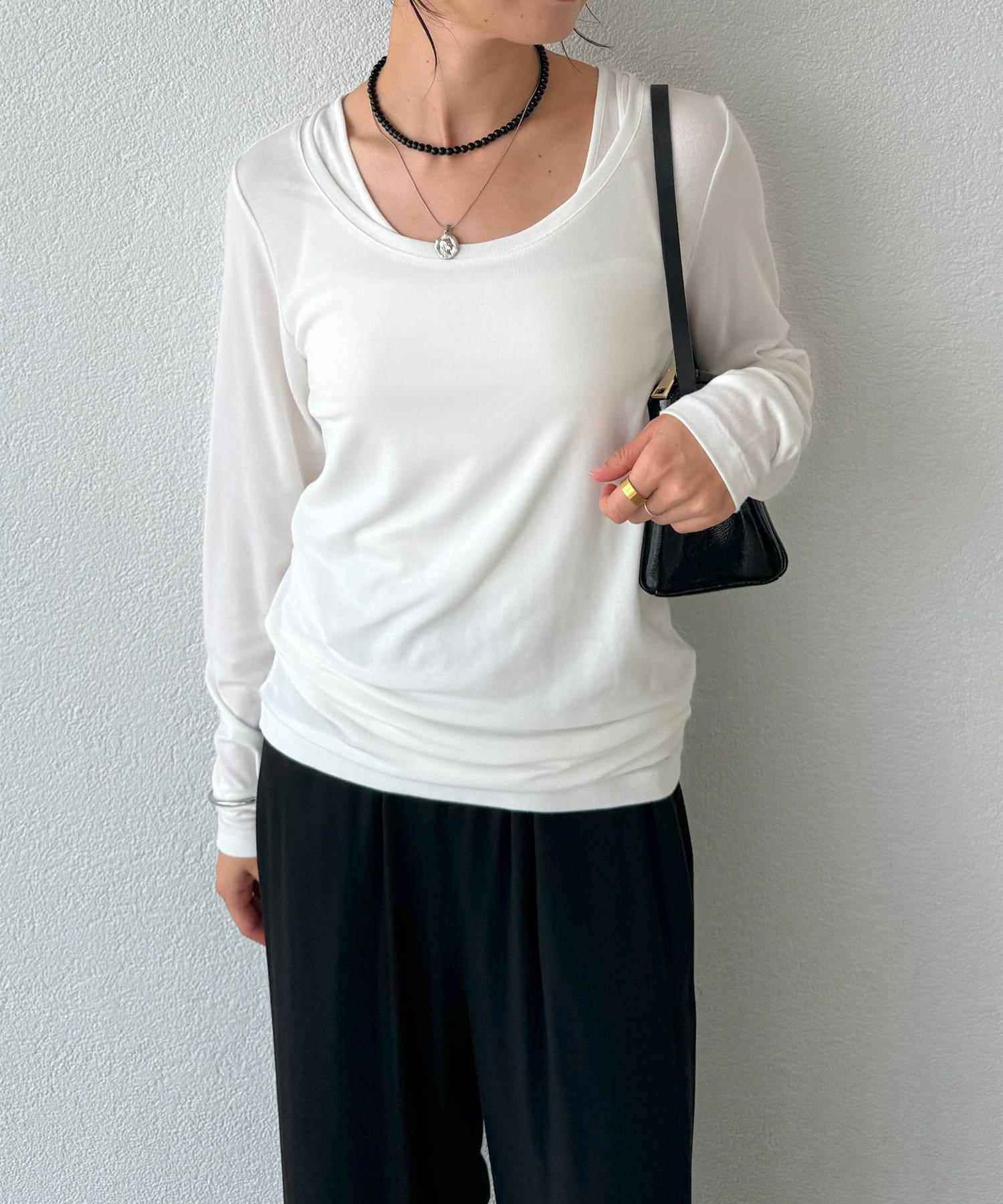 長袖長袖。 這是一款長款 T 恤,既可以單獨穿著,也可以作為外套和針織衫的內搭。