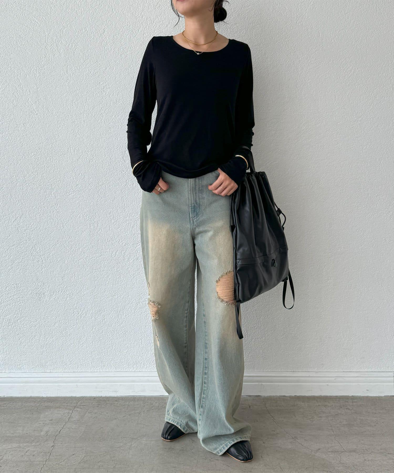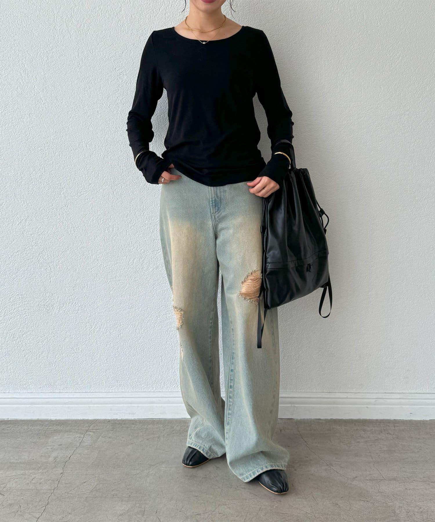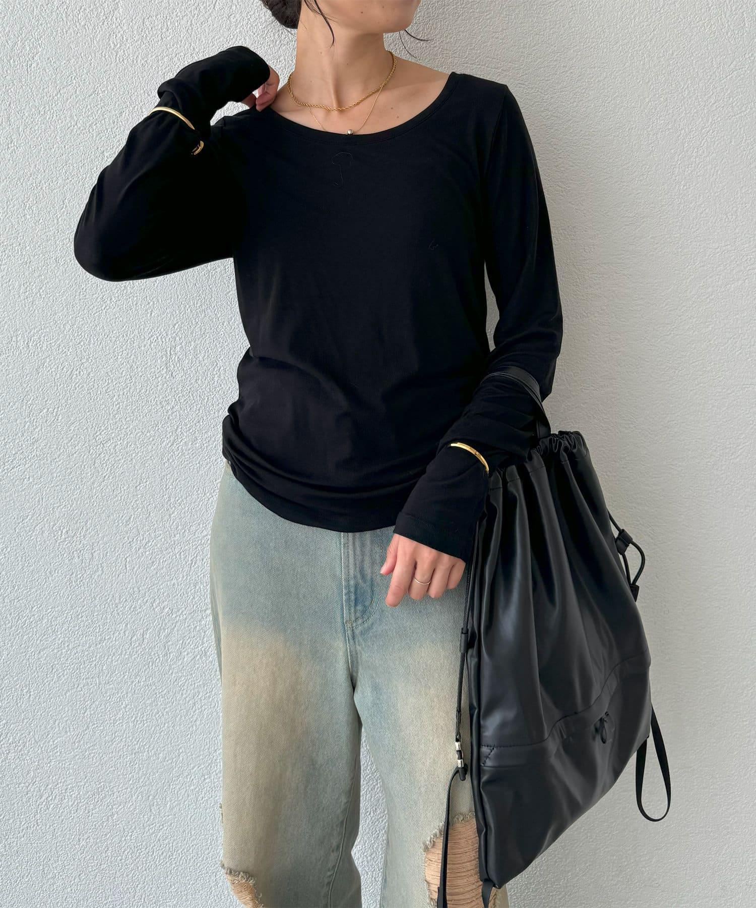 長袖長袖。 這是一款長款 T 恤,既可以單獨穿著,也可以作為外套和針織衫的內搭。