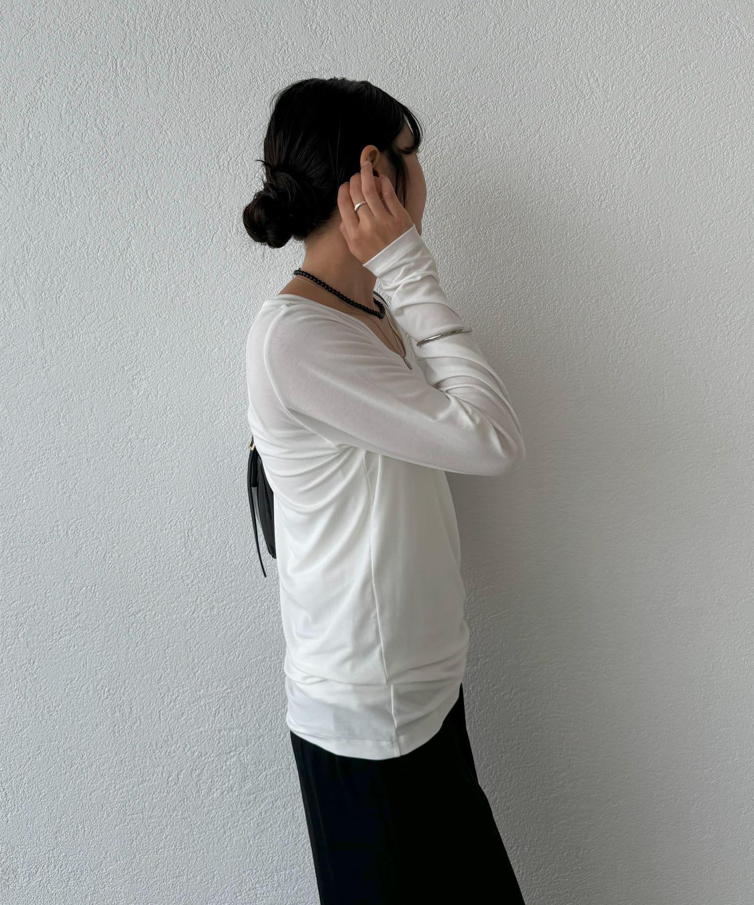 長款 T 恤由桉樹再生纖維 Lyocell 製成,手感柔軟光滑。