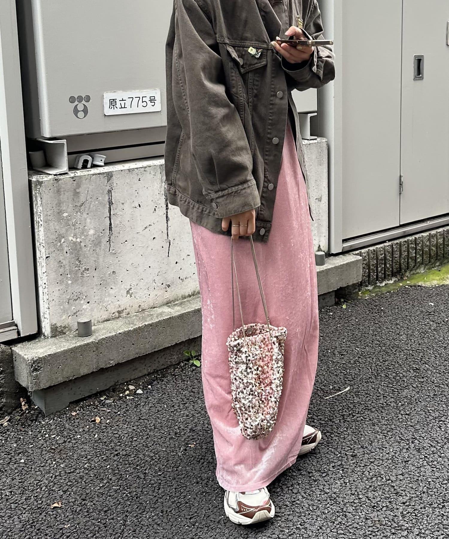 這款絲絨短裙採用閃亮的絲絨面料製成,每走一步都閃閃發光。