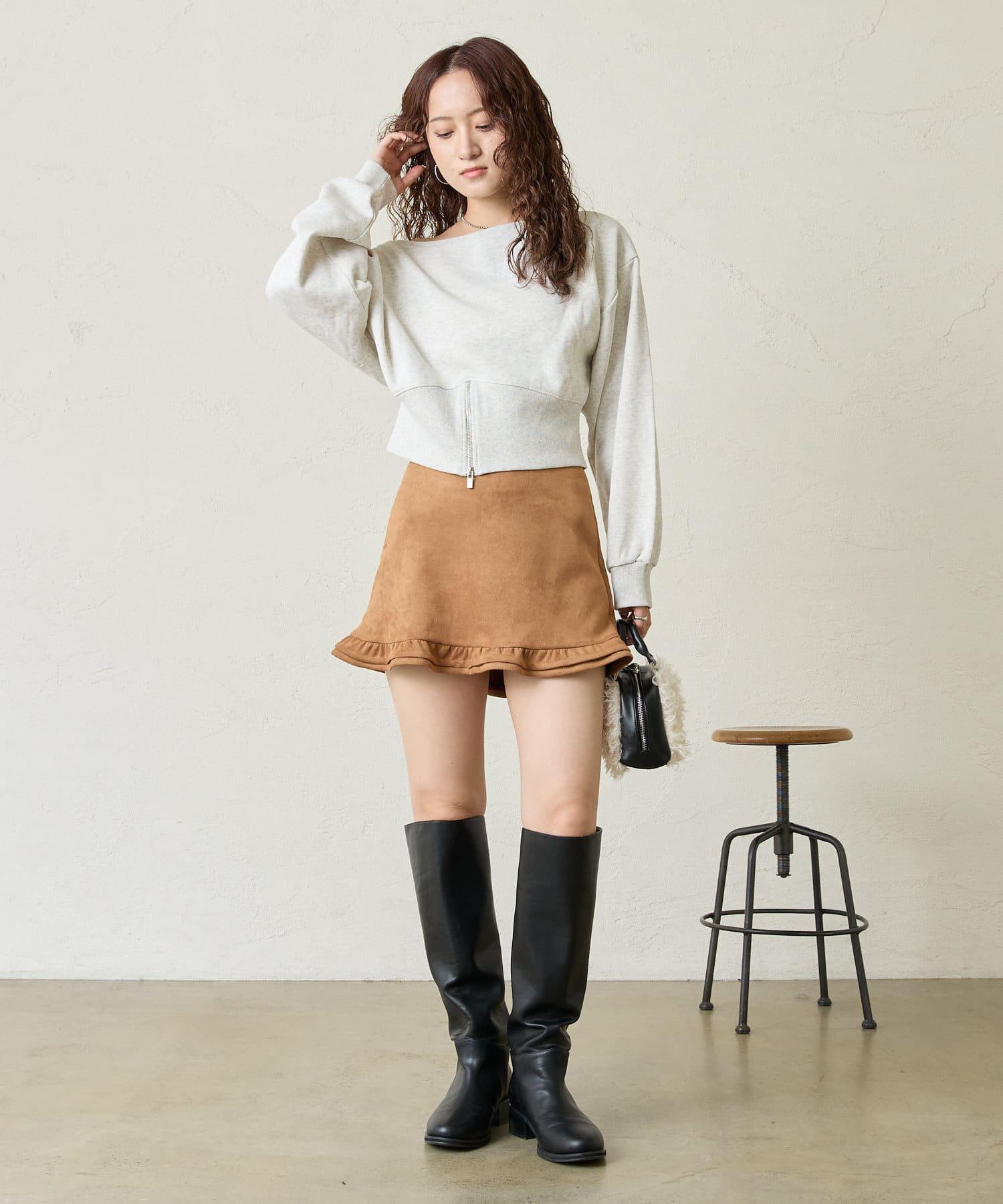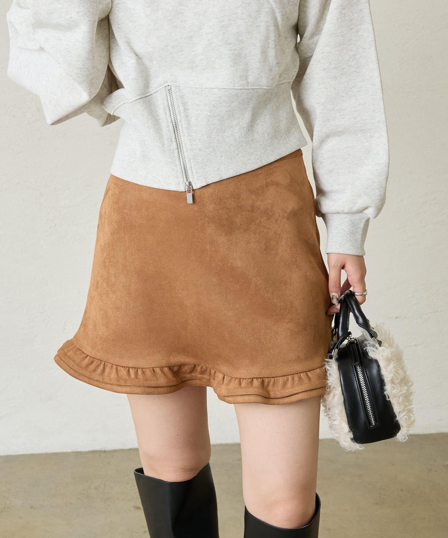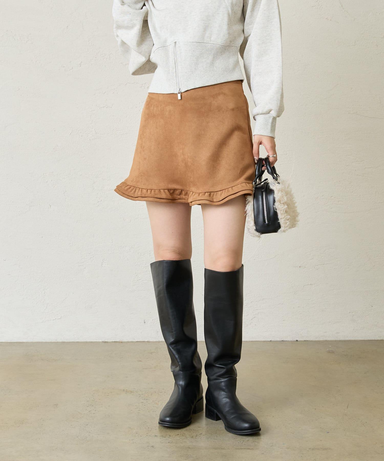 當季流行的仿麂皮絨迷你裙褲,輪廓優美!