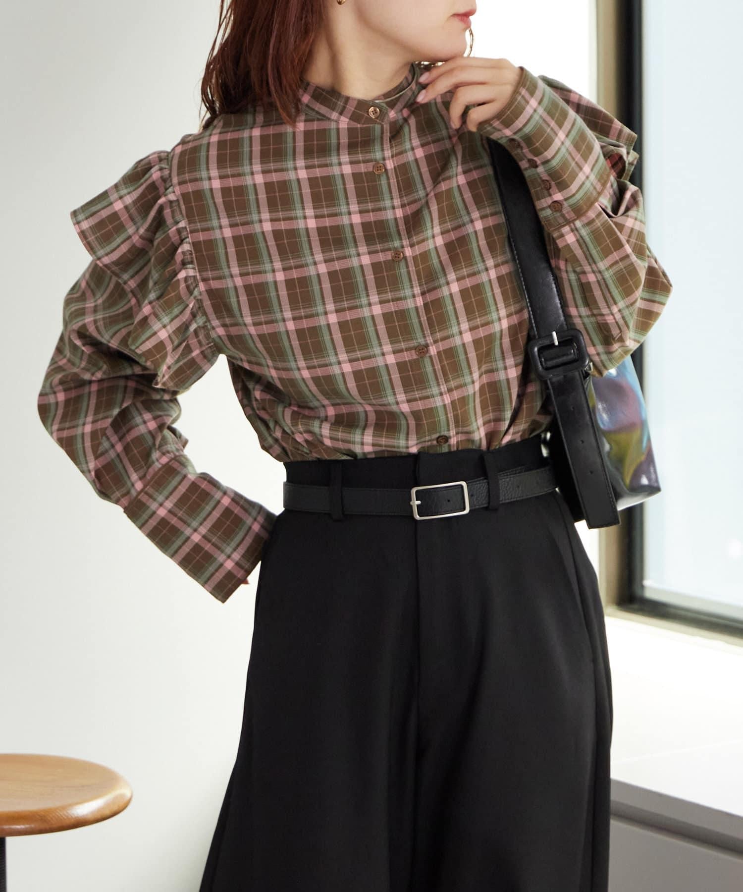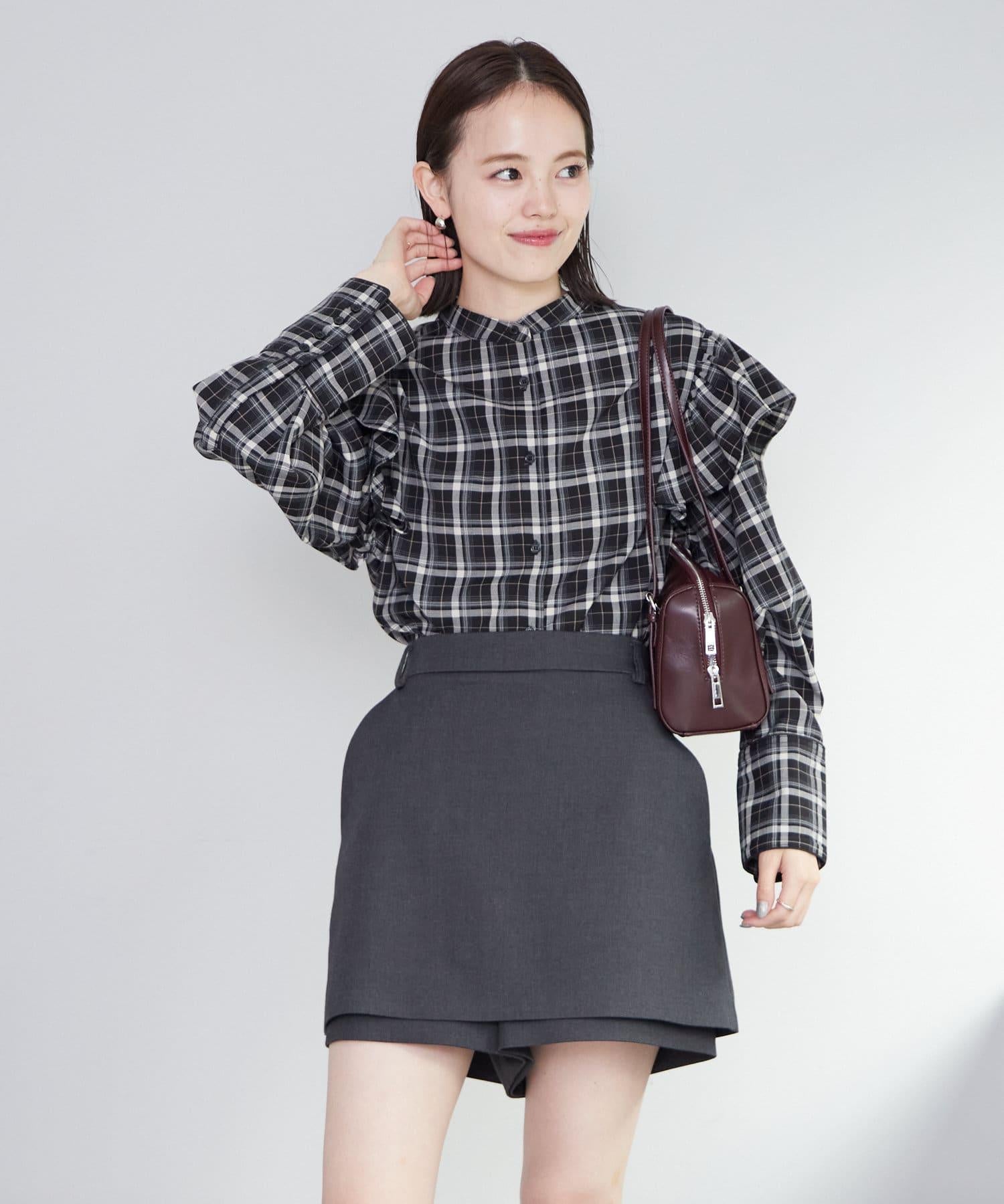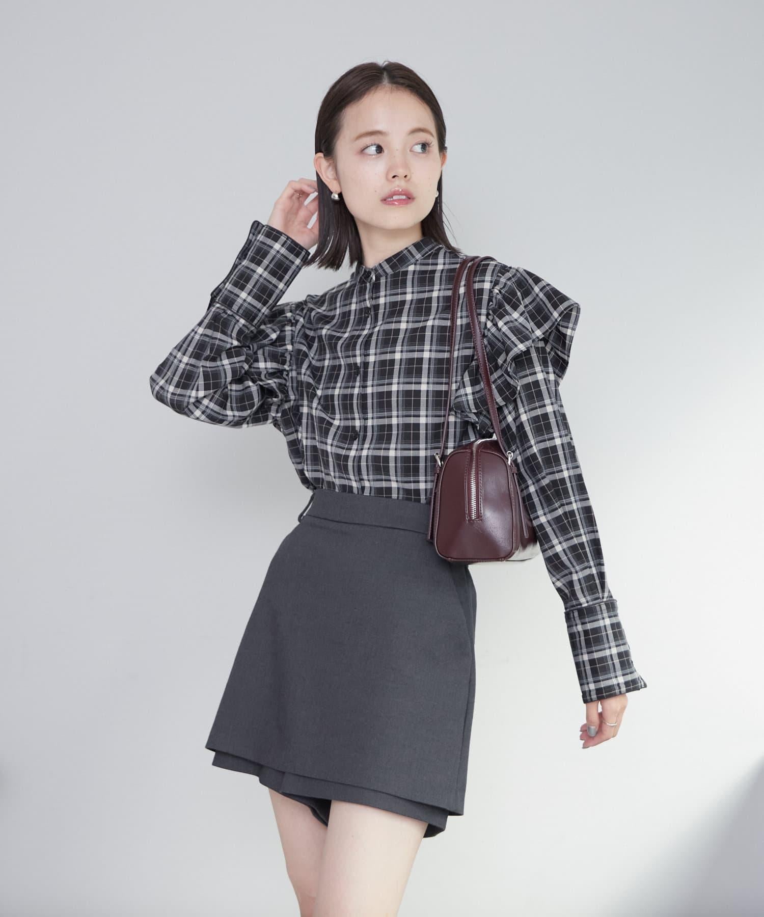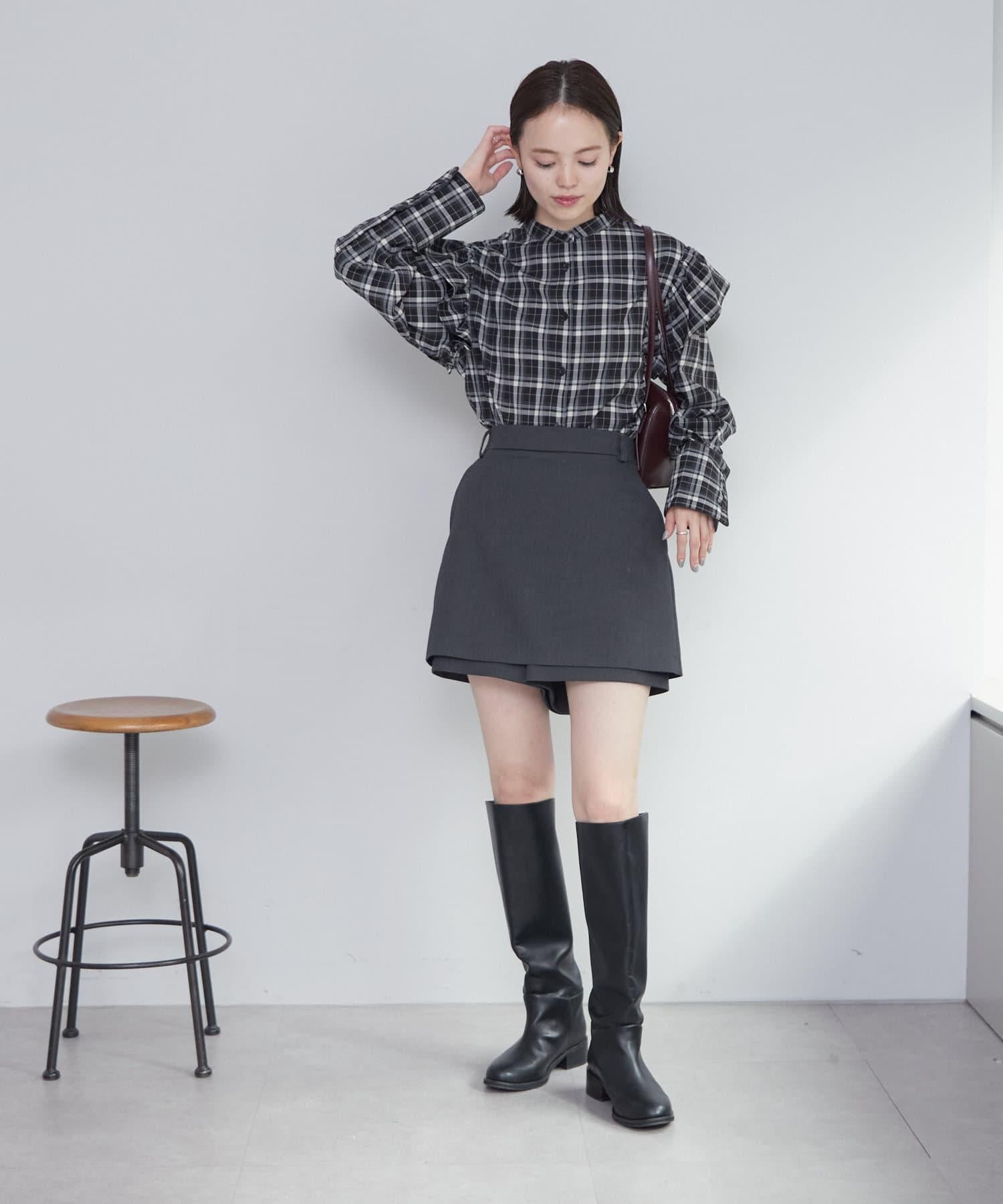 這款上衣的棋盤格圖案色彩平和,充滿季節感。