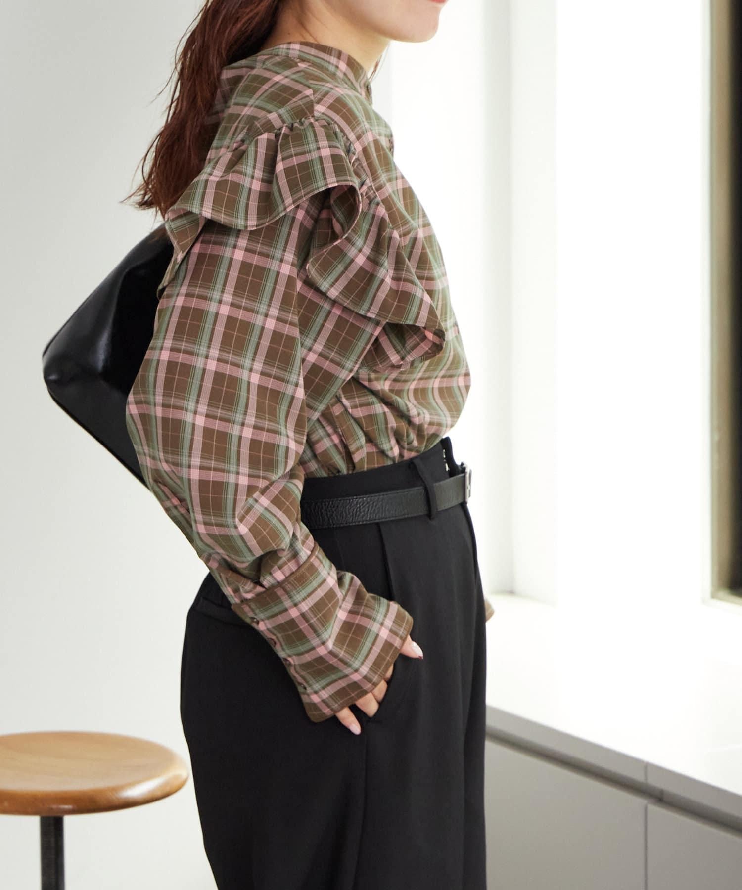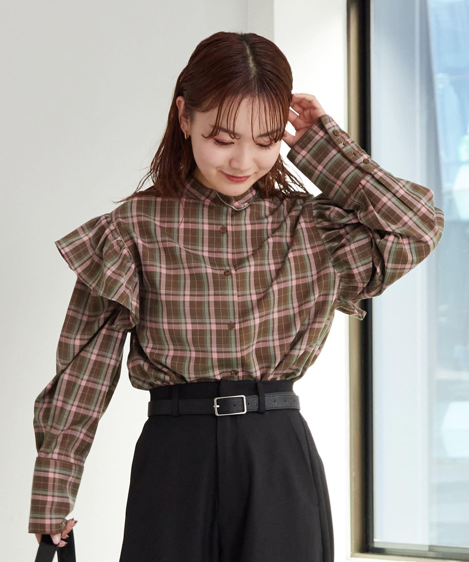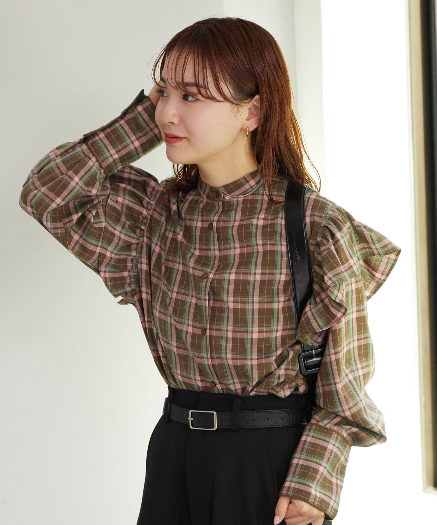 這款上衣的棋盤格圖案色彩平和,充滿季節感。