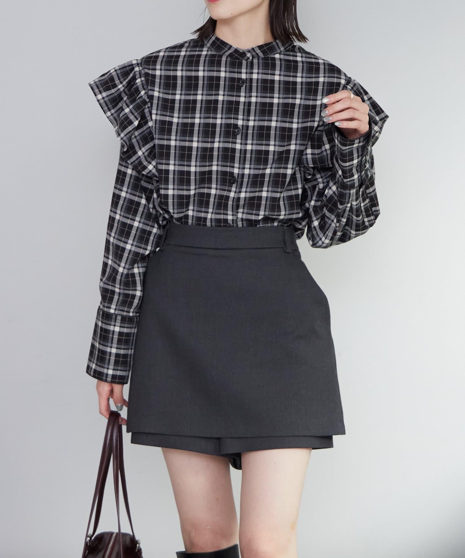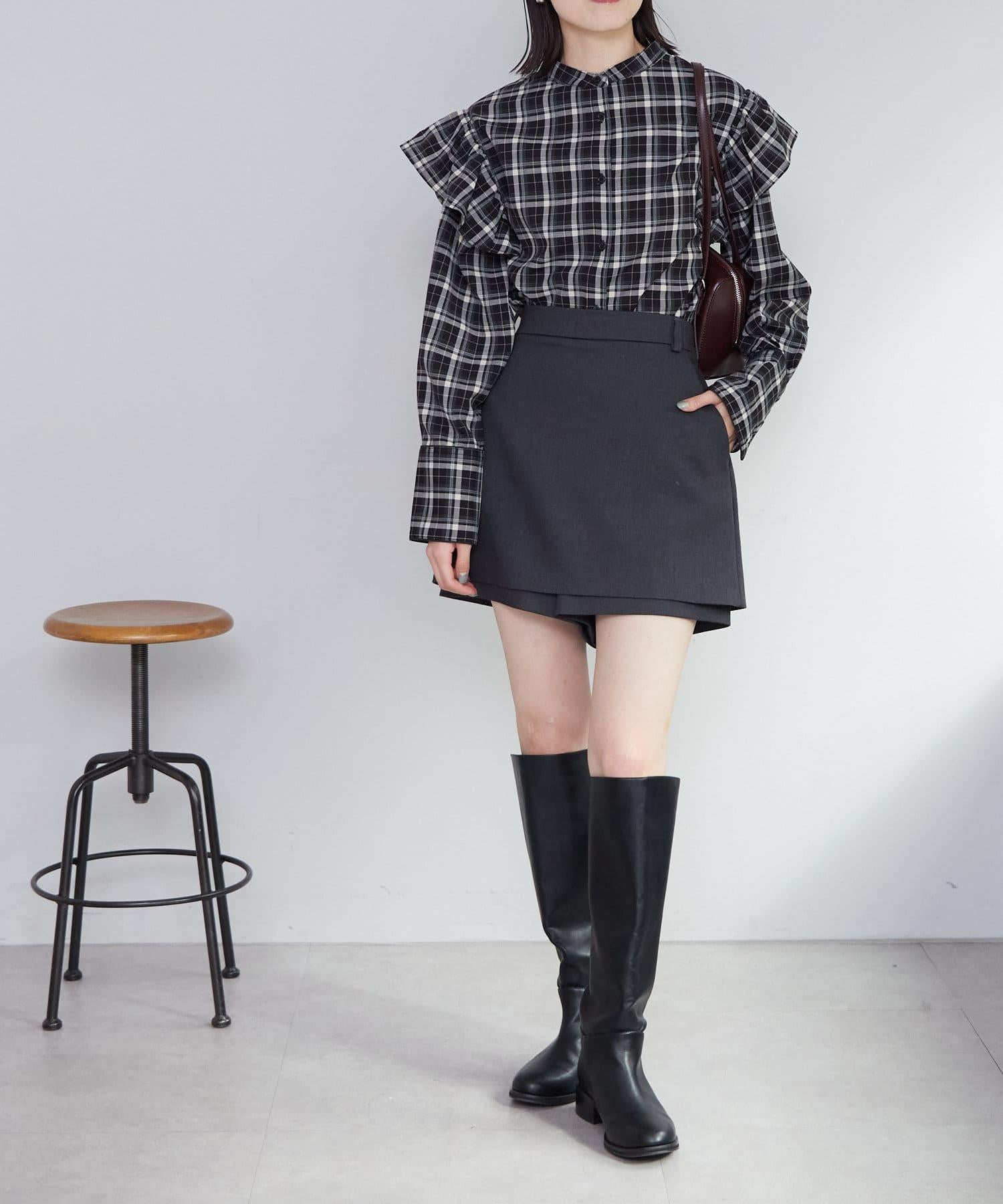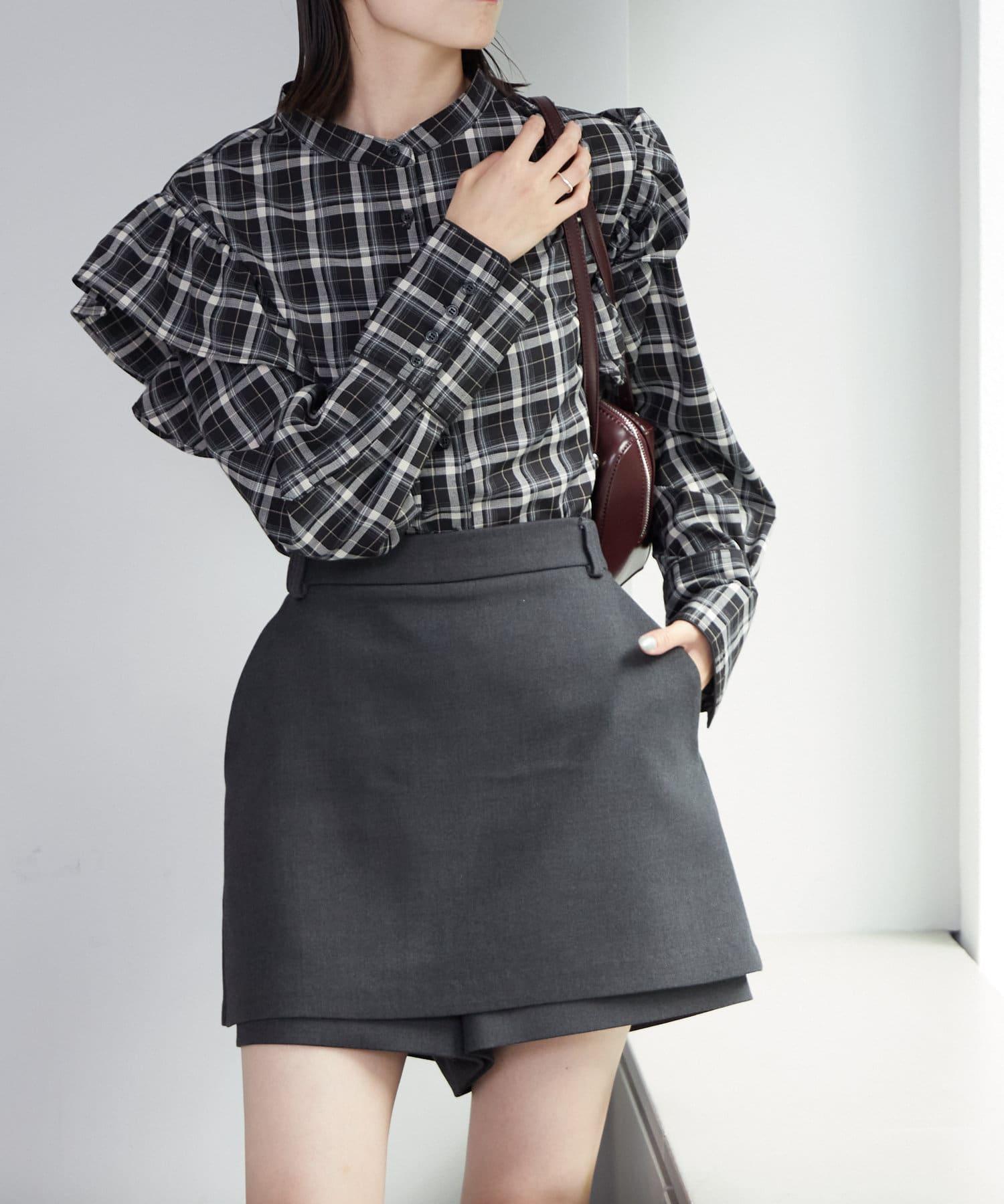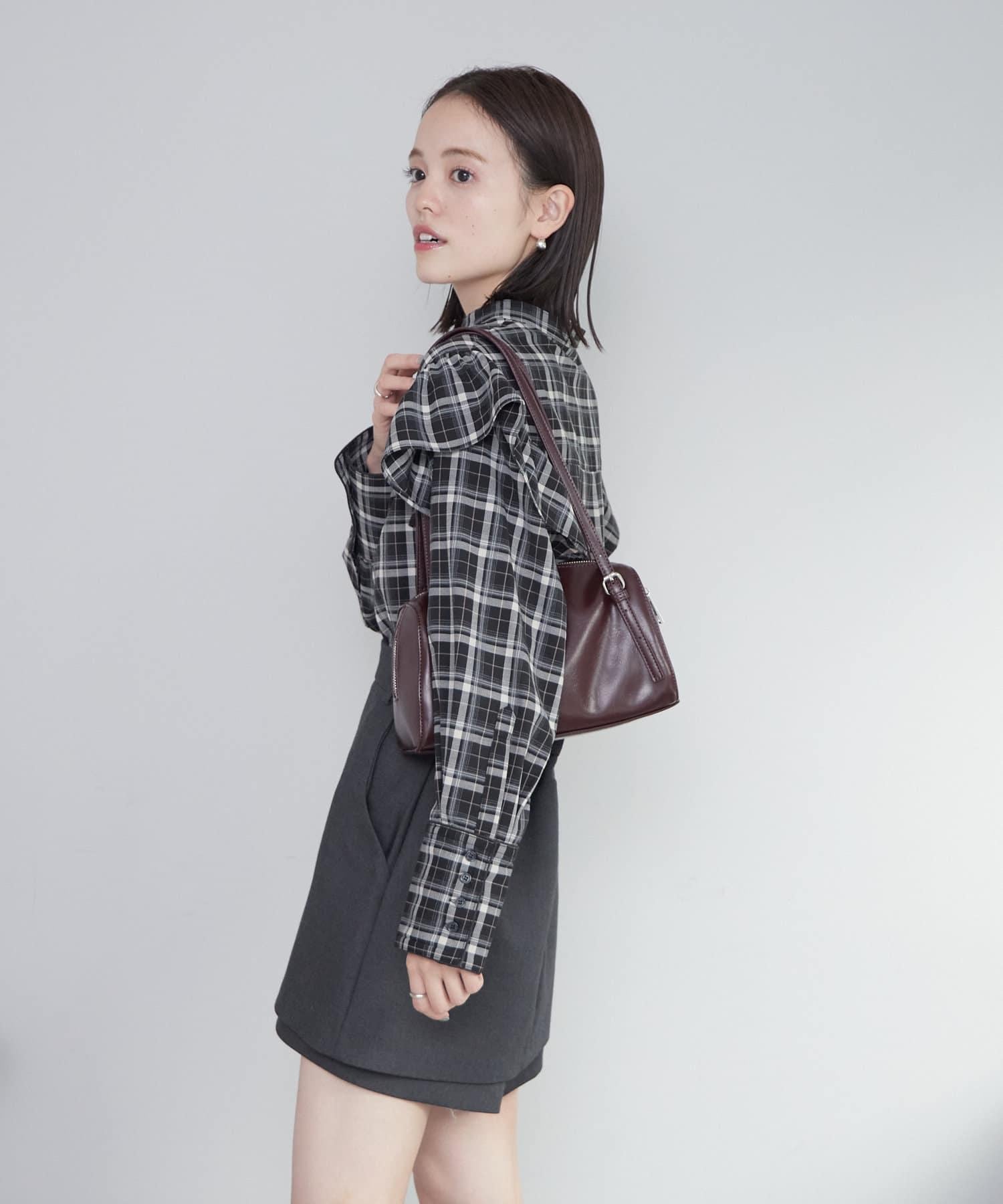這款上衣的棋盤格圖案色彩平和,充滿季節感。