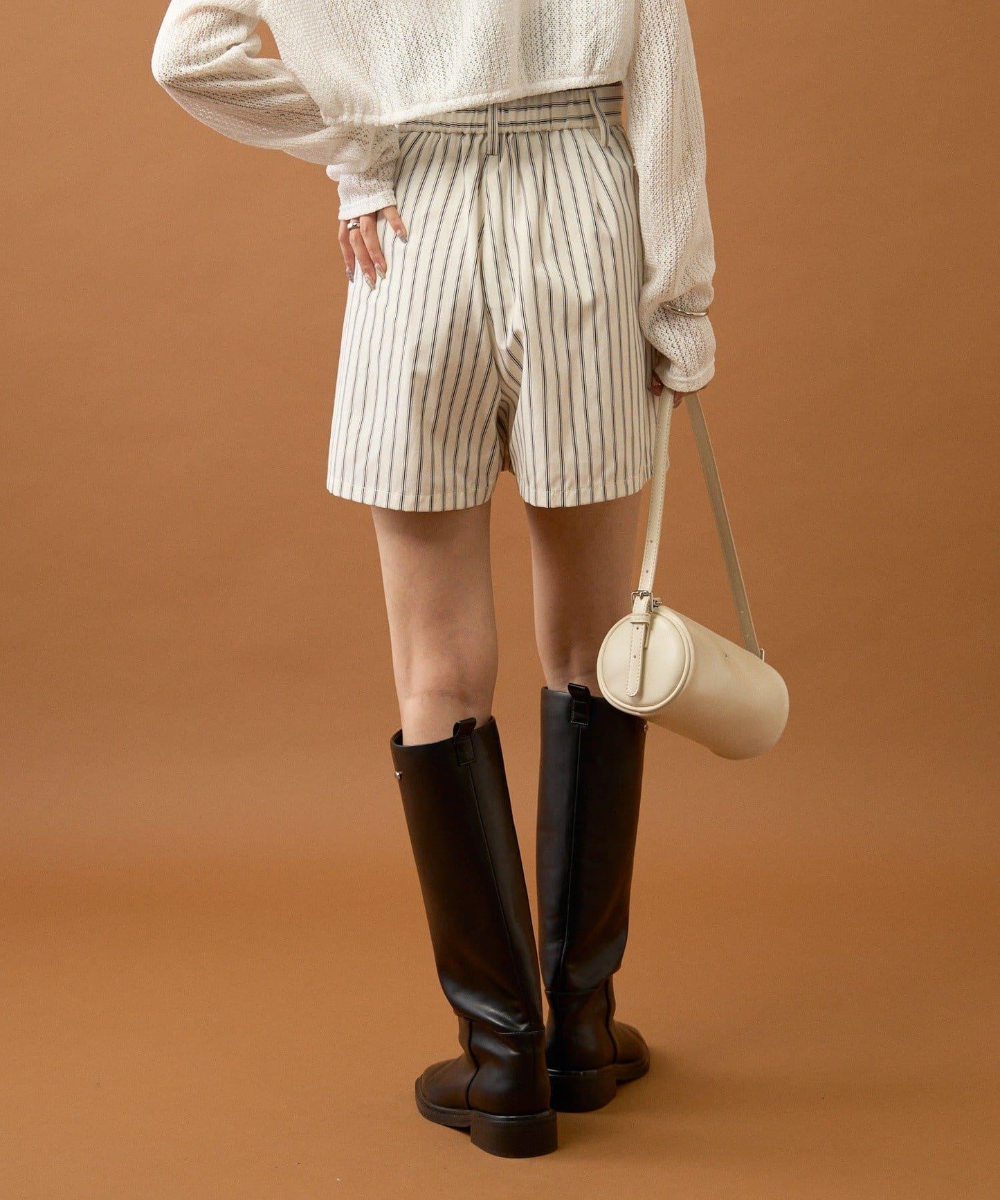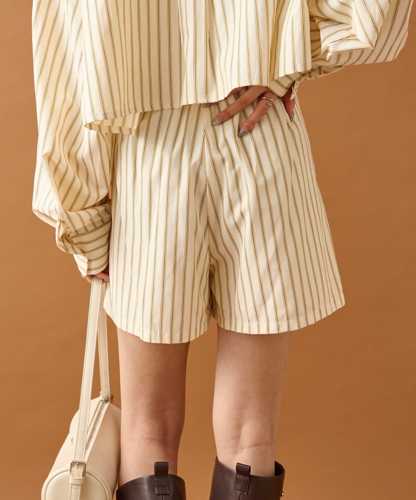 粗獷可愛的條紋短褲,給人精緻的印象!