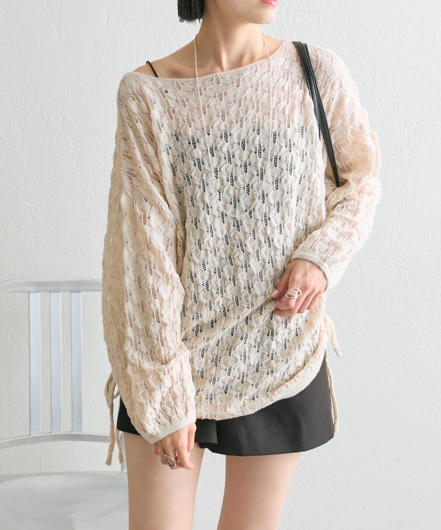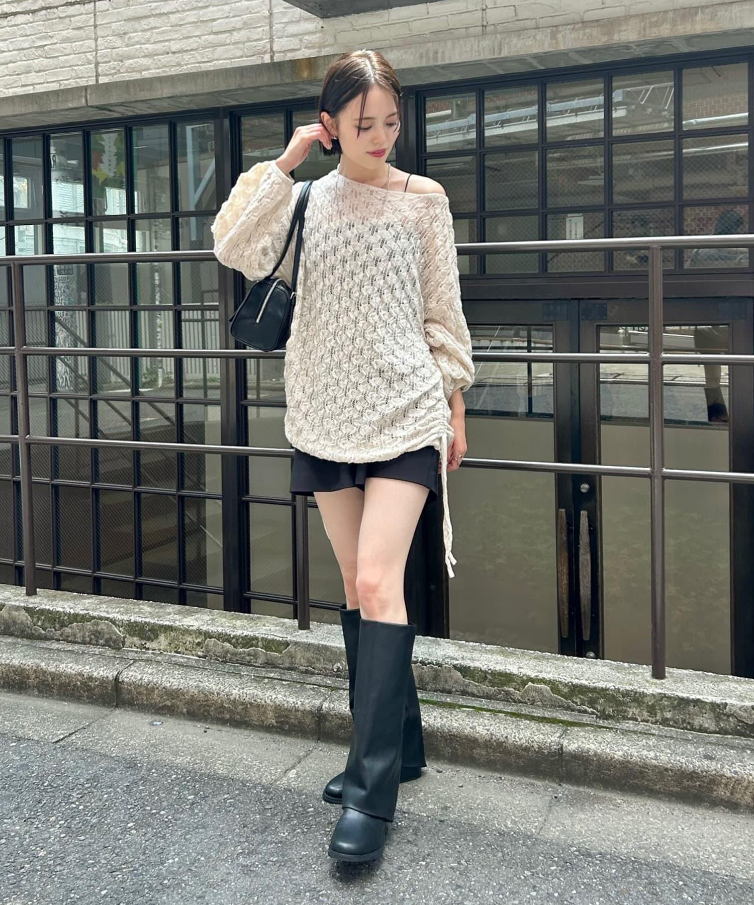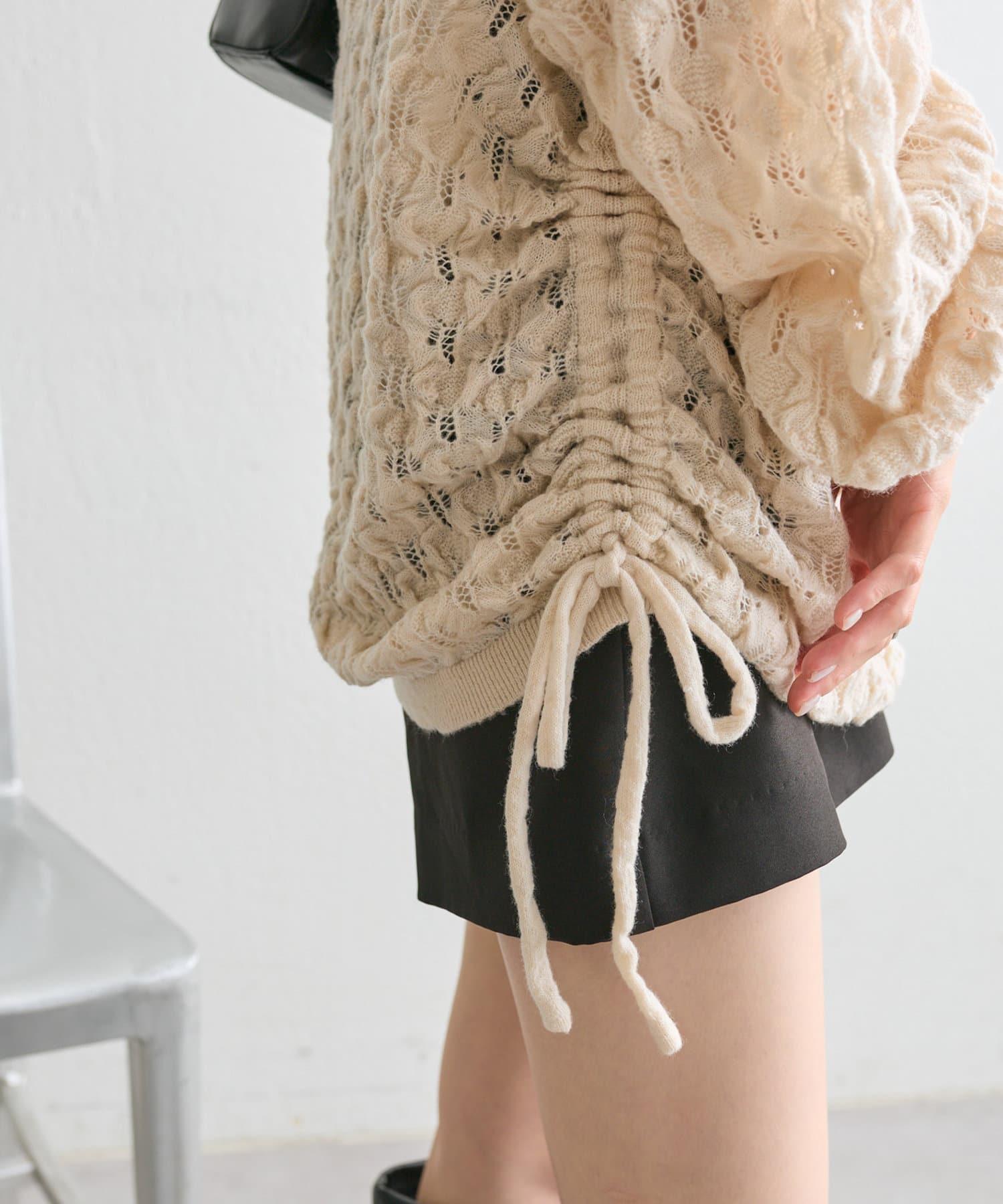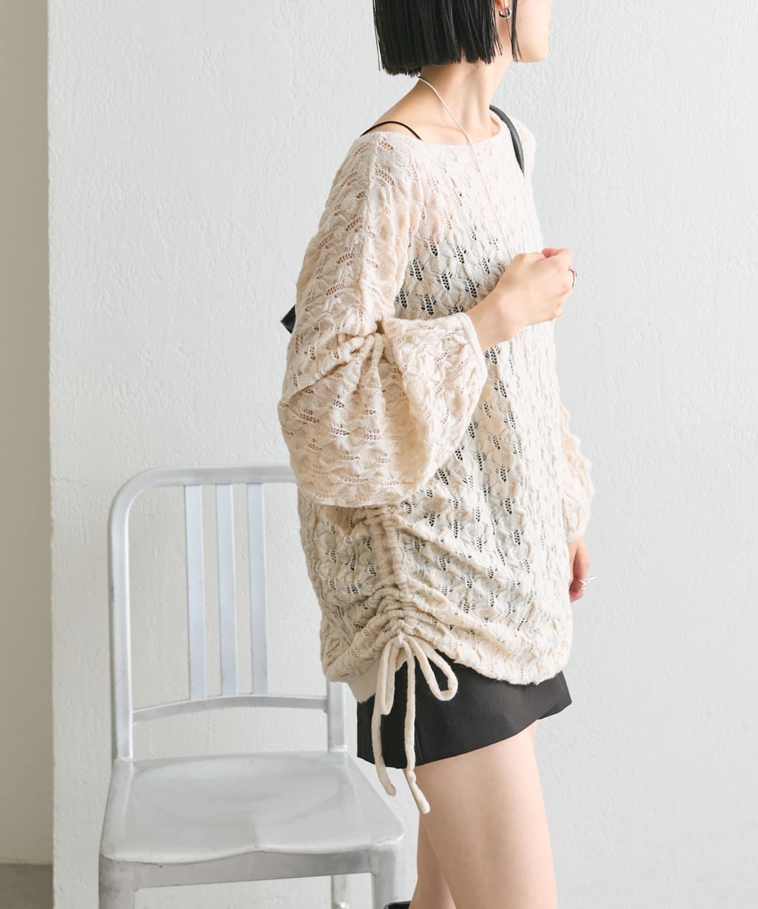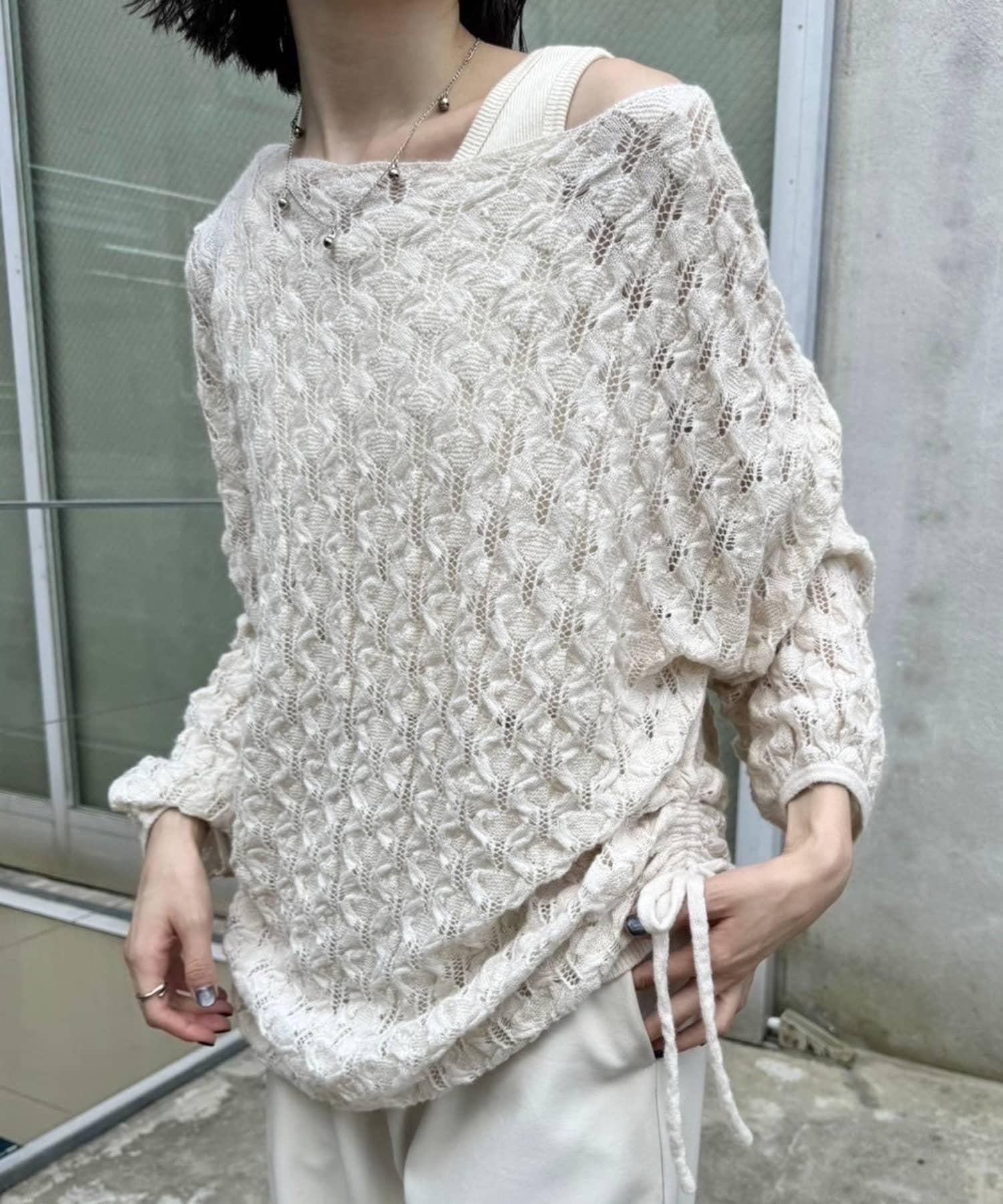 透明度適中的針織衫,兩側有醒目的抽繩設計!