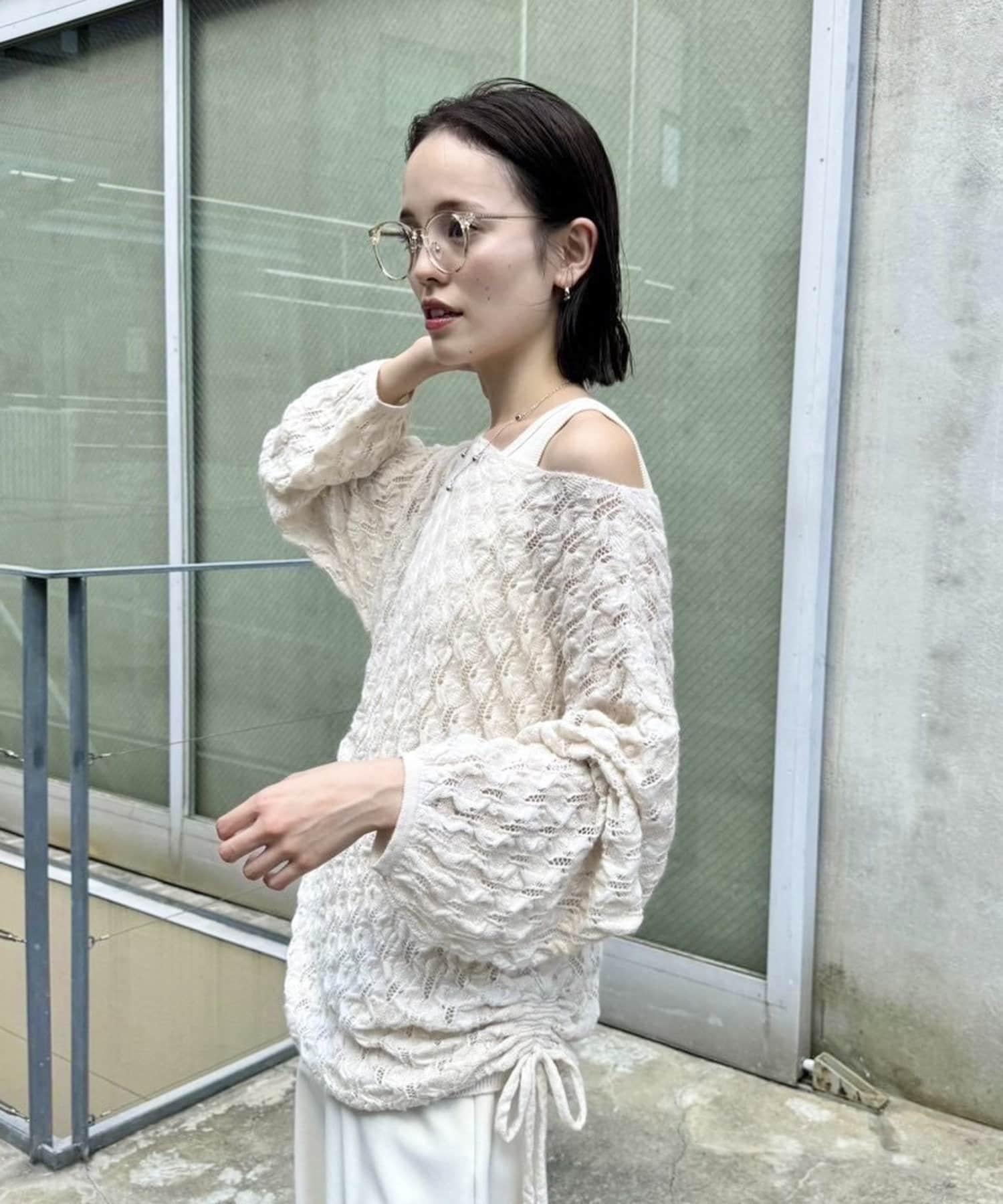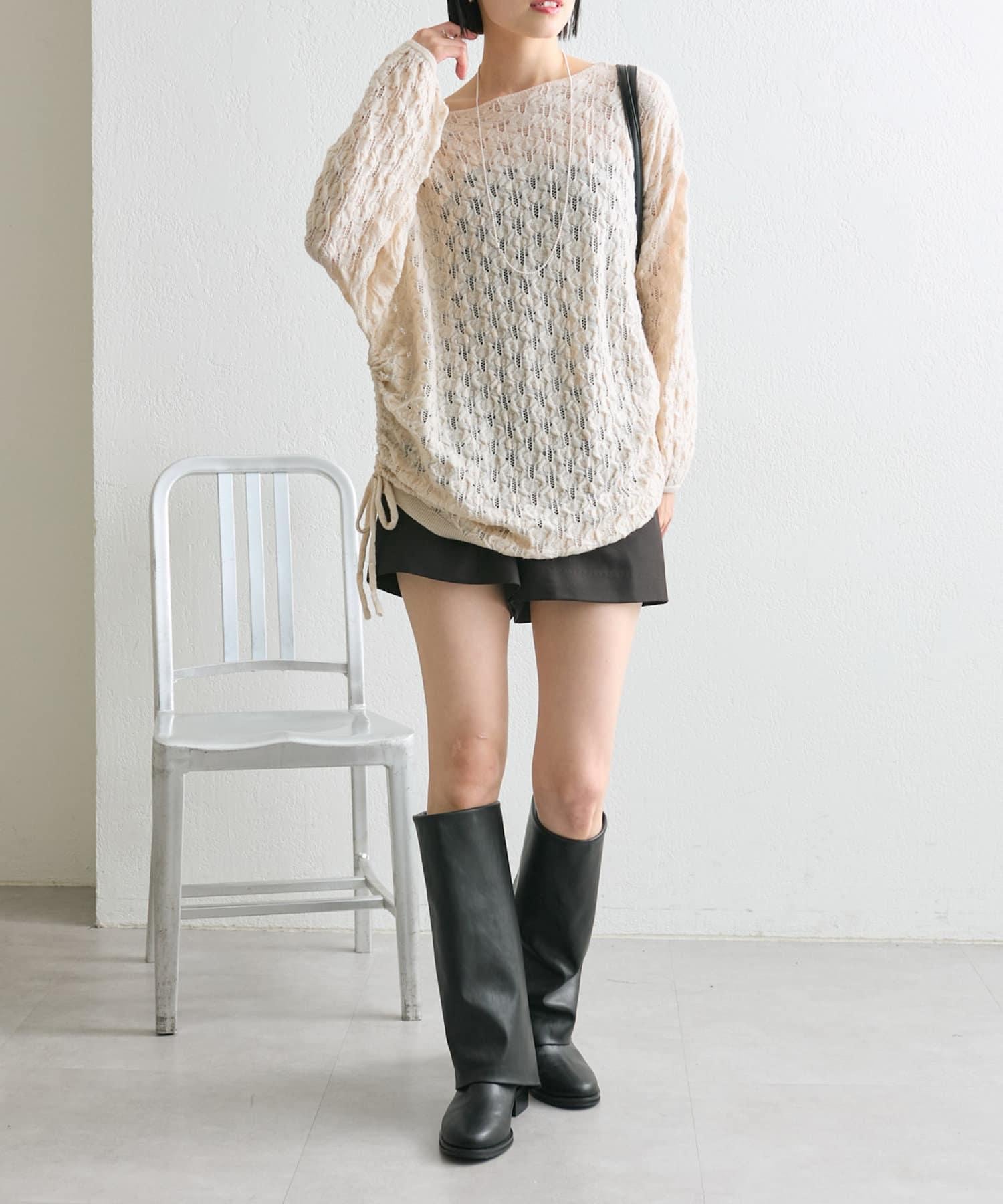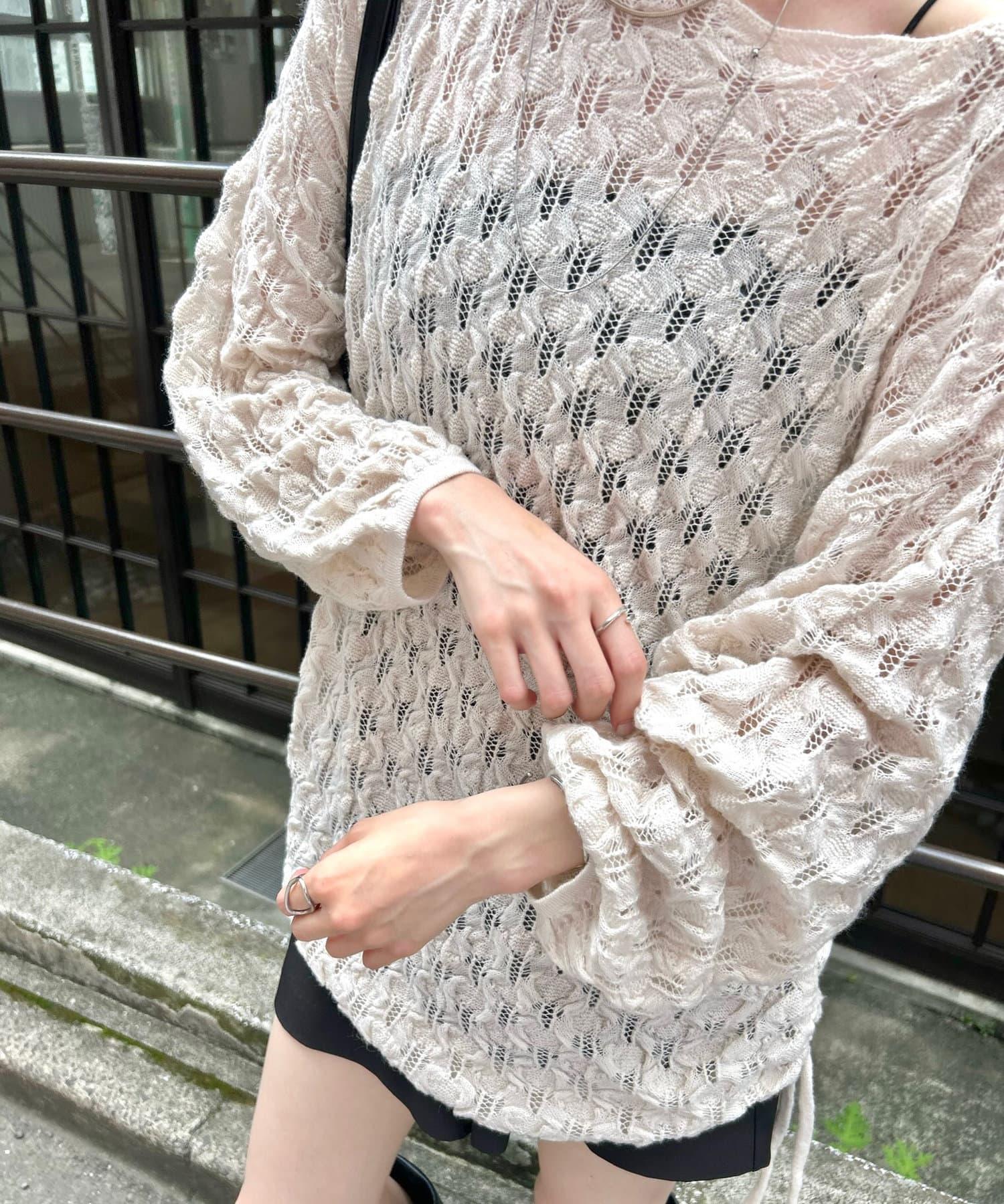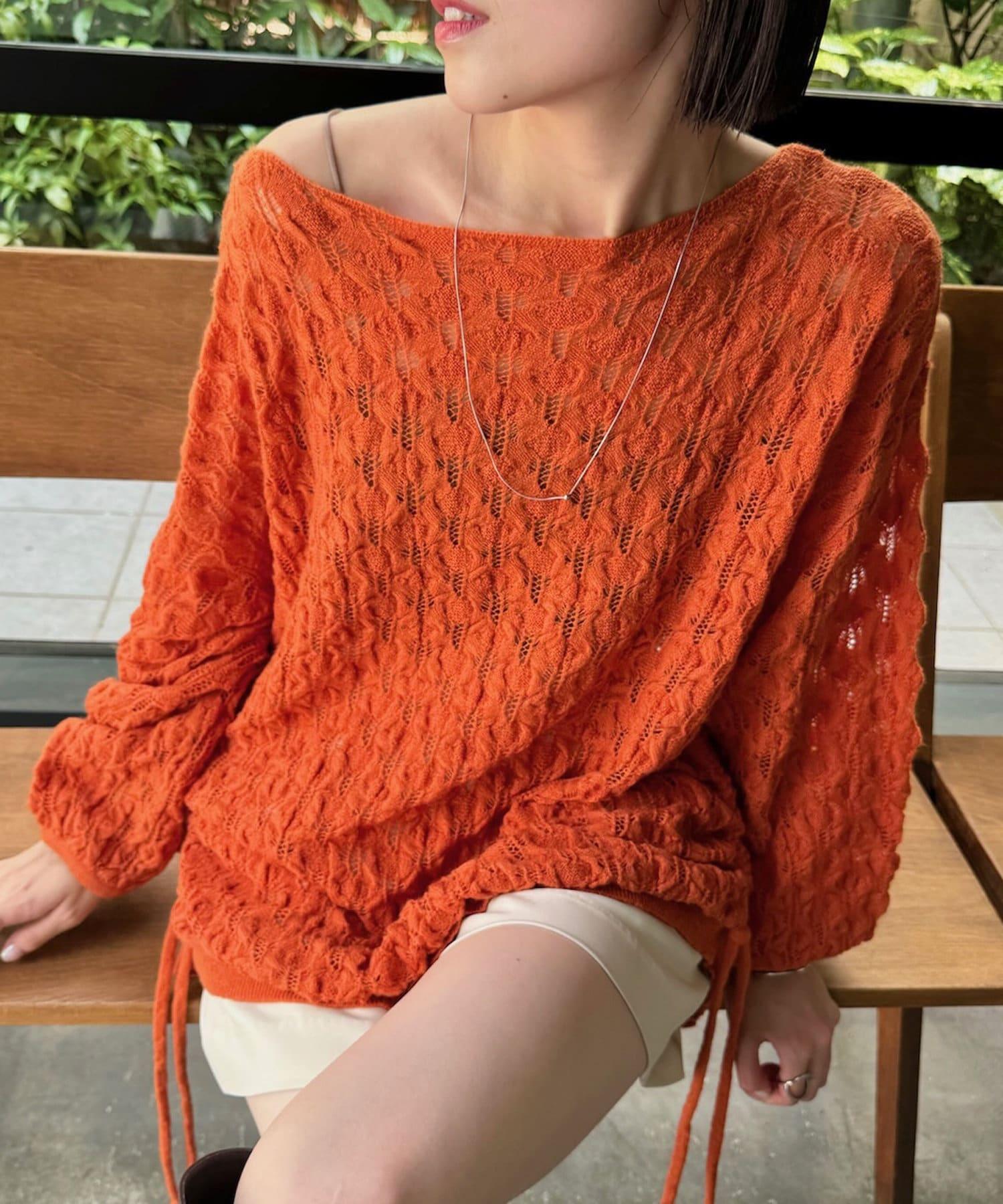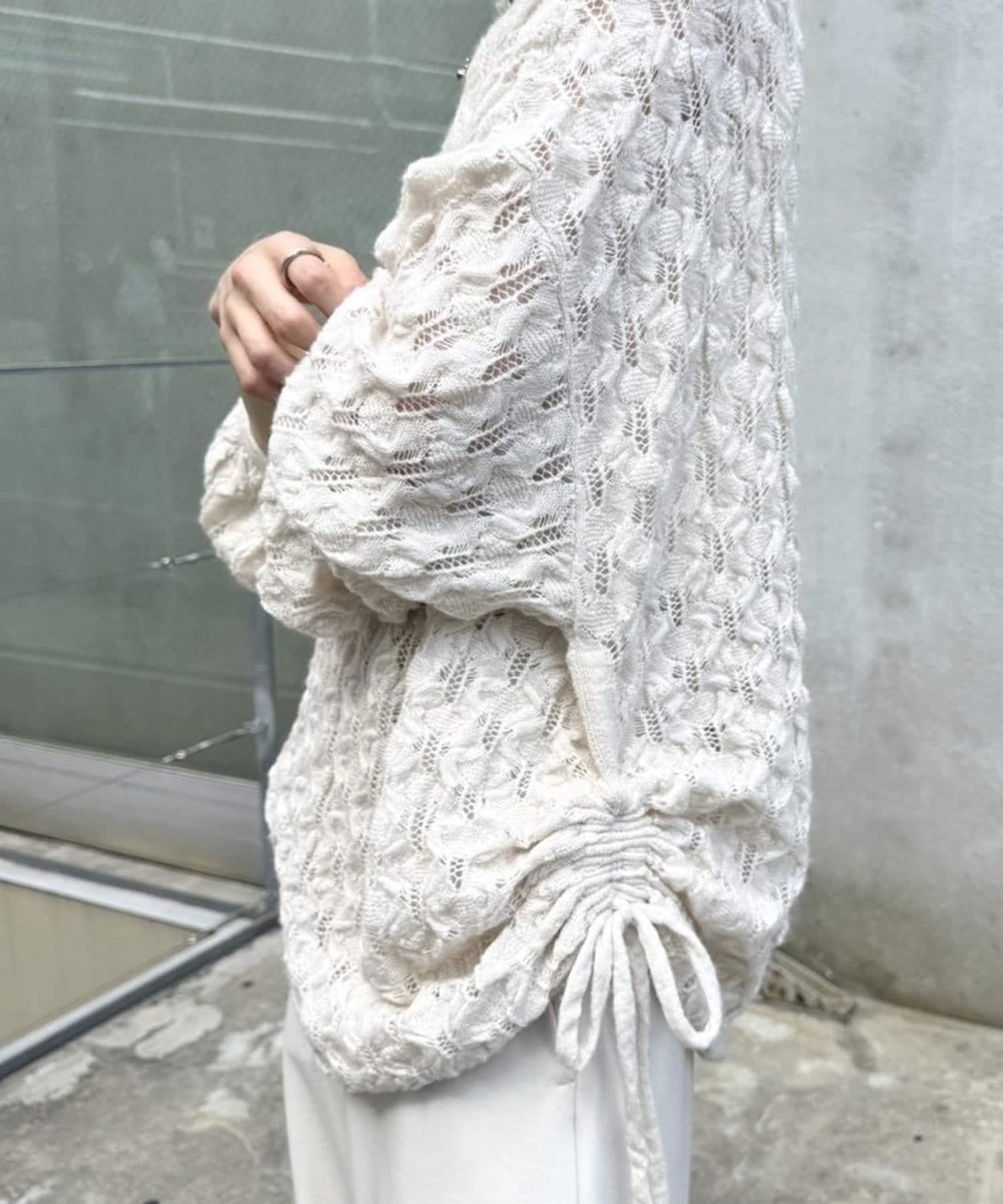 透明度適中的針織衫,兩側有醒目的抽繩設計!
