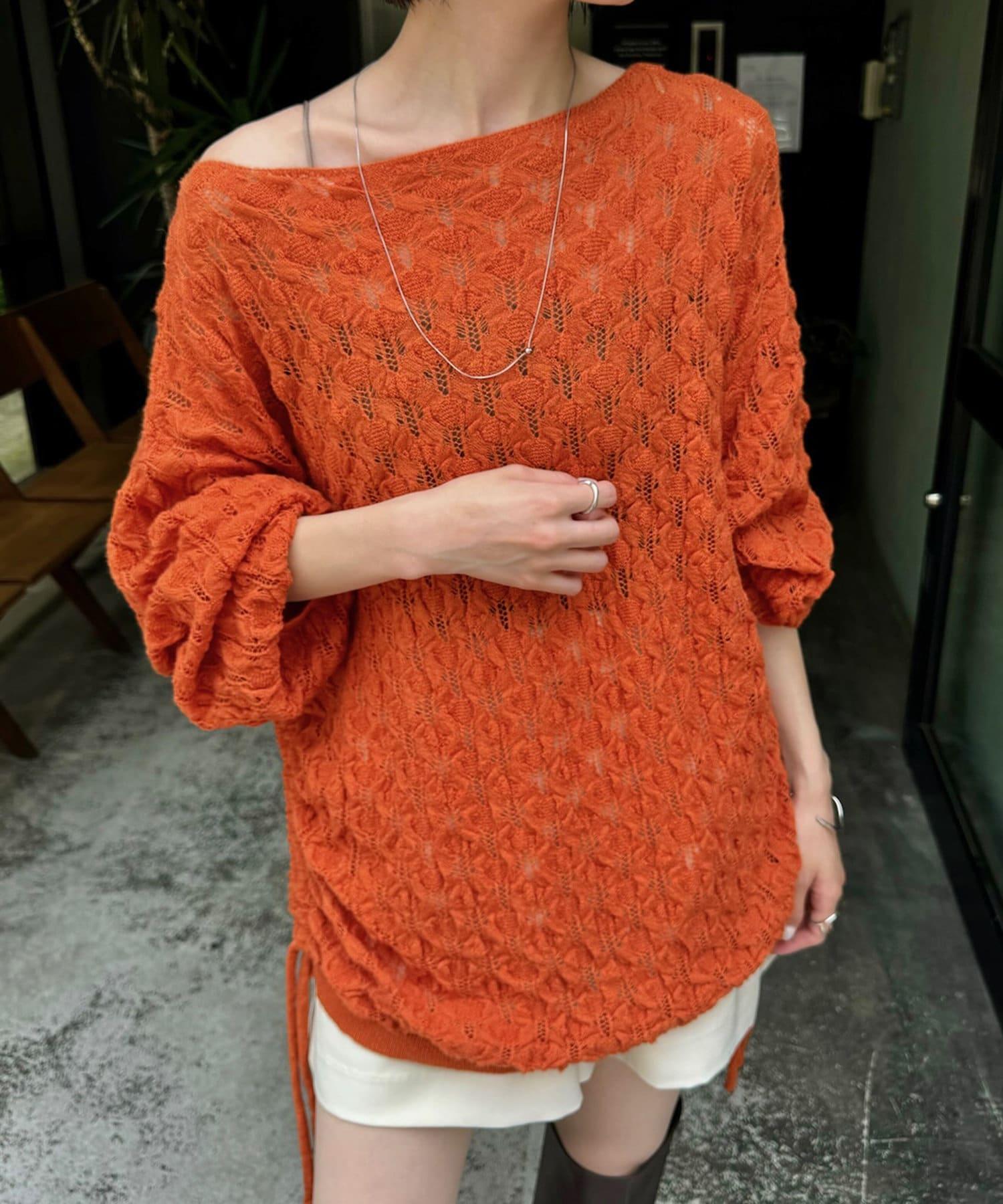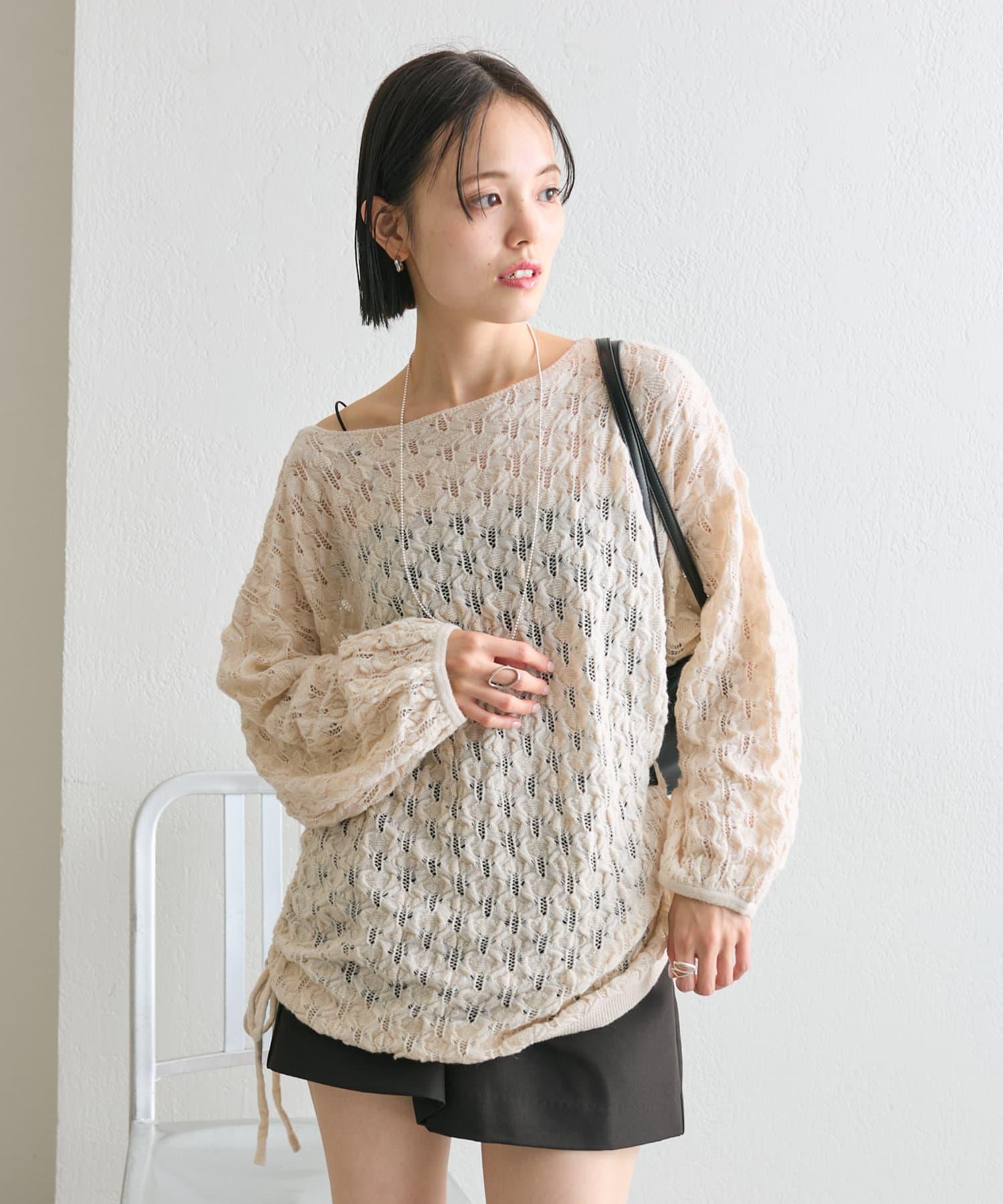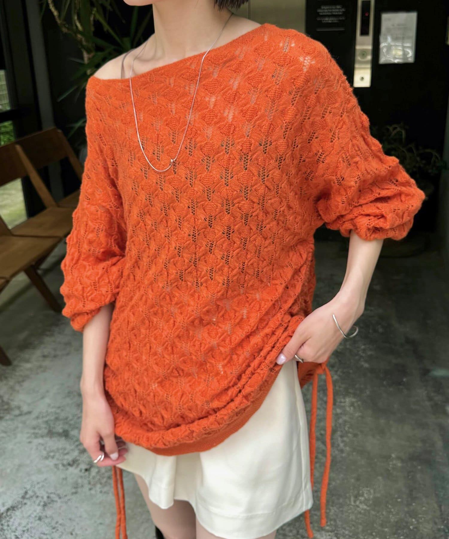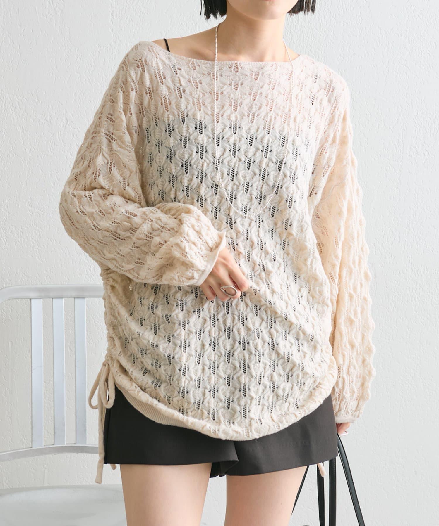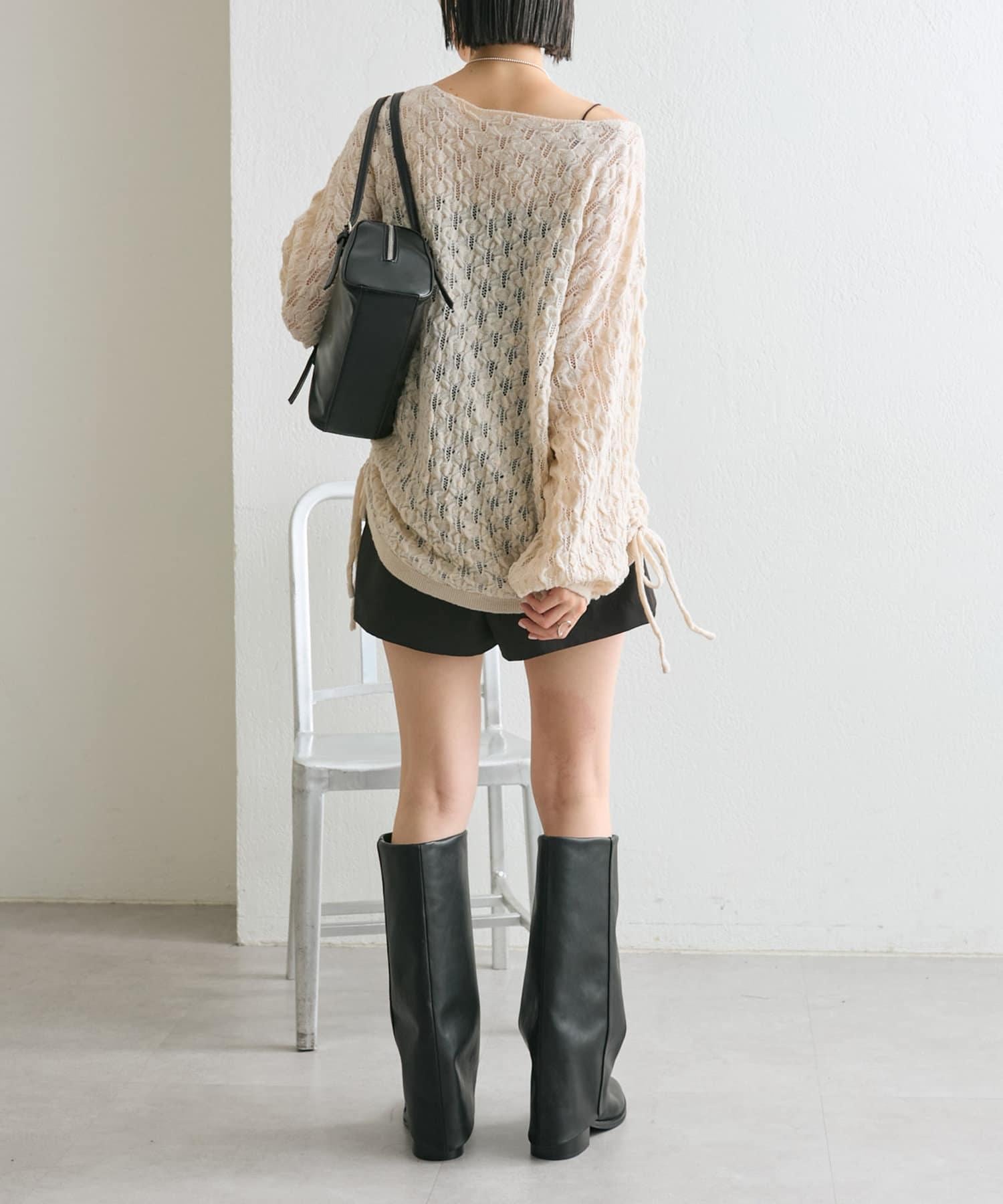 透明度適中的針織衫,兩側有醒目的抽繩設計!
