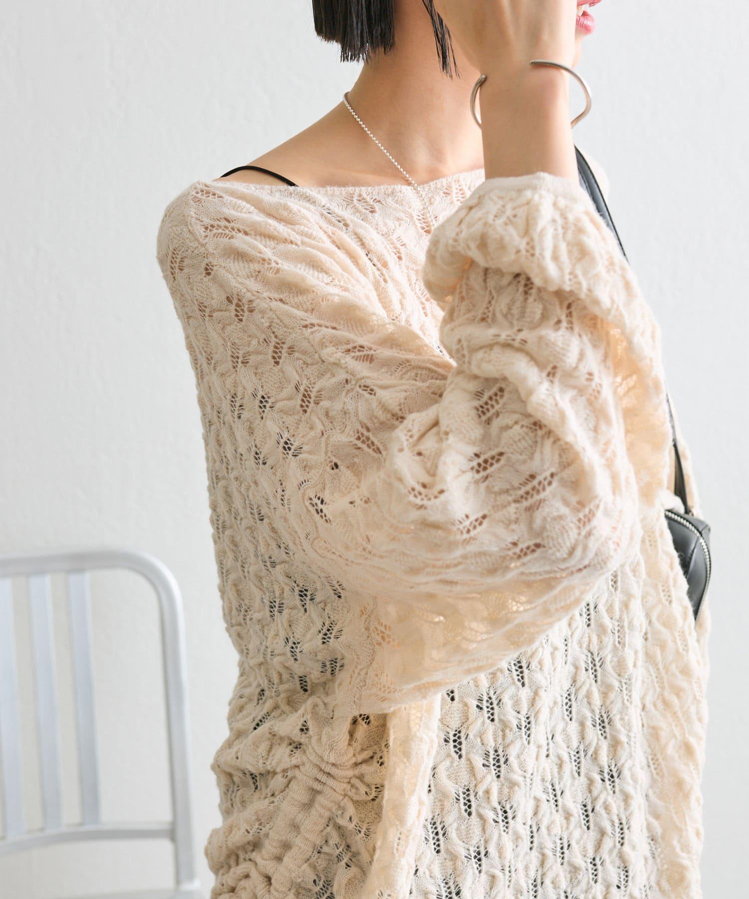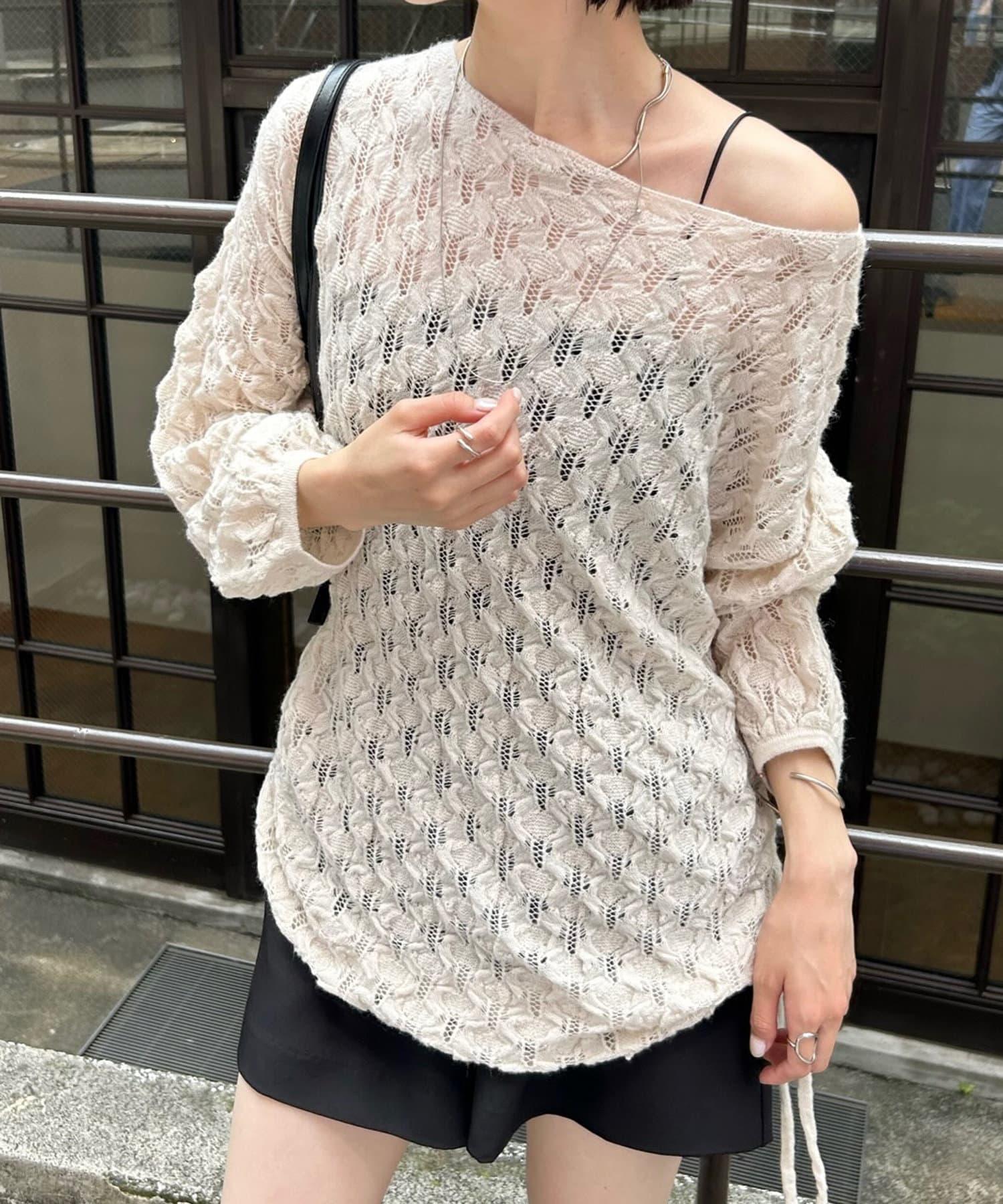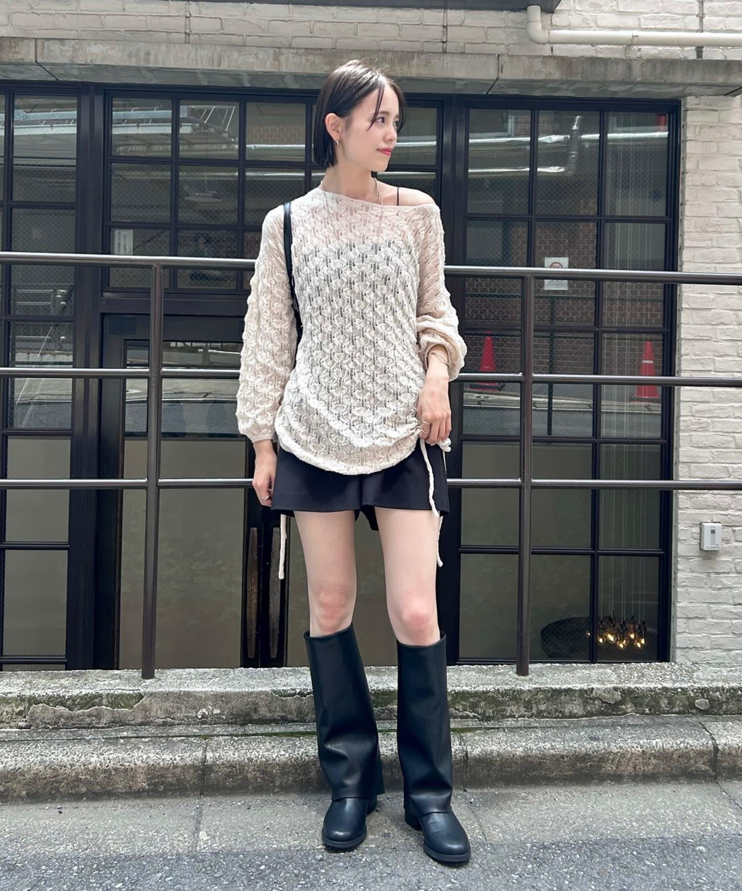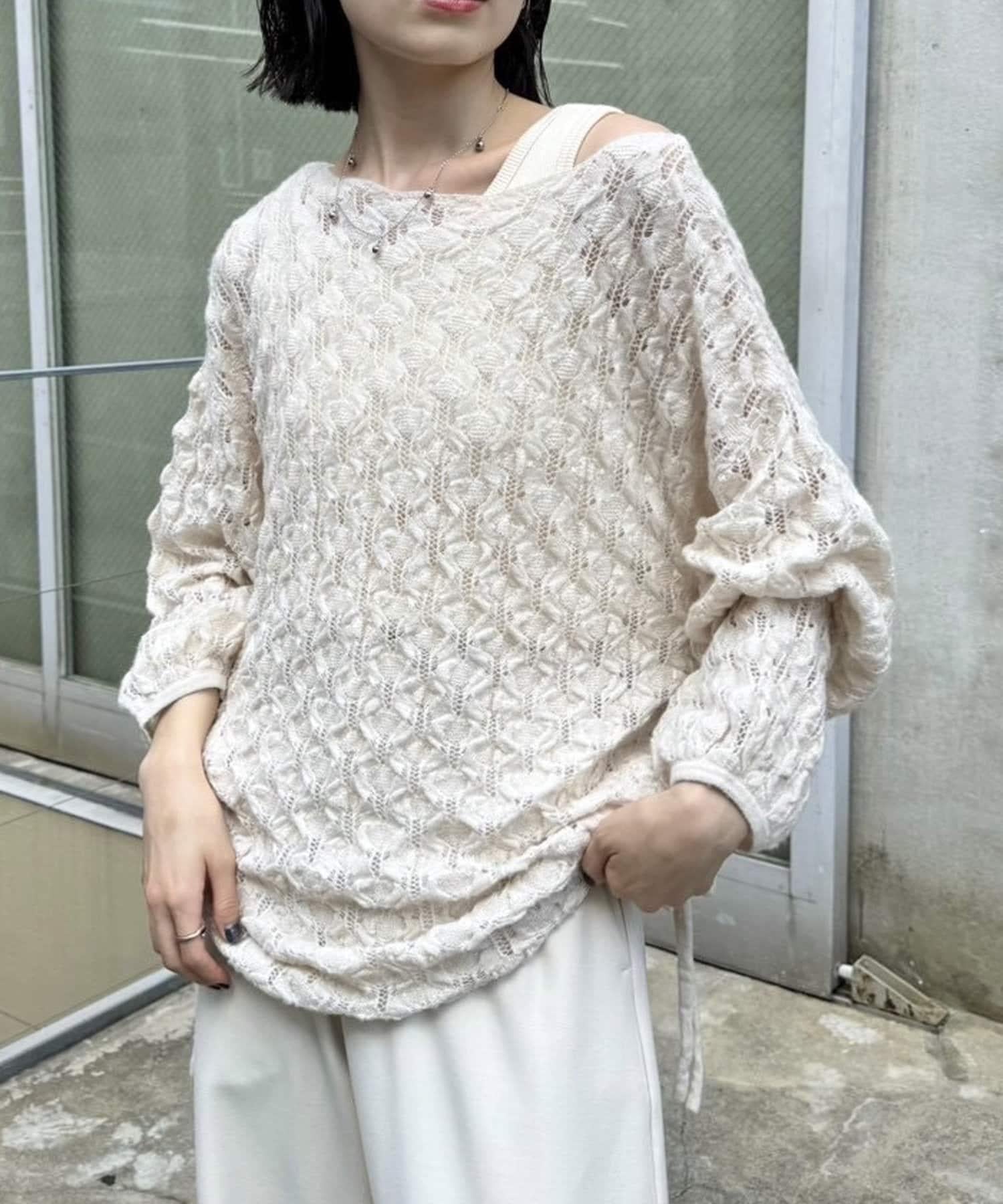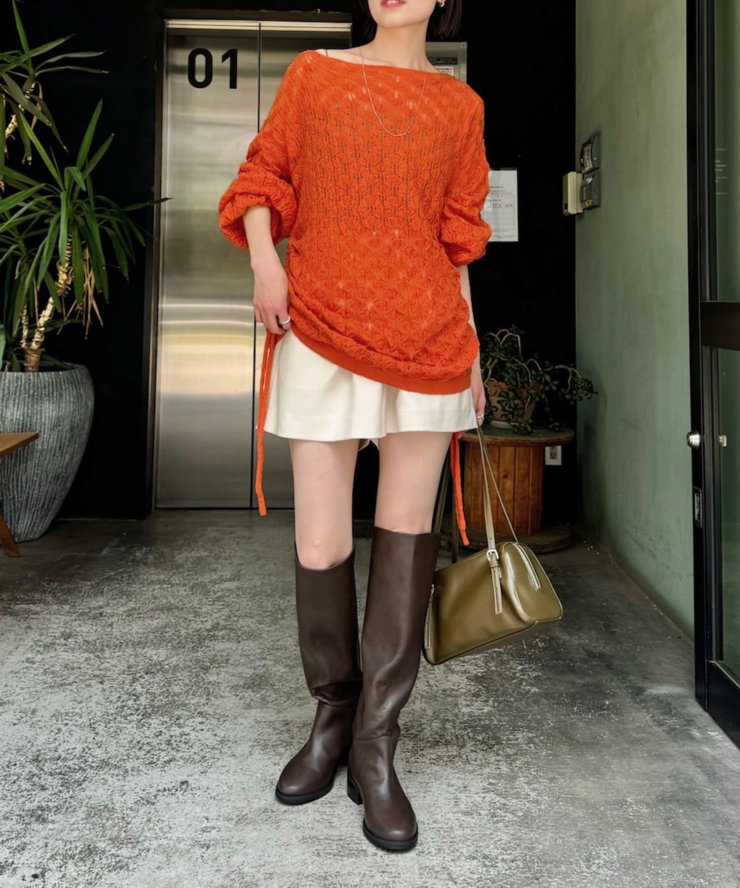 透明度適中的針織衫,兩側有醒目的抽繩設計!