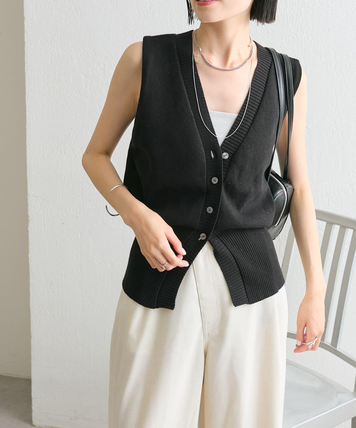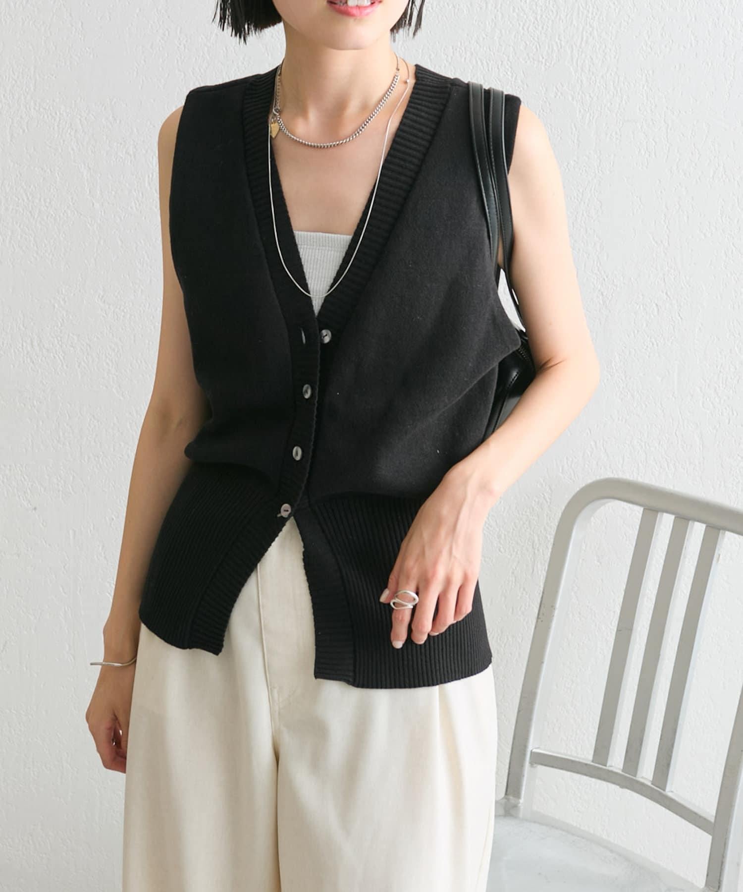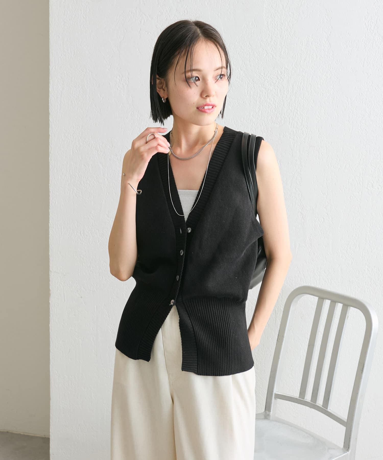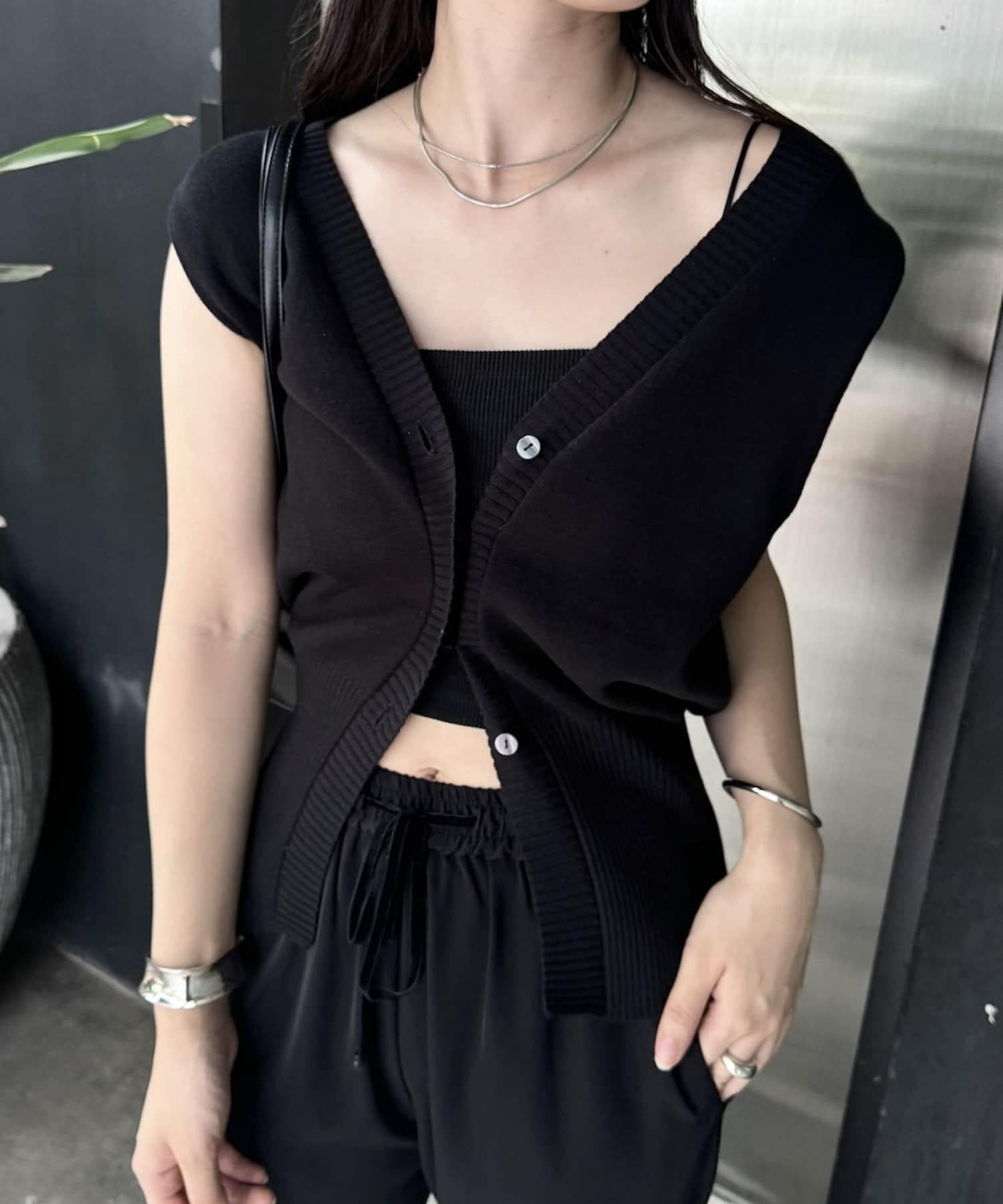 這款針織馬甲能很好地遮住肩部,而且不會過於貼身,非常適合單穿或疊穿。