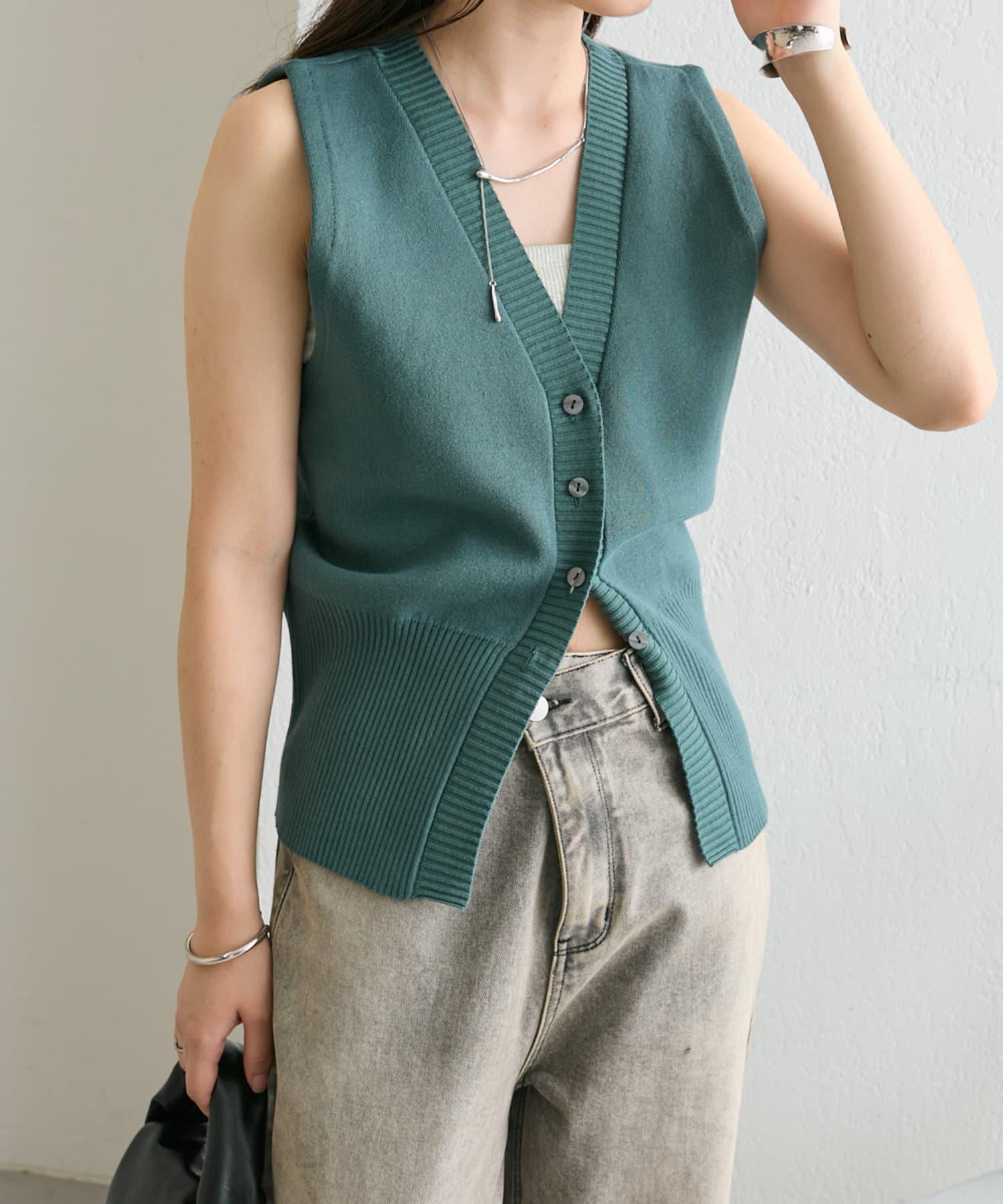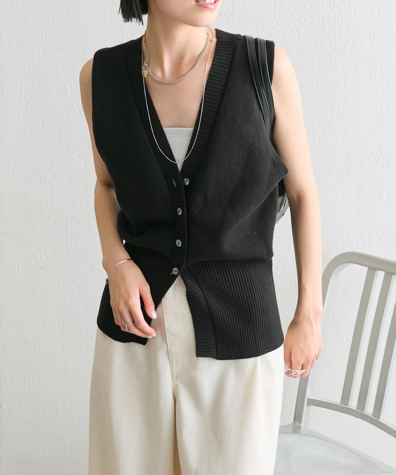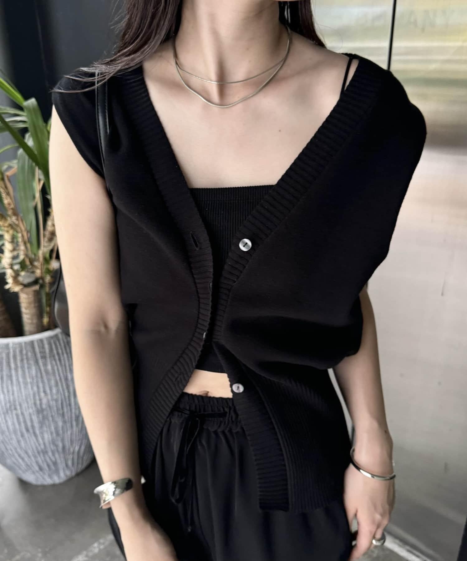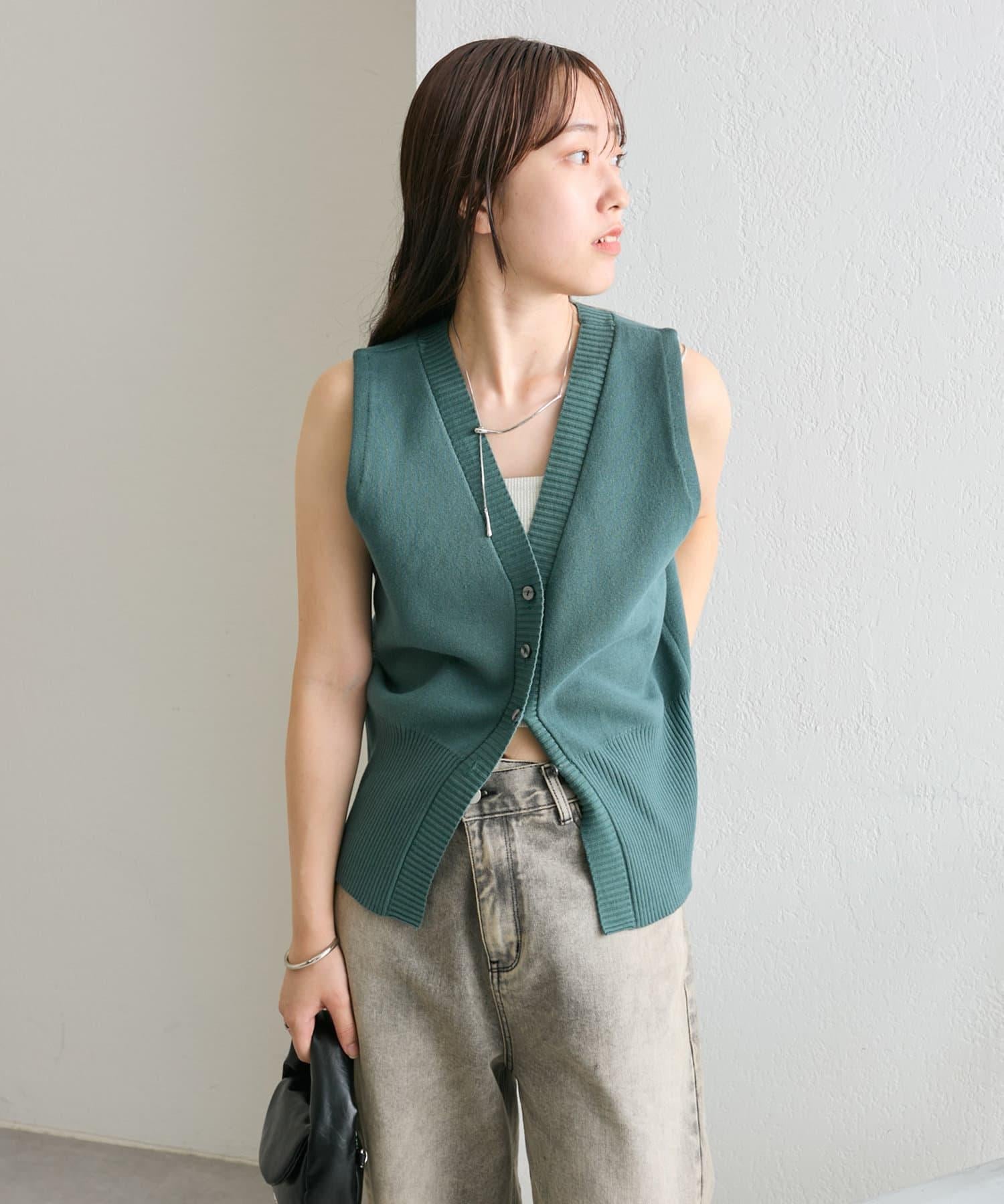 這款針織馬甲能很好地遮住肩部,而且不會過於貼身,非常適合單穿或疊穿。