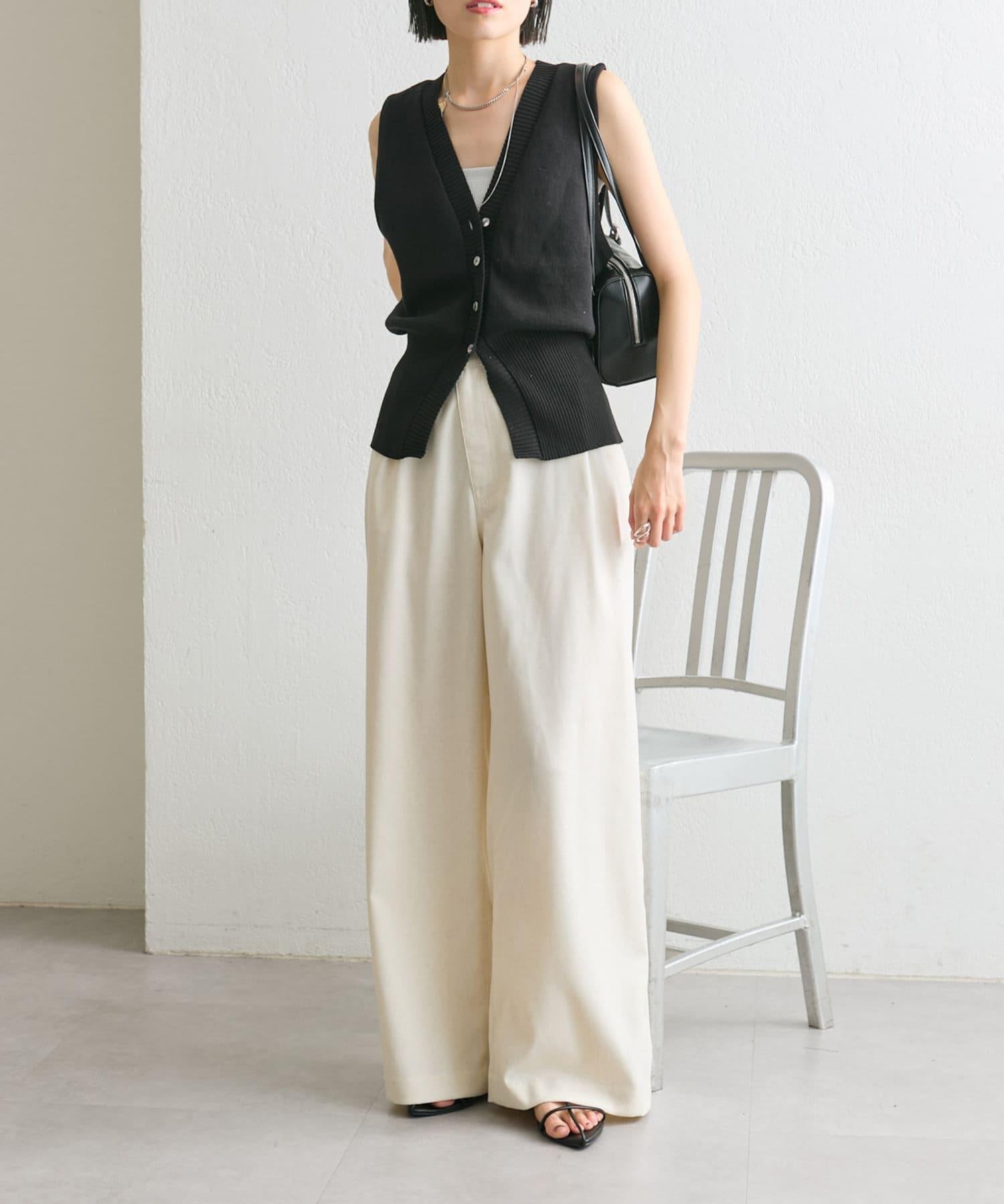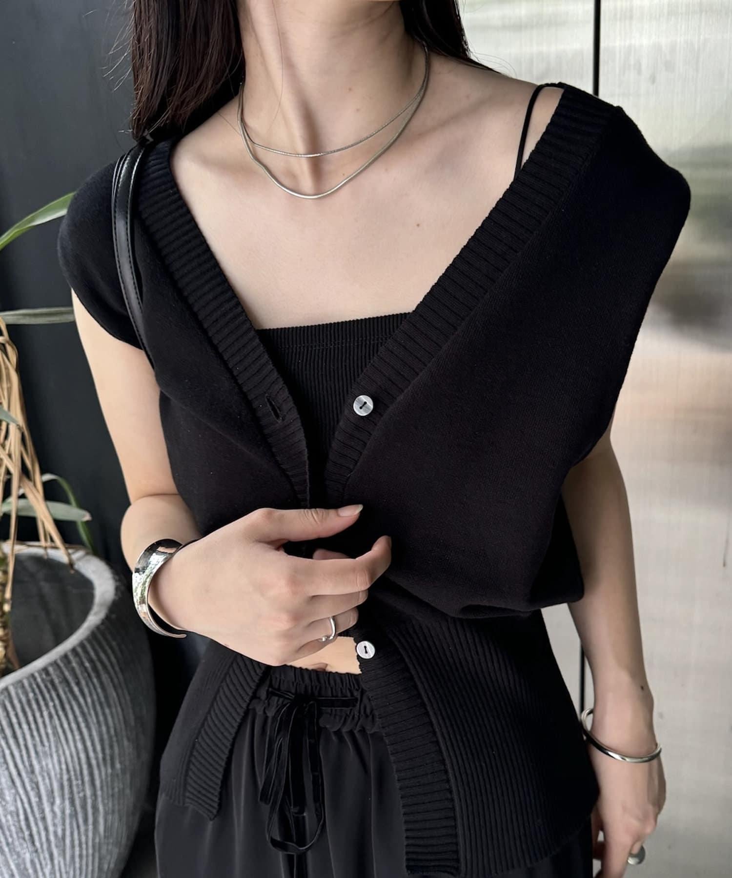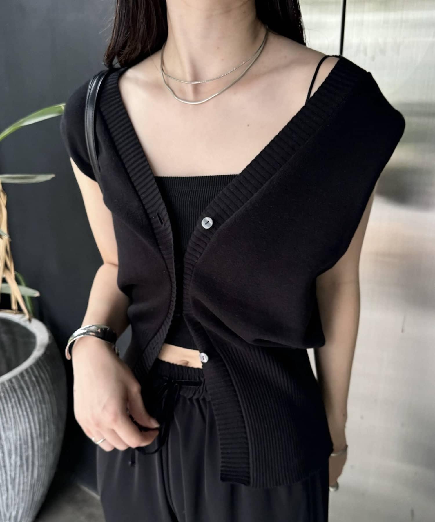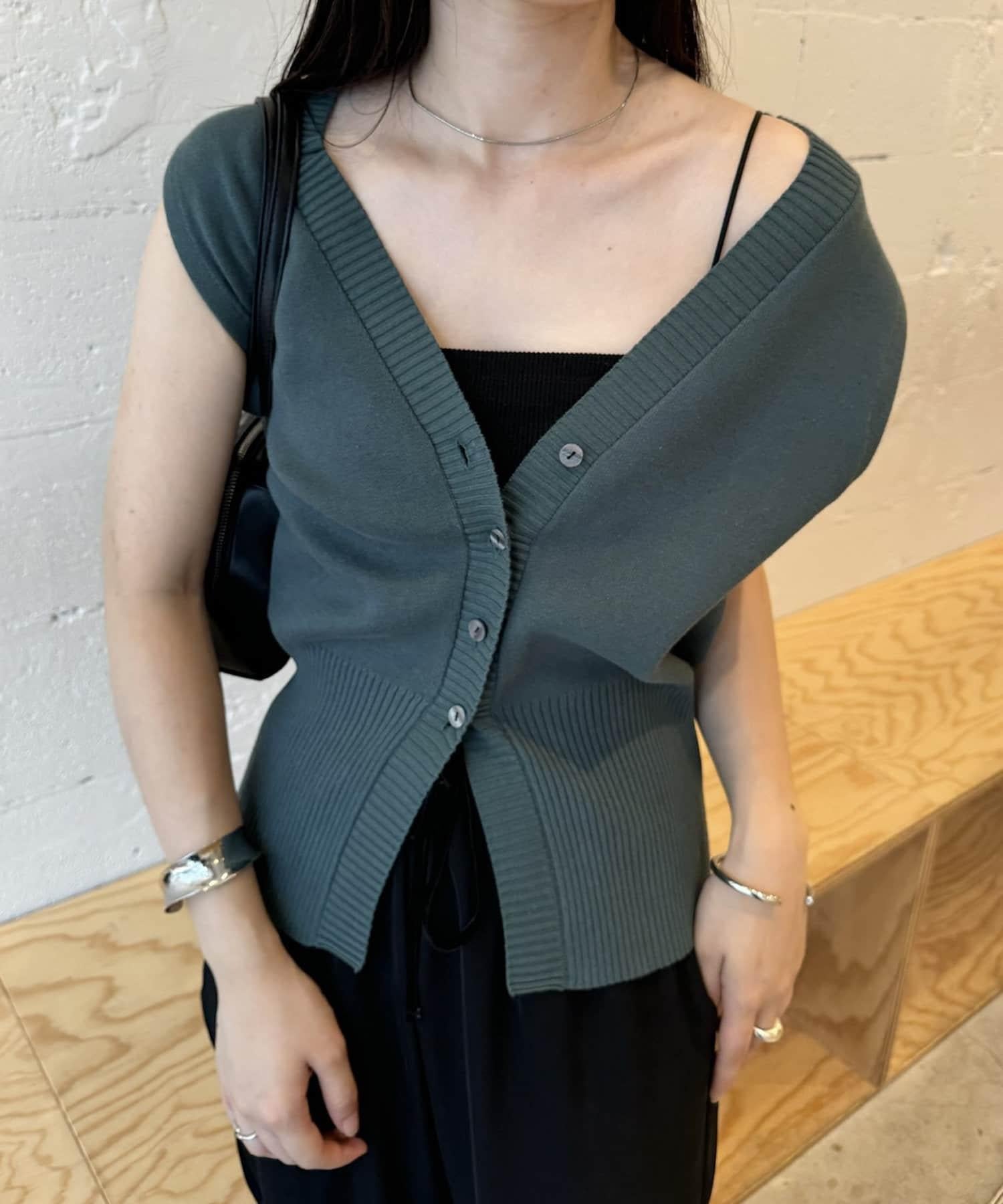 這款針織馬甲能很好地遮住肩部,而且不會過於貼身,非常適合單穿或疊穿。