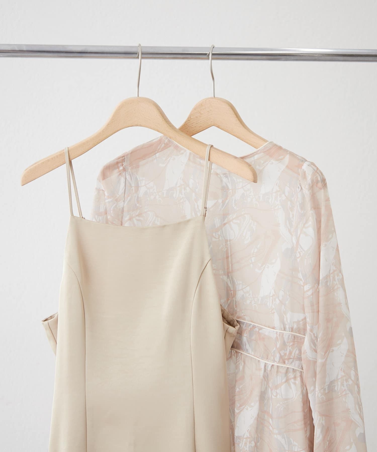 透視蕾絲(花紋)和緞面吊帶裙套裝的設計適用於從日常到偶爾的各種場合。