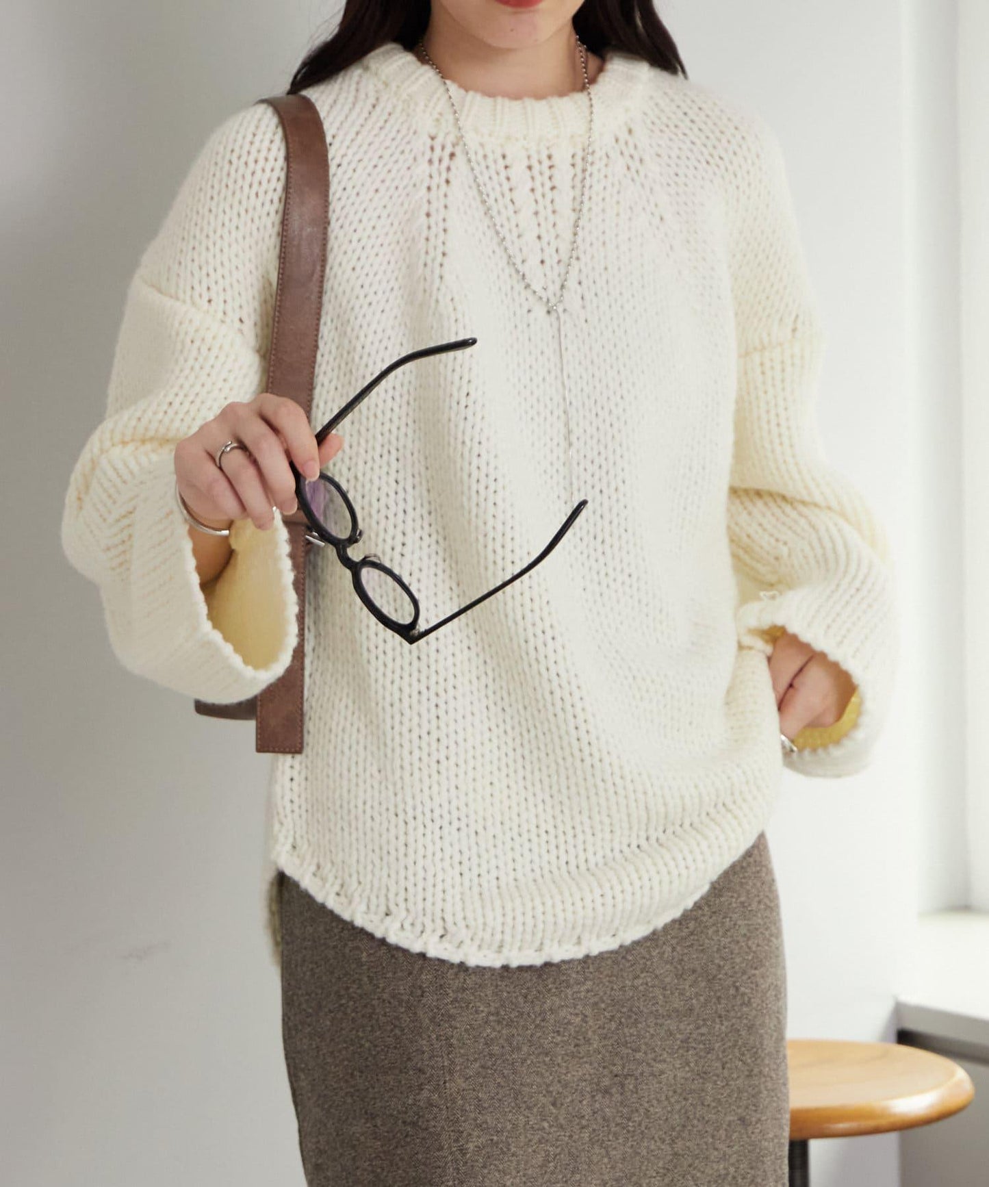 這款針織衫採用粗針織,給人一種輕薄的感覺。