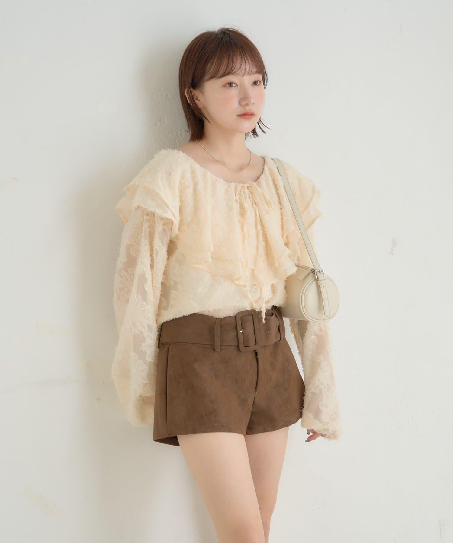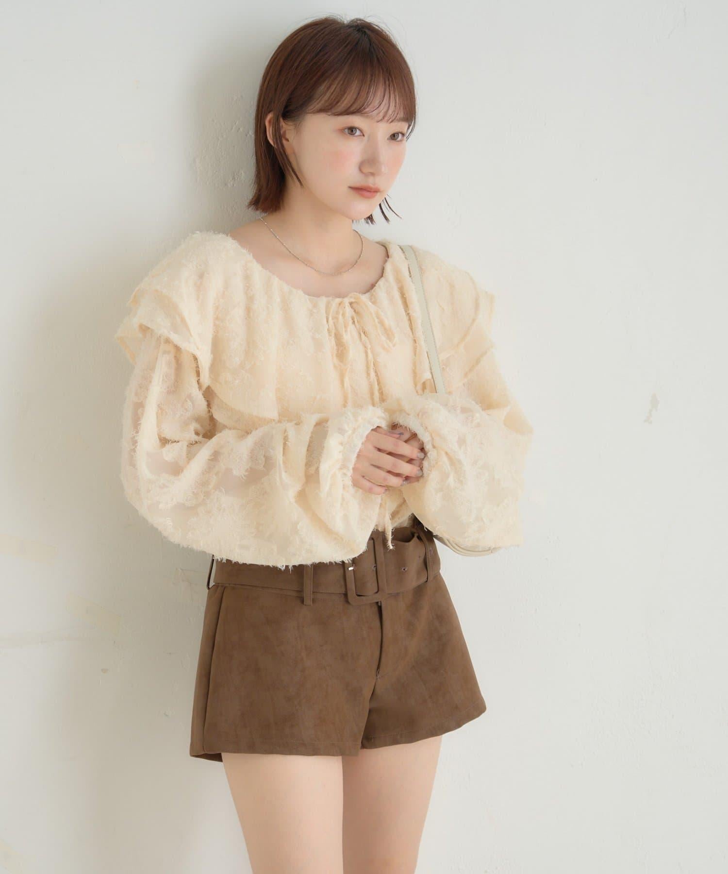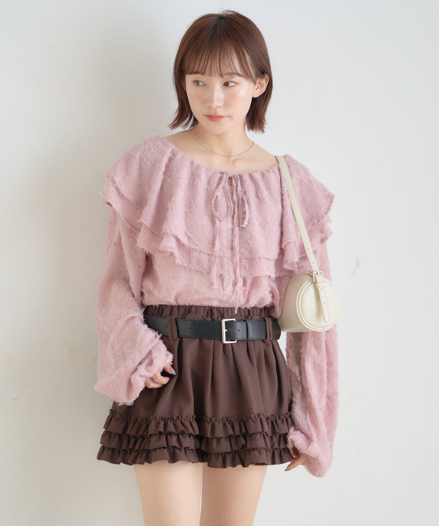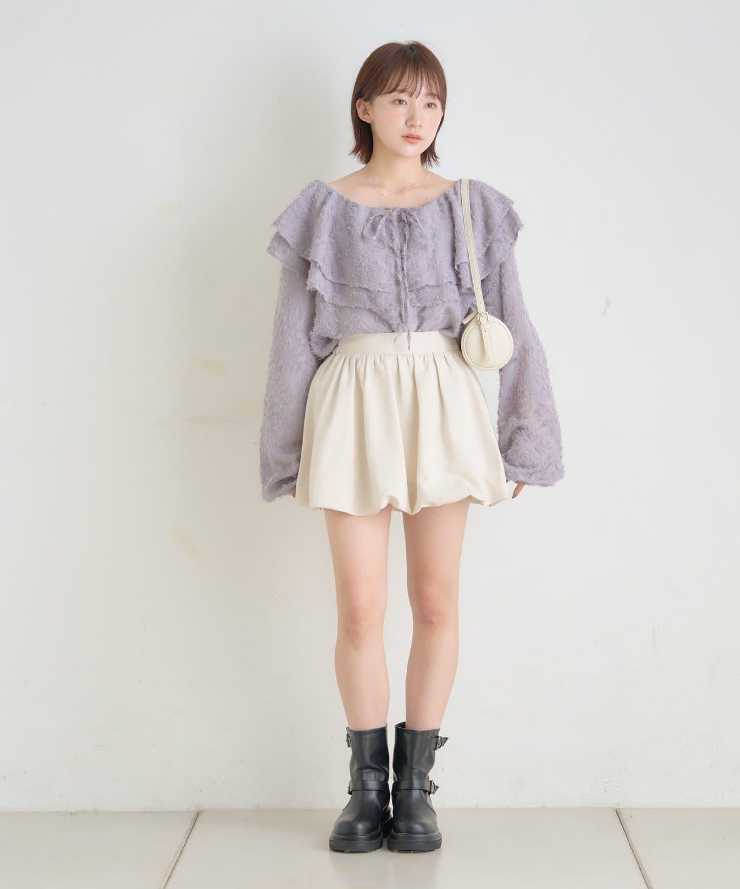 【mystic】[mline]荷葉邊褶皺雪紡襯衫