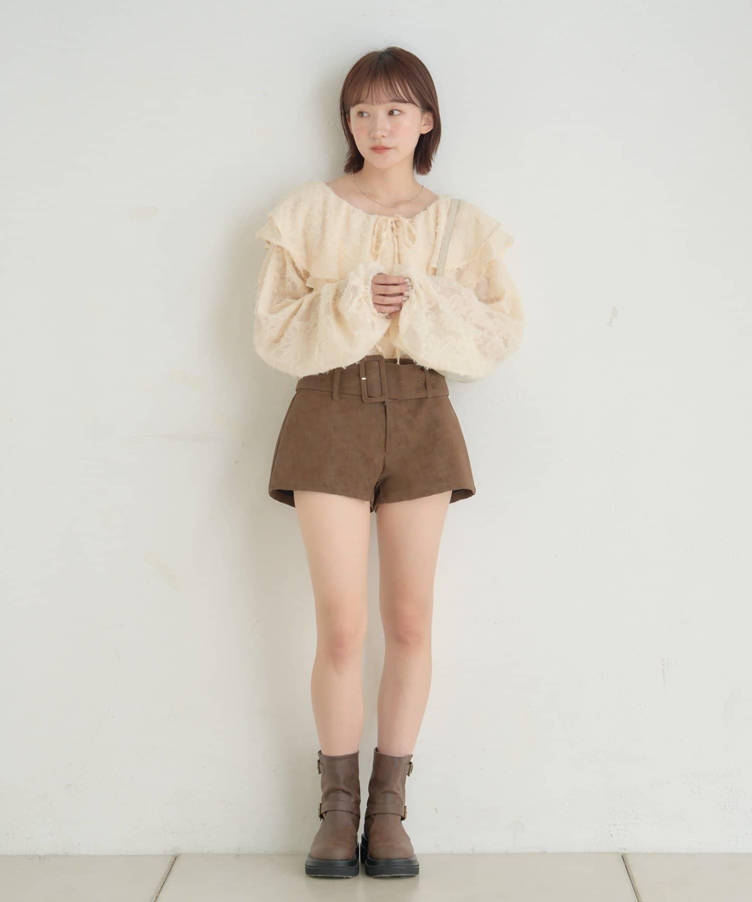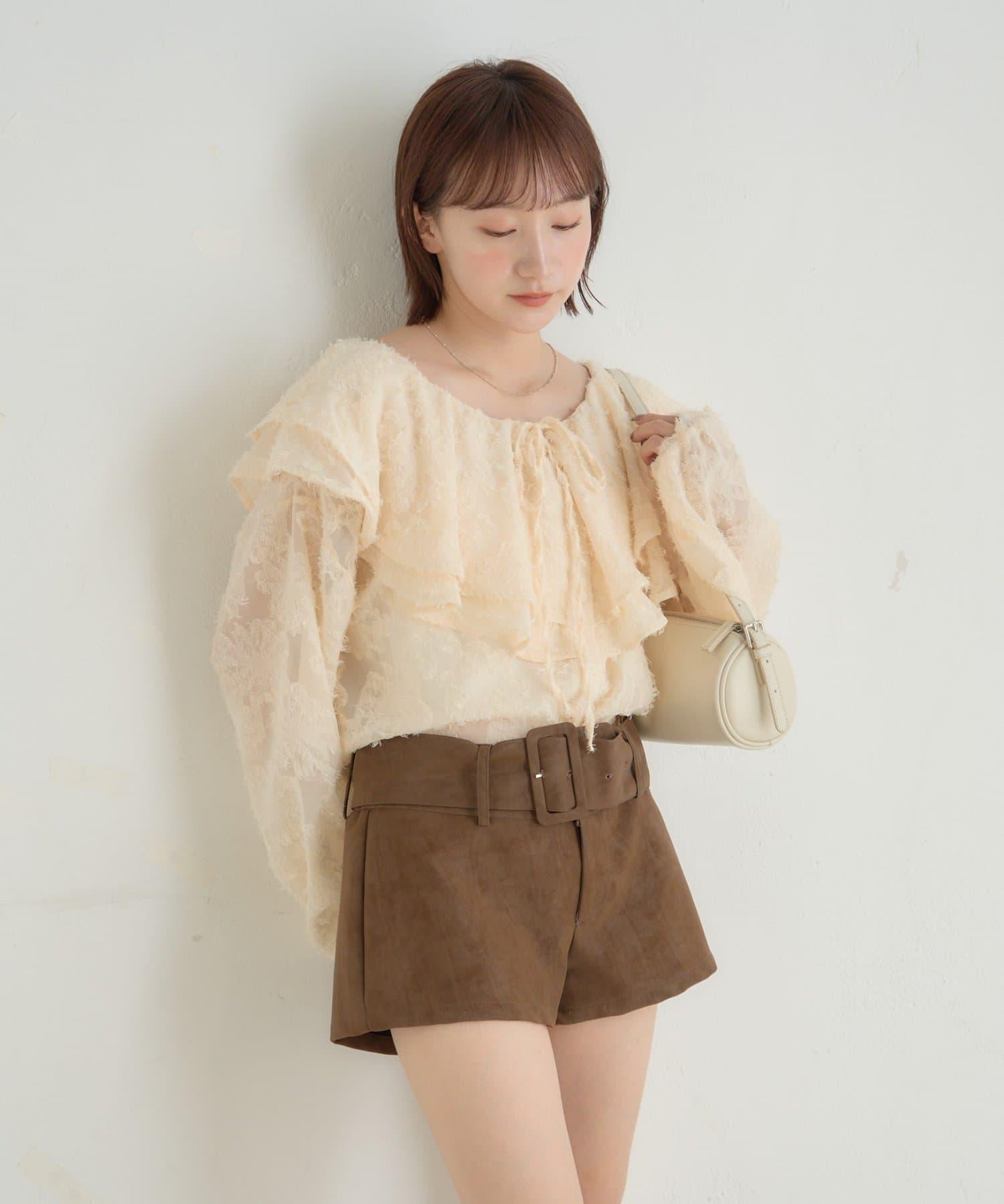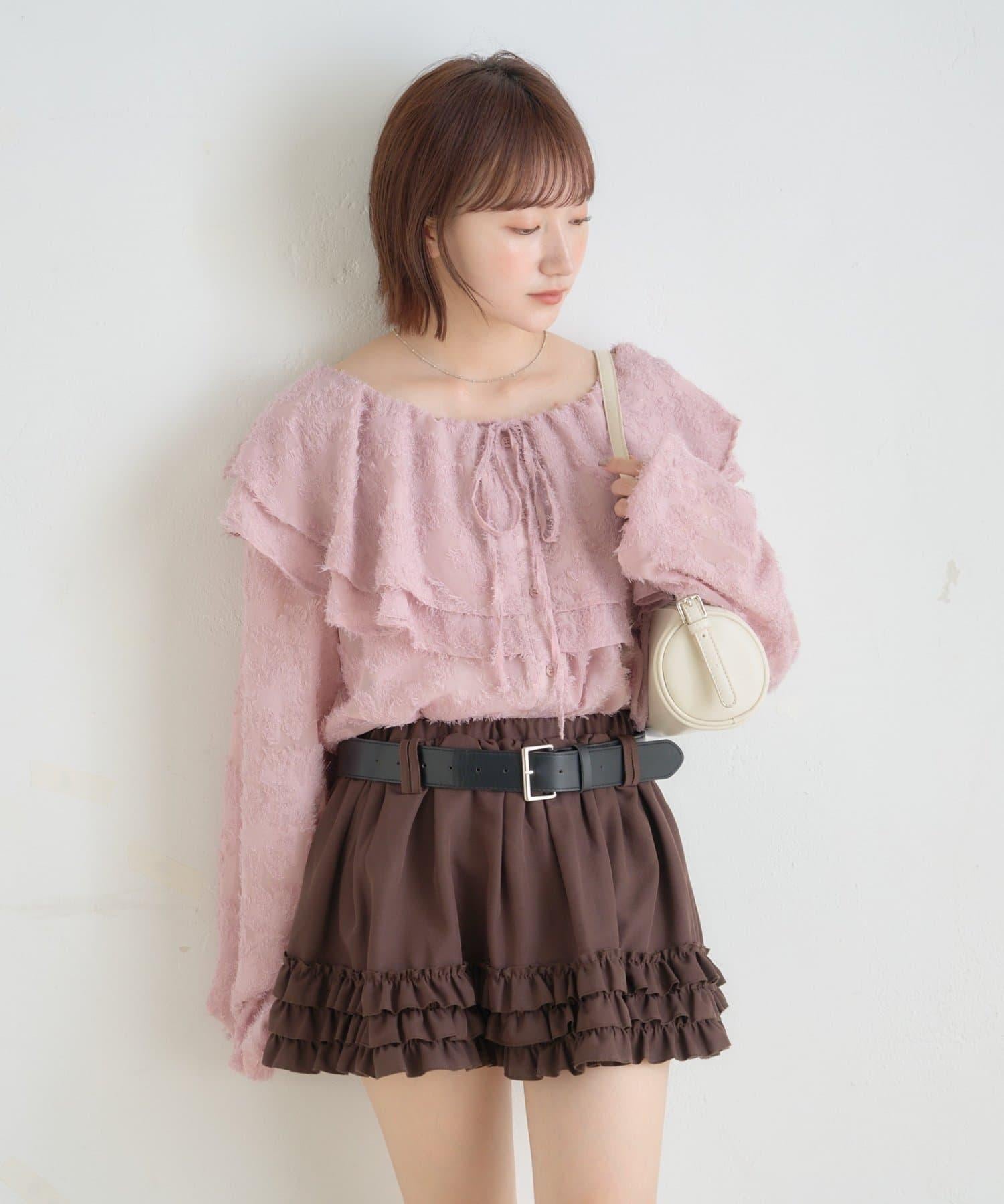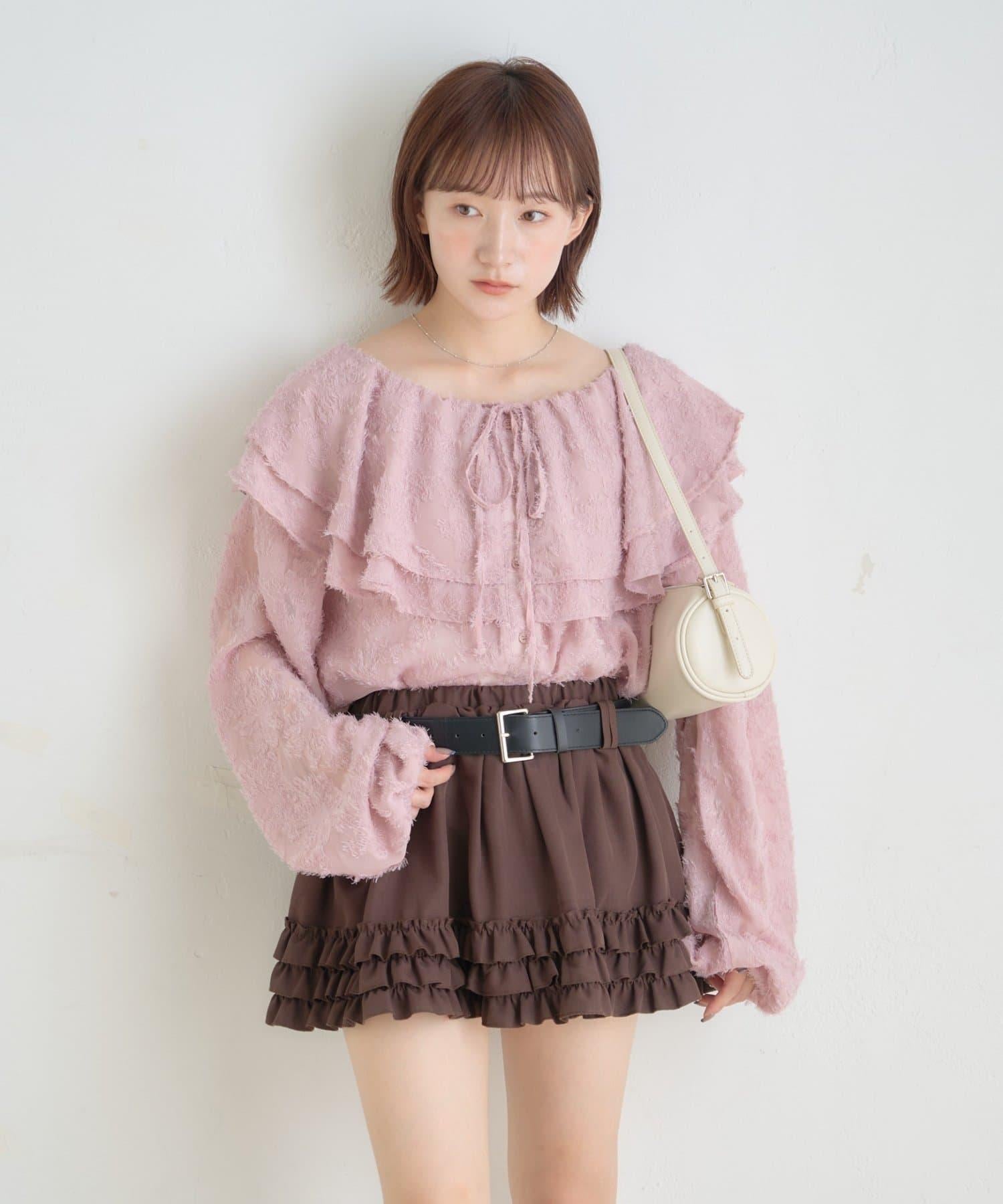 【mystic】[mline]荷葉邊褶皺雪紡襯衫