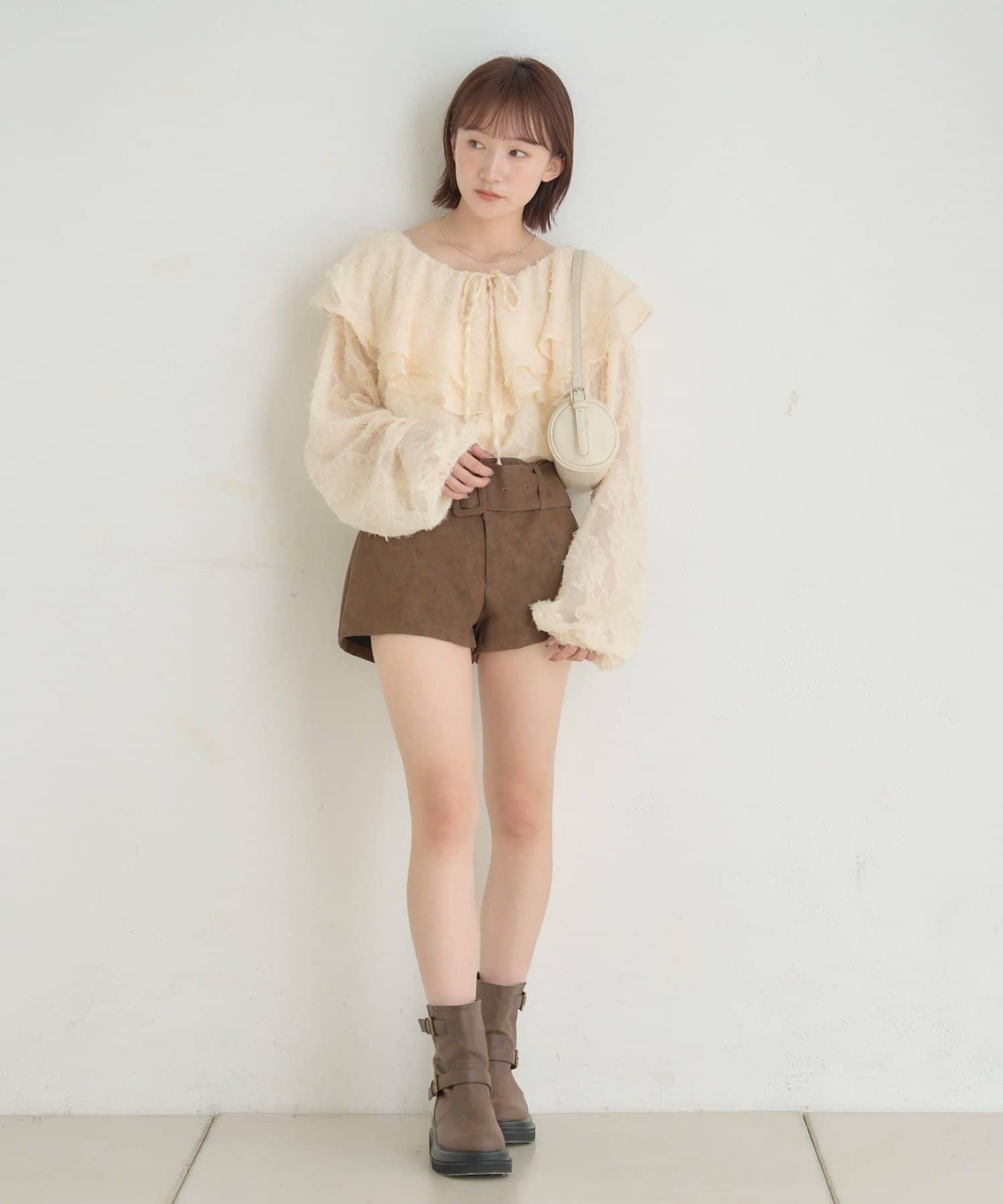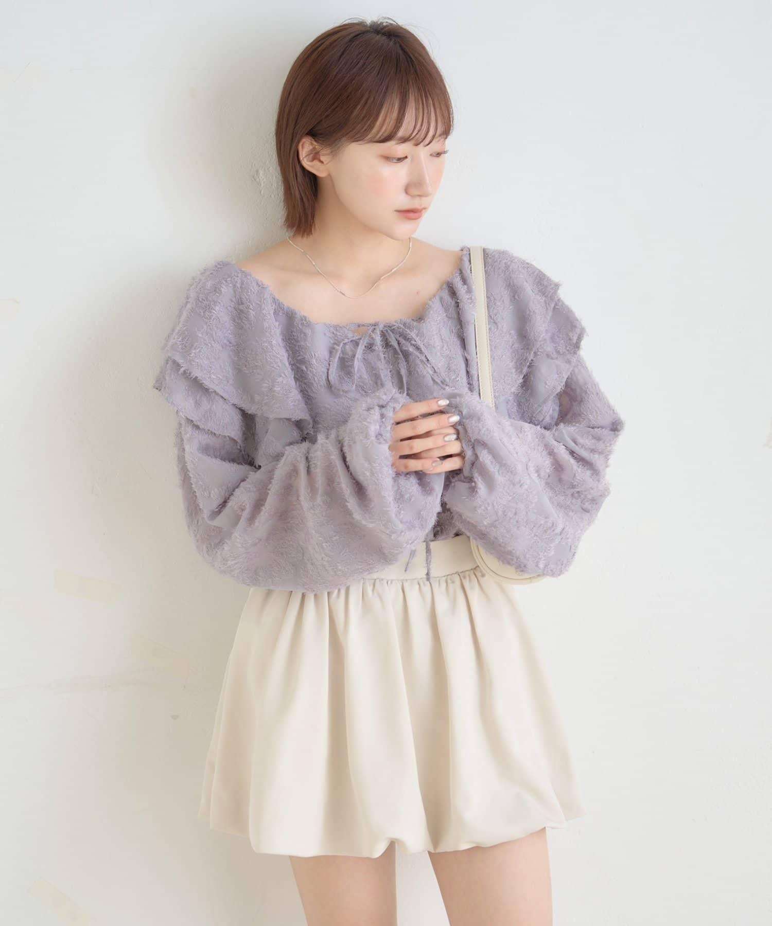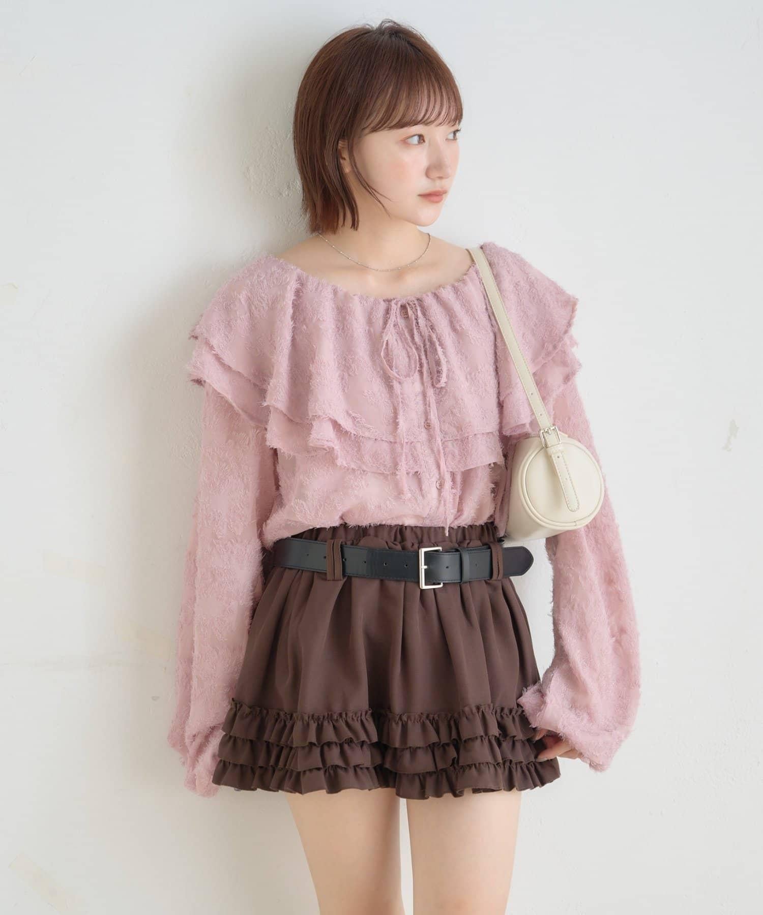 頸部荷葉邊的蓬鬆感會給你帶來小臉效果◎。