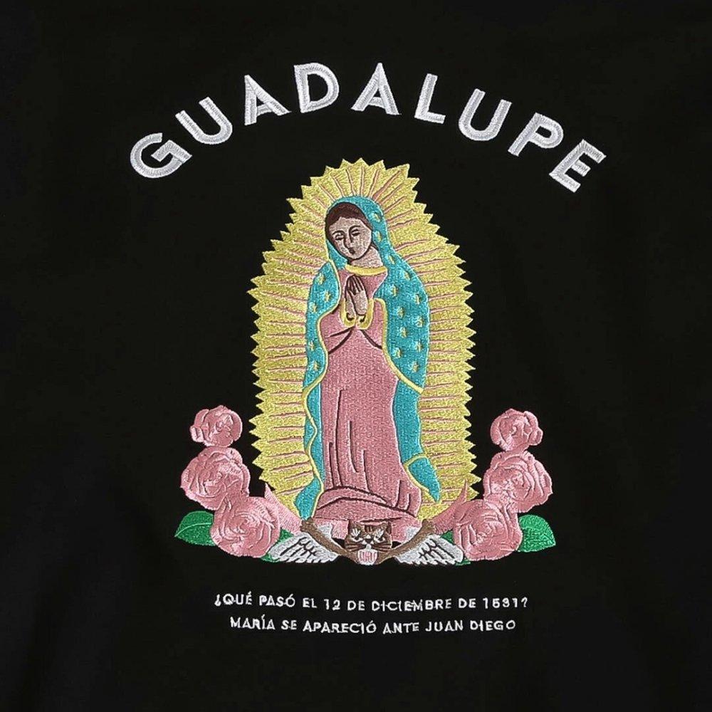 墨西哥瑪利亞瓜達盧佩被繡成乳白色。設計既酷又美。大量密集的刺繡在光線的照射下呈現出立體感。