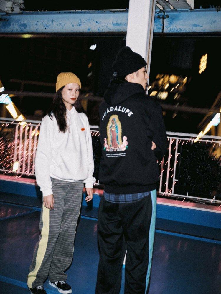 這裡的刺繡使用了 Sukajan 所使用的機器,因此具有立體感,並賦予畫面動感。 中碼 身高:64 厘米 胸圍:52 厘米 肩寬:48 厘米 袖長:56 厘米 袖寬:25 厘米 袖口:9 厘米 頸寬(上):21 厘米 連帽長:35 厘米 連帽寬:23.5 厘米 大碼