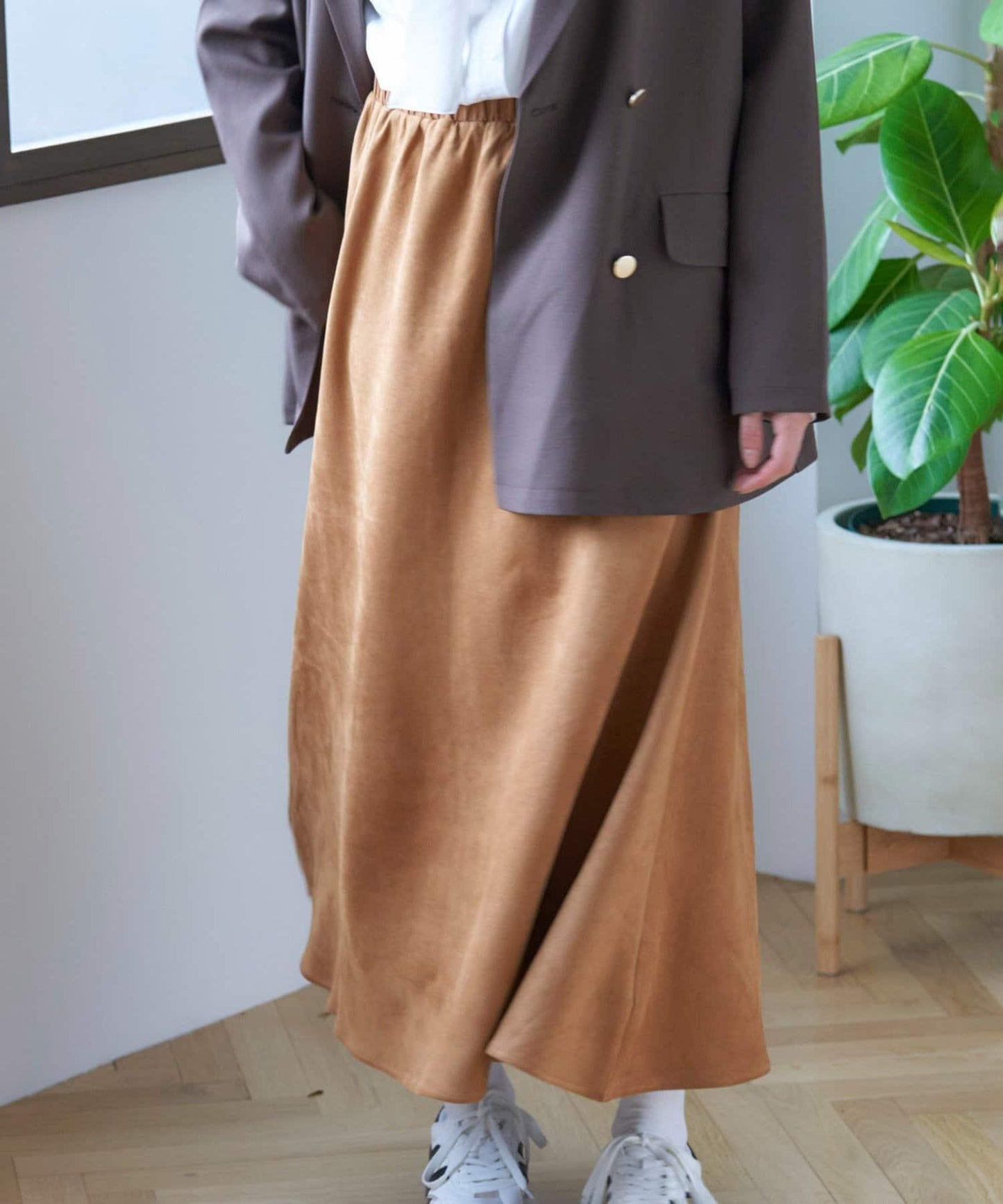 也可搭配 [nane] 蝴蝶結領結襯衫(5052180260),打造辦公室風格。也可搭配 [nane] Lame Fur Vest(5052180140),打造更高級的外出風格。