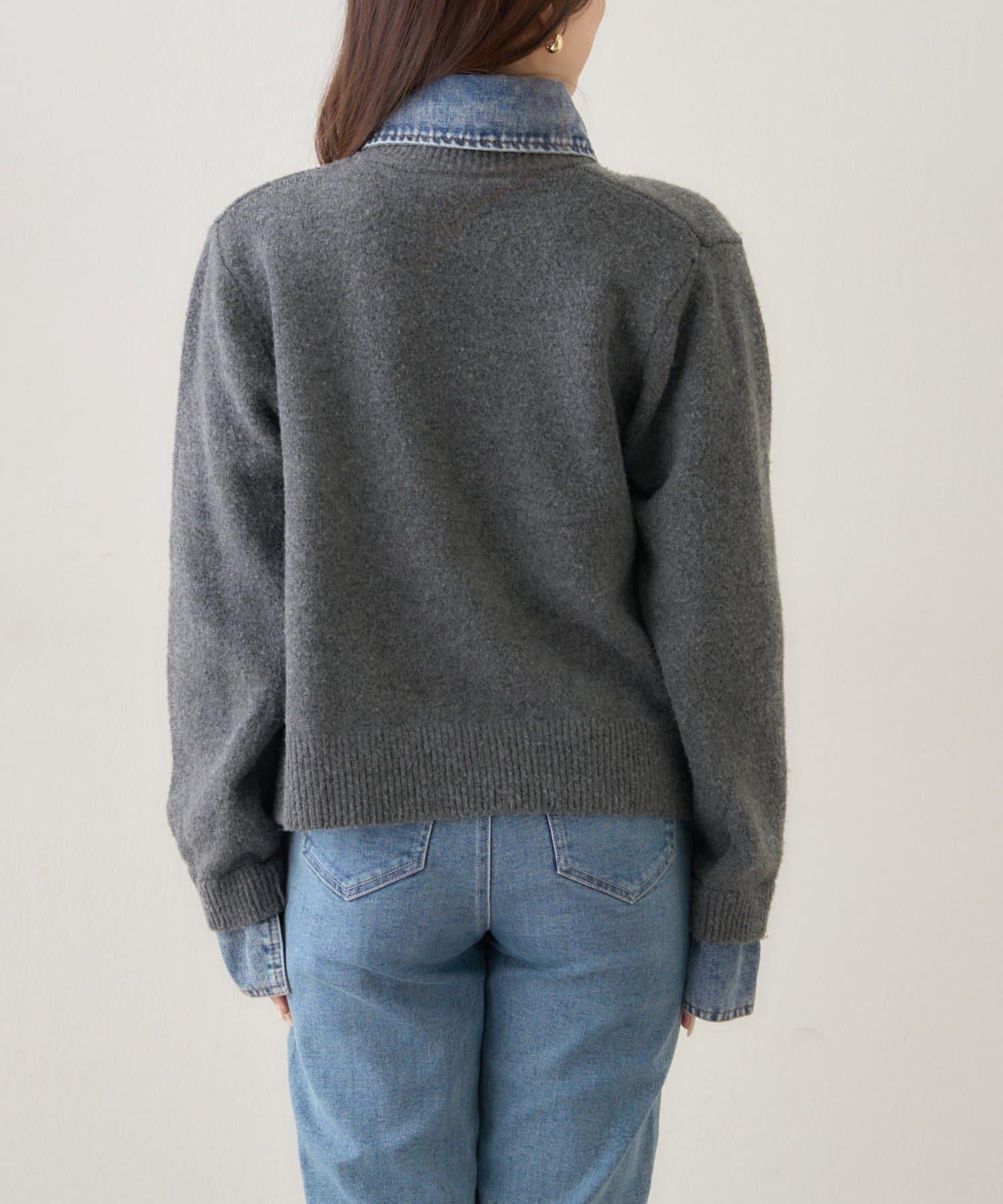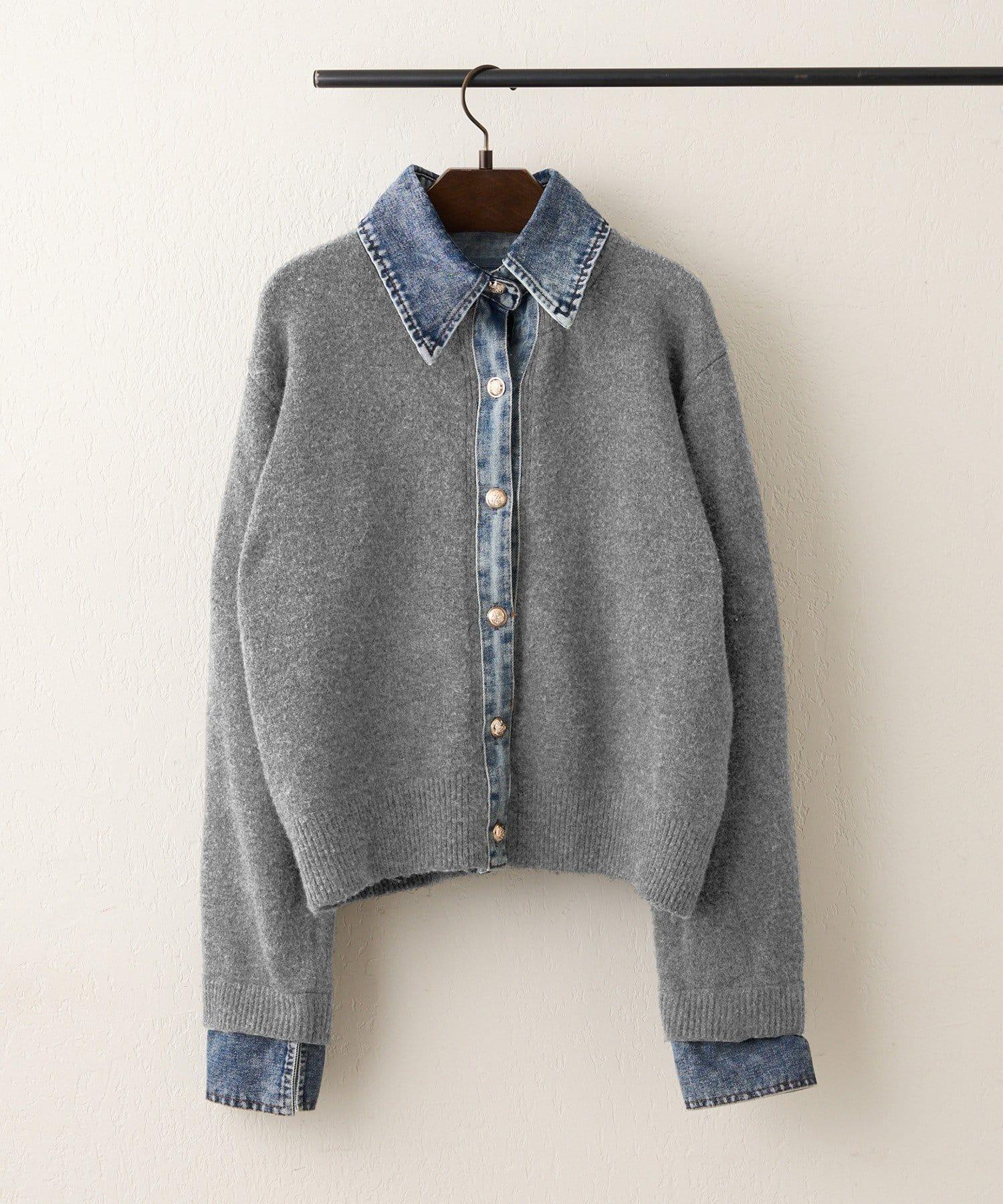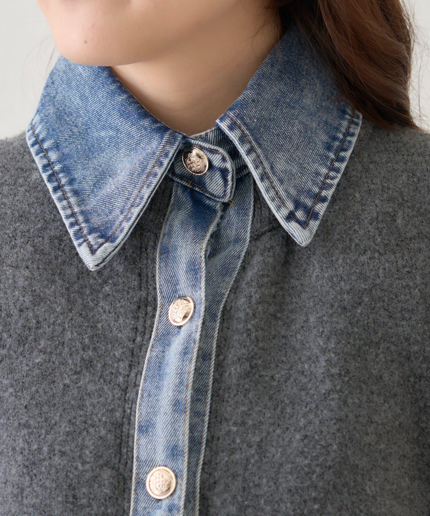 牛仔布僅在領口和袖口處設計,穿著柔軟舒適。